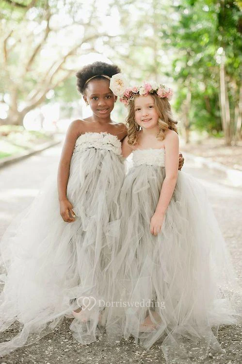 Romantic Strapless Tulle Girl Pageant Dress With Flowers