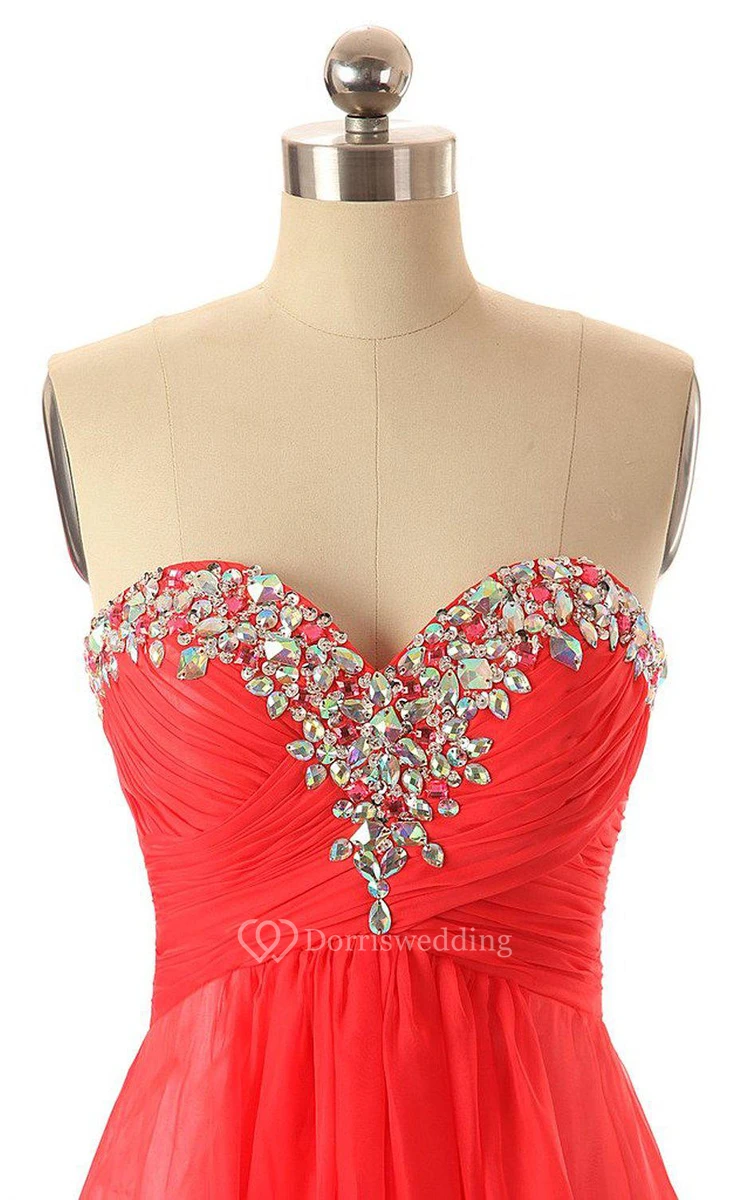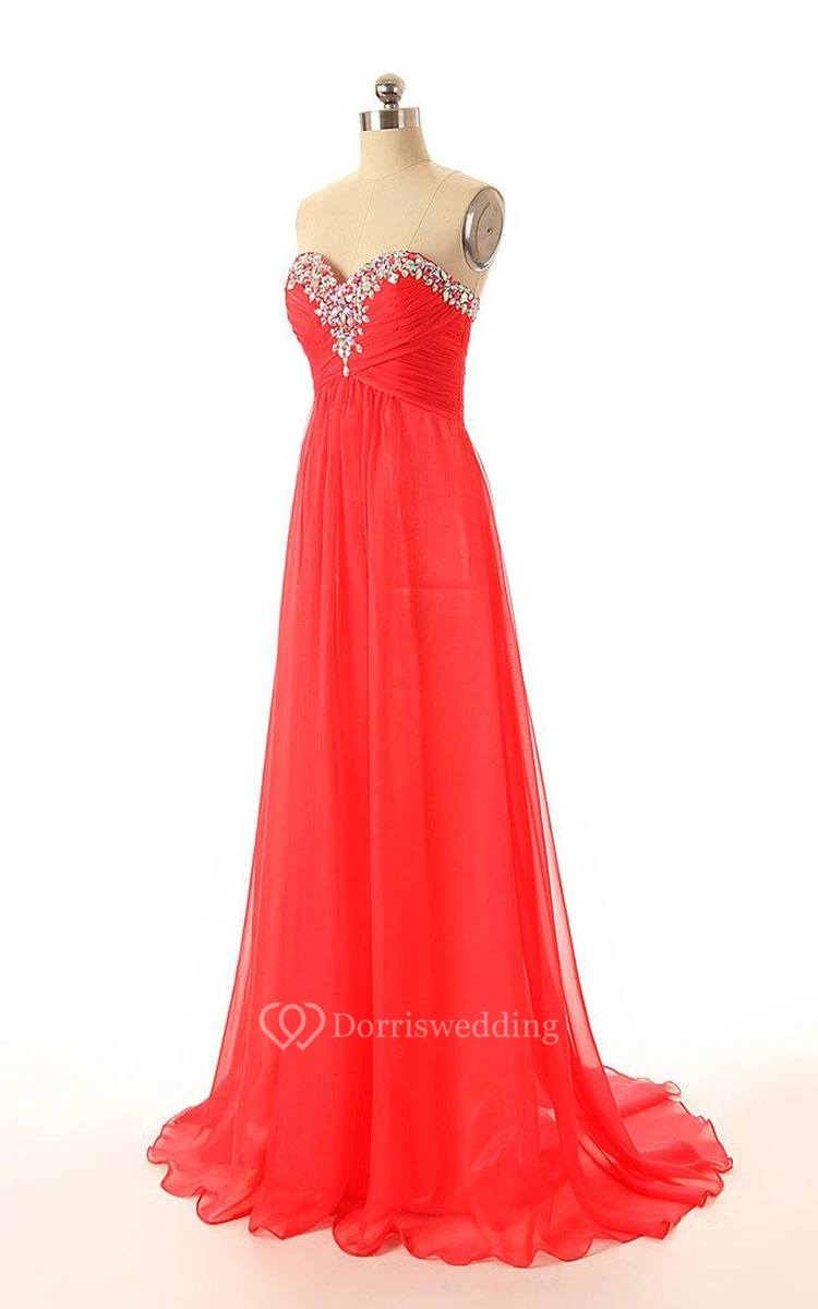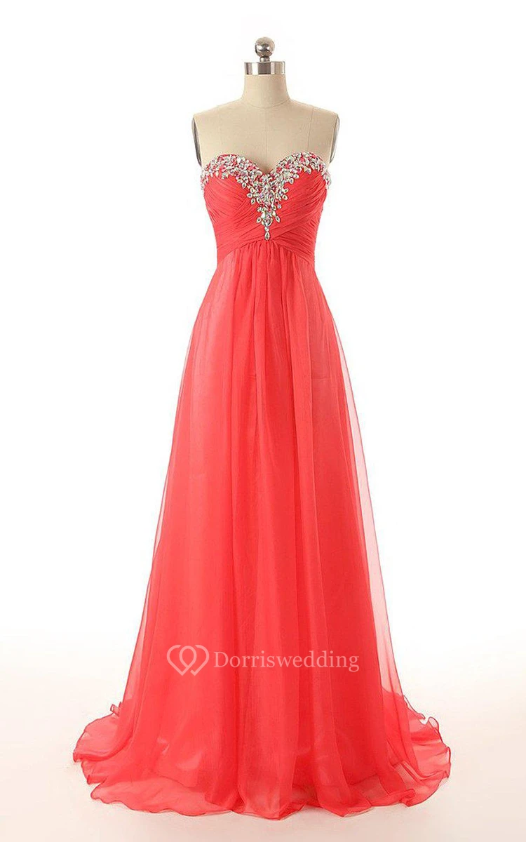 Romantic Sweetheart Long Chiffon Dress With Decorated Neckline