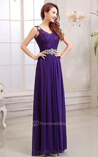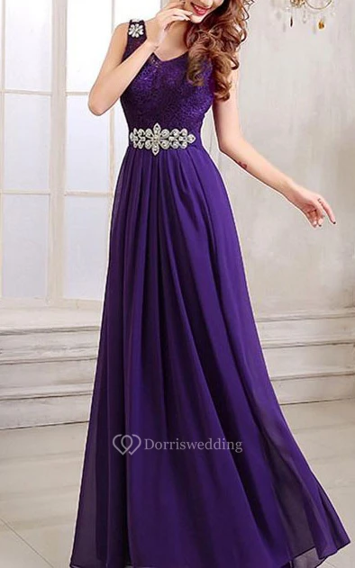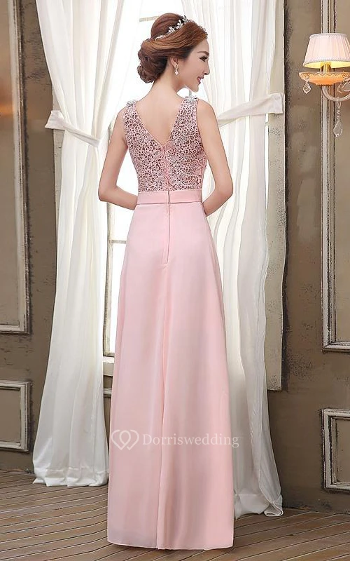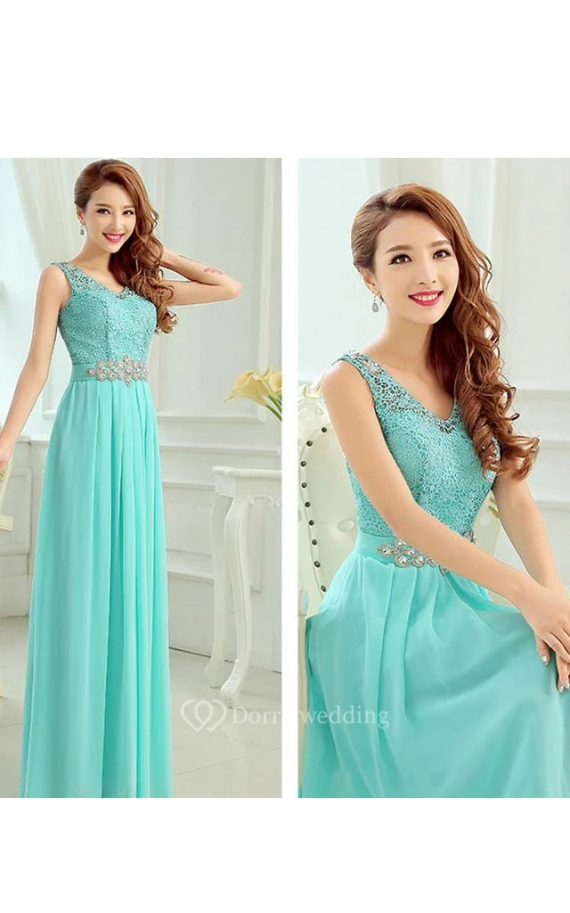 Romantic V-Neck A-Line Floor-Length Lace Prom Dress