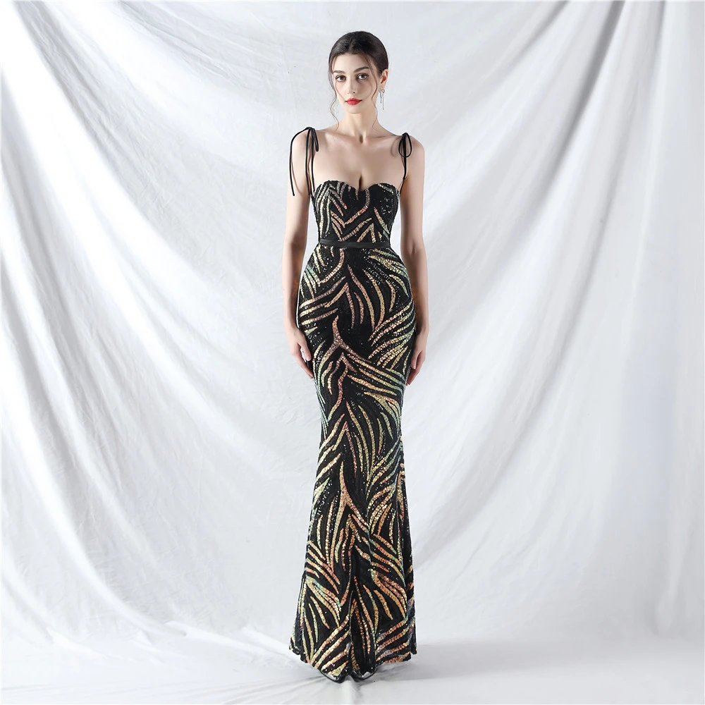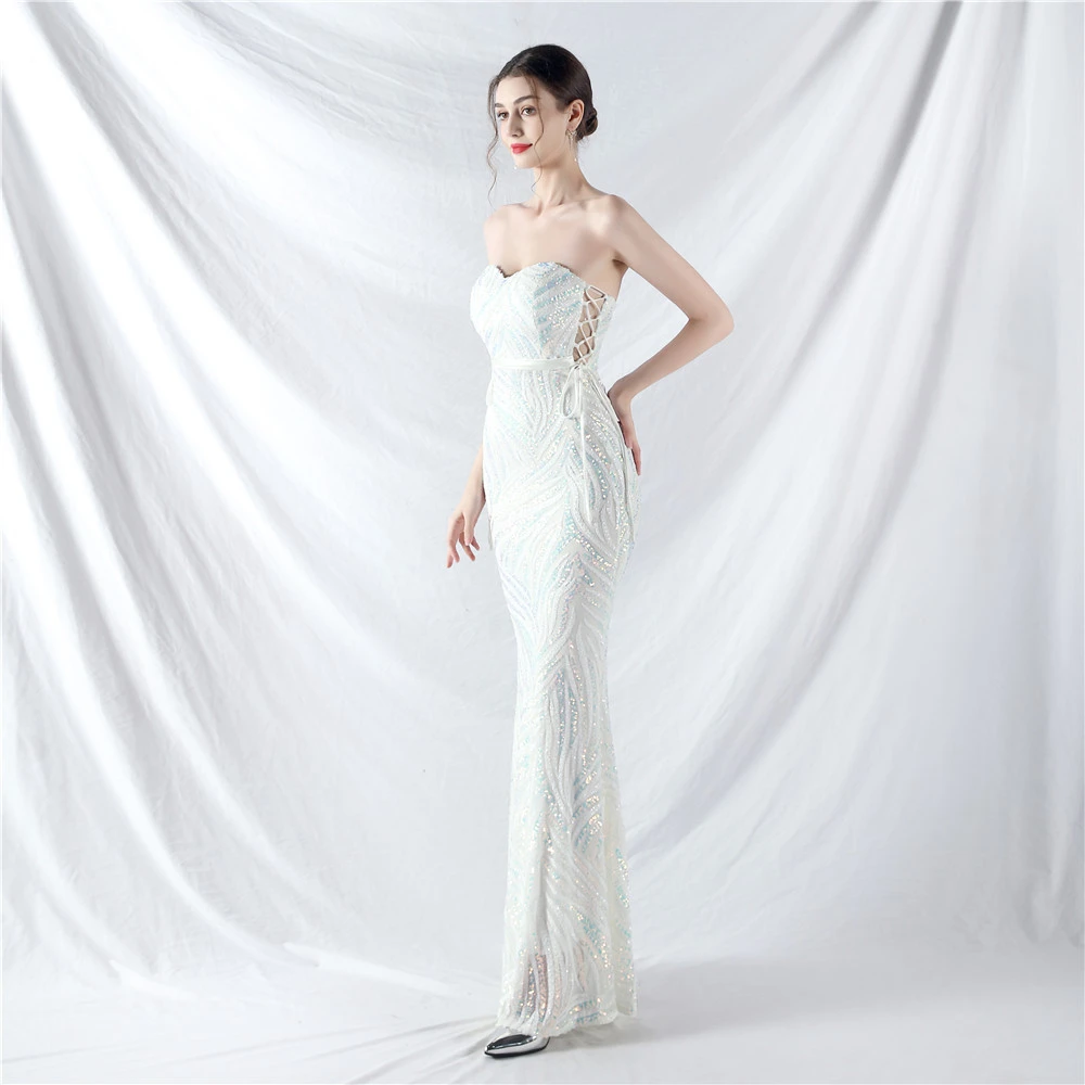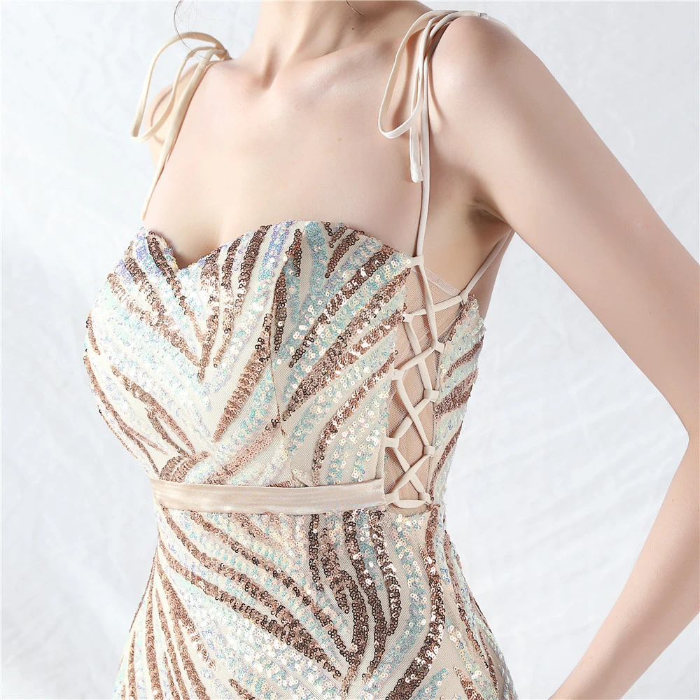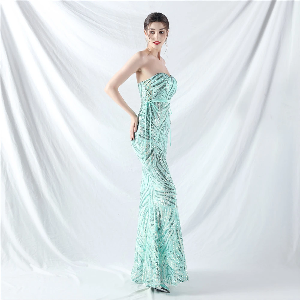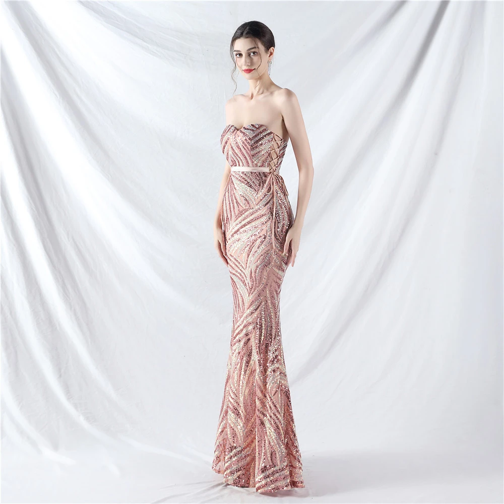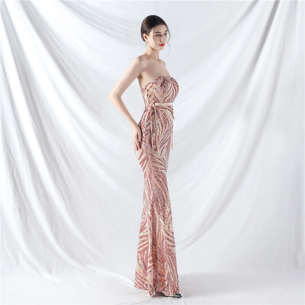 Rope Double-Binding Method Sling Tube Top Encrypted Stacked Sequins Evening Dress