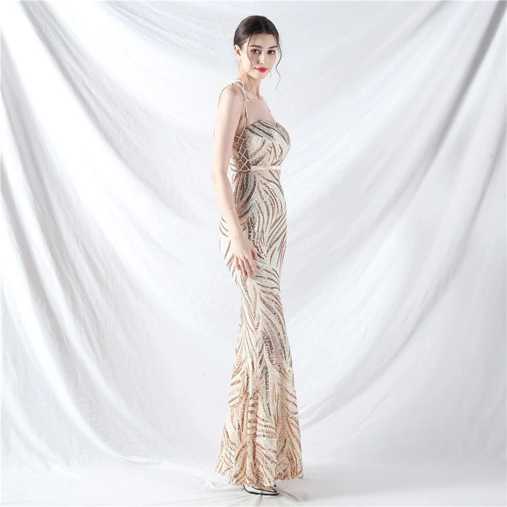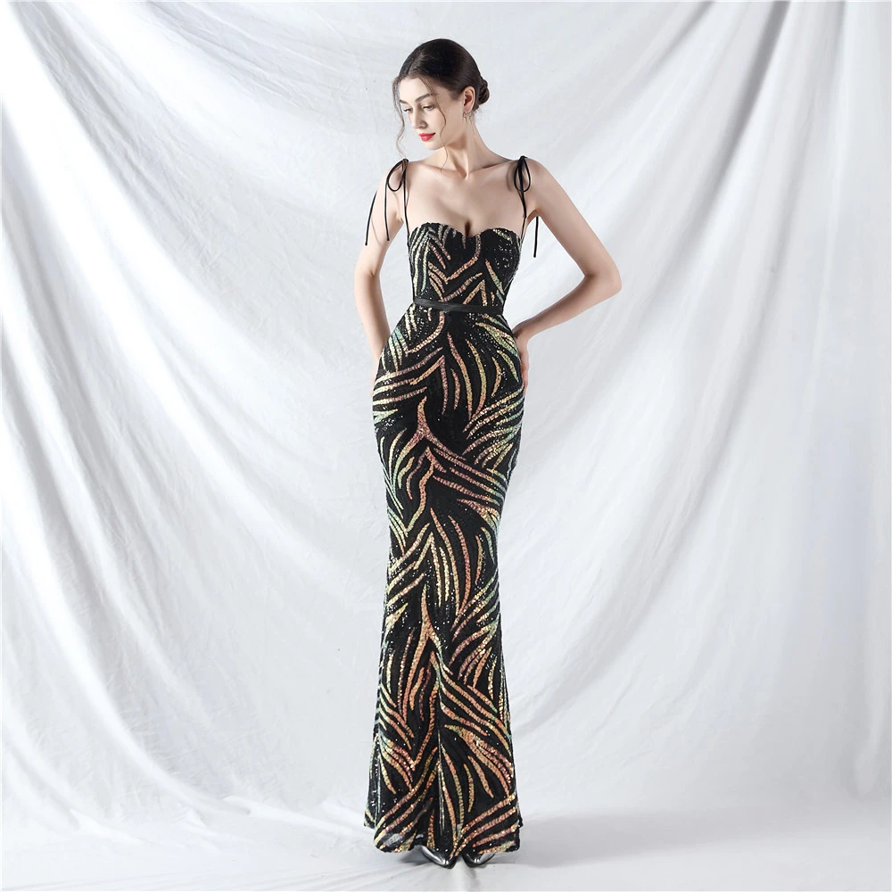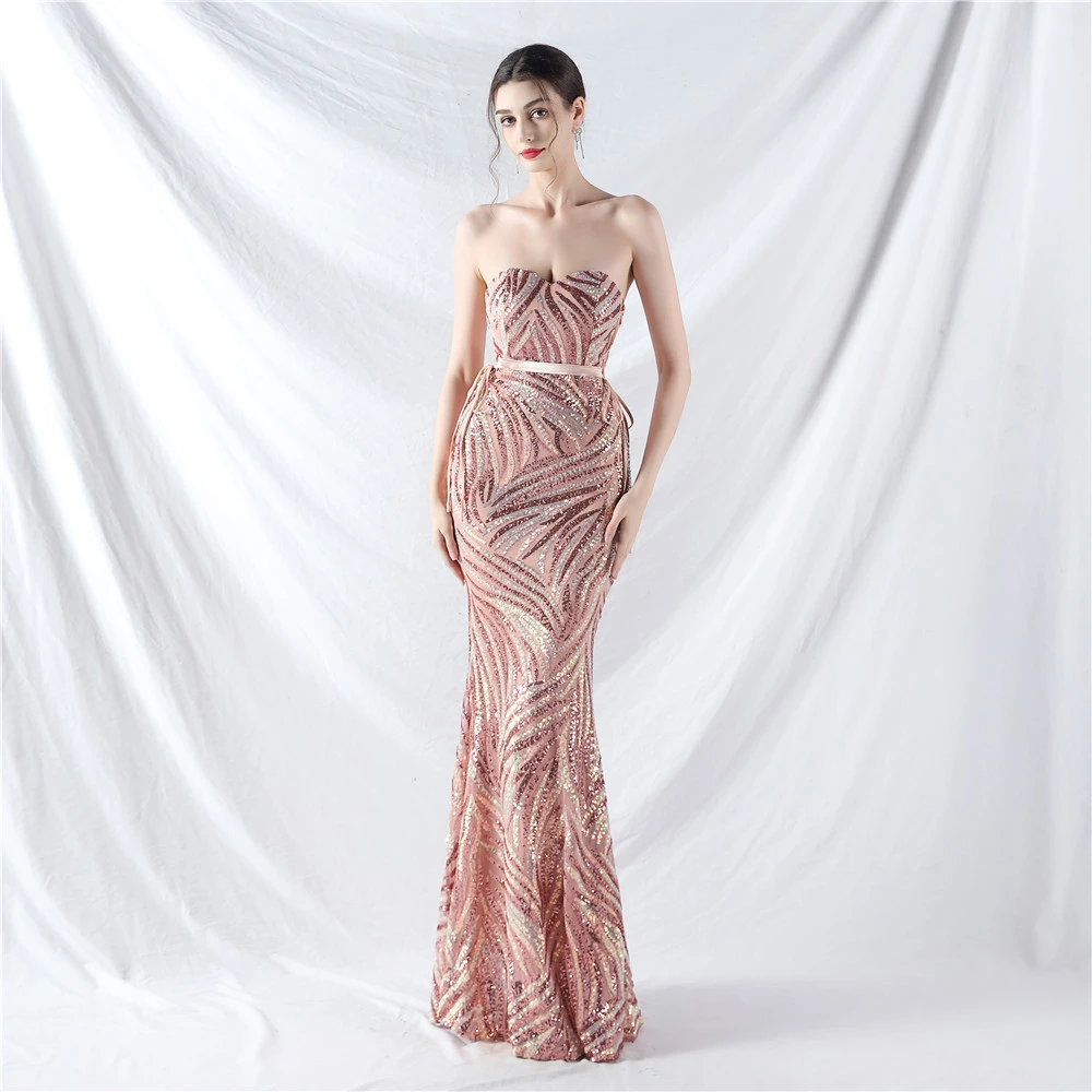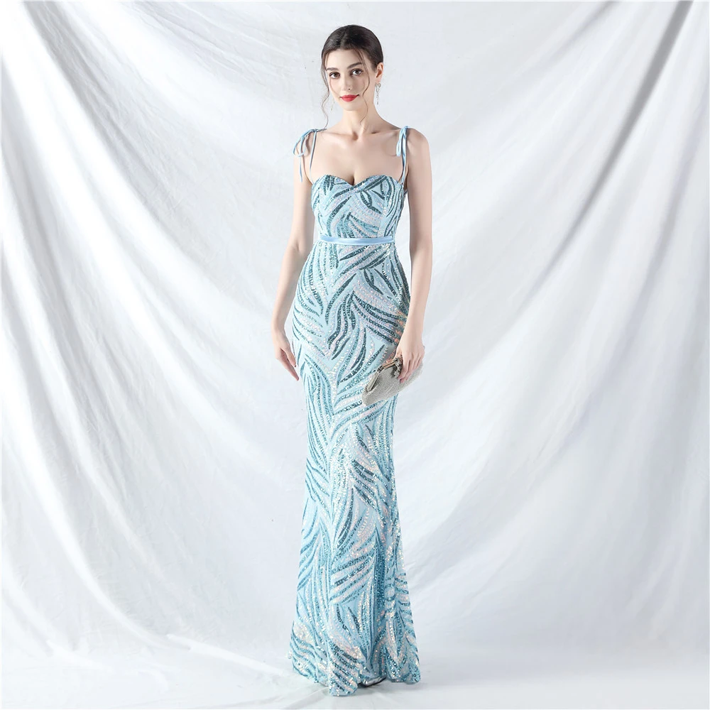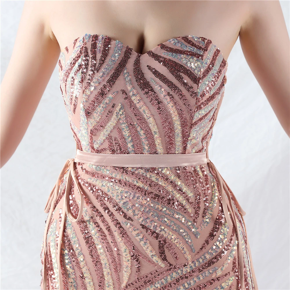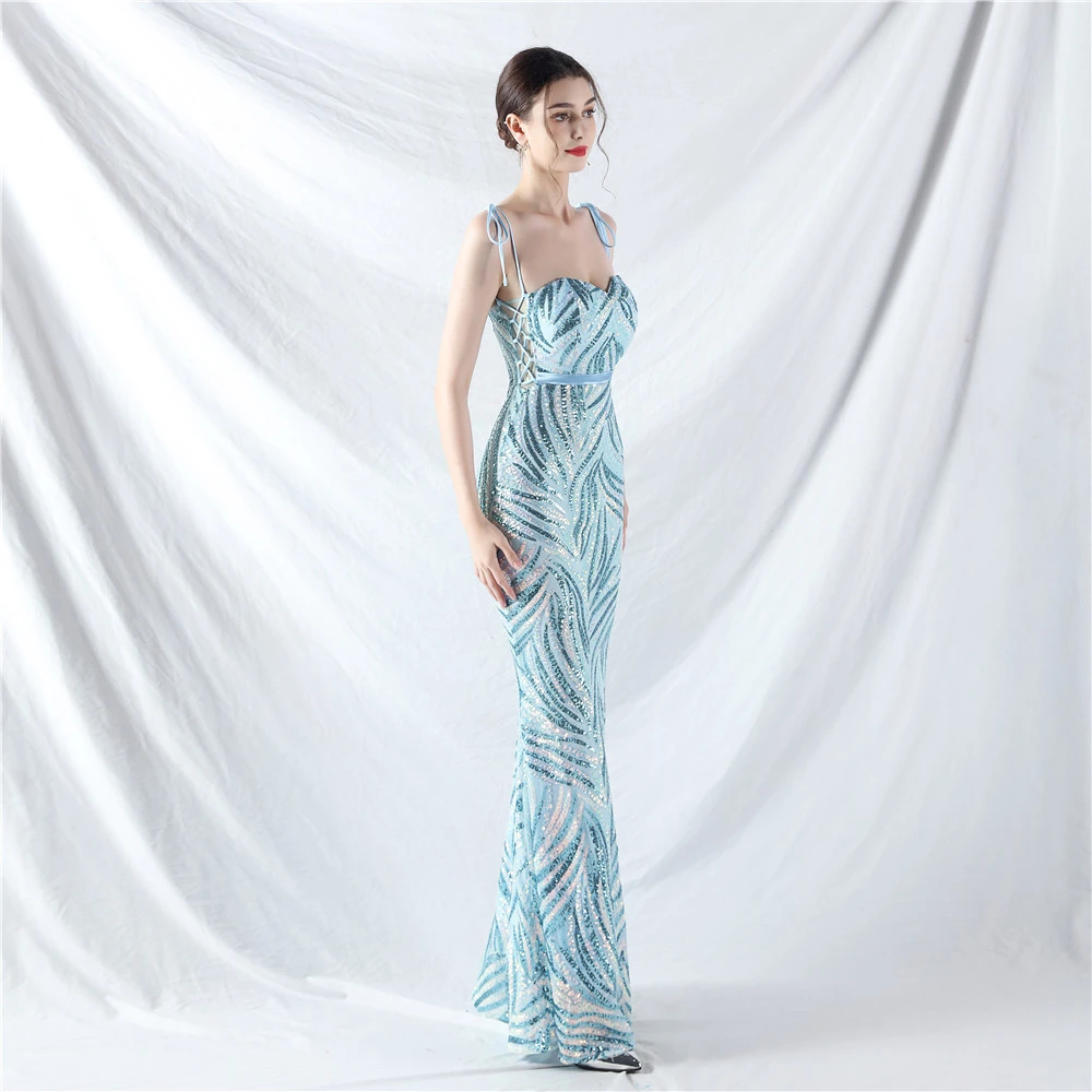 Rope Double-Binding Method Sling Tube Top Encrypted Stacked Sequins Evening Dress