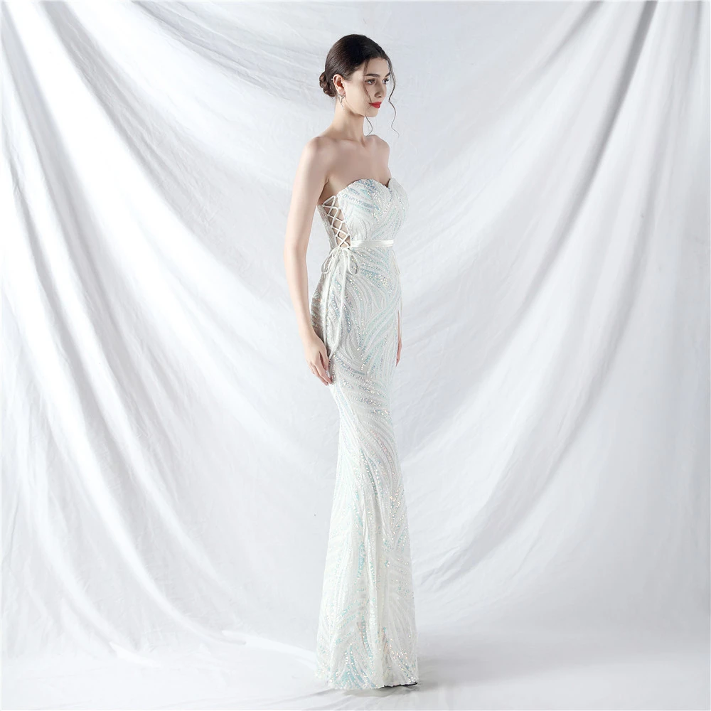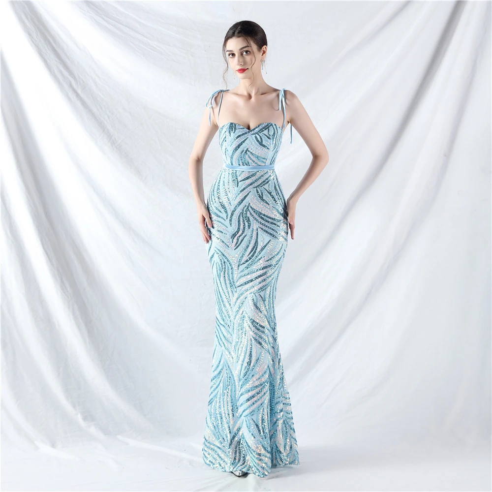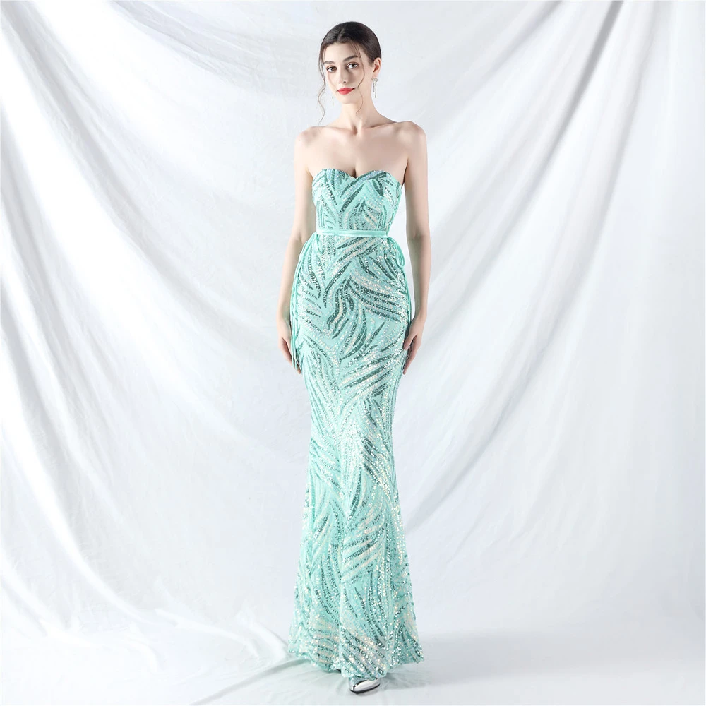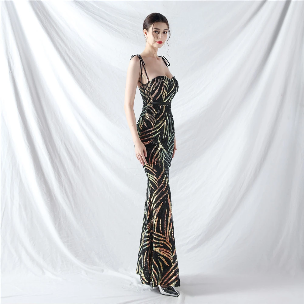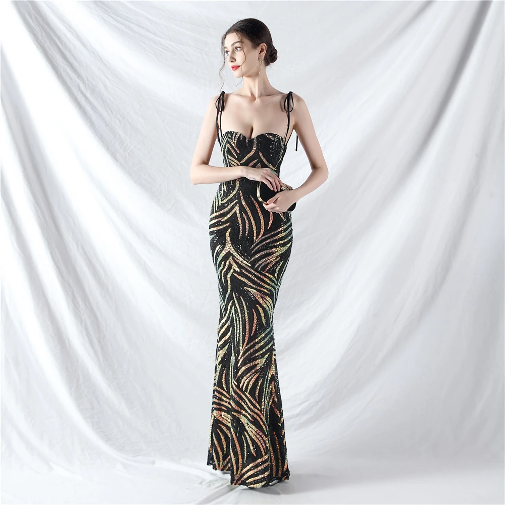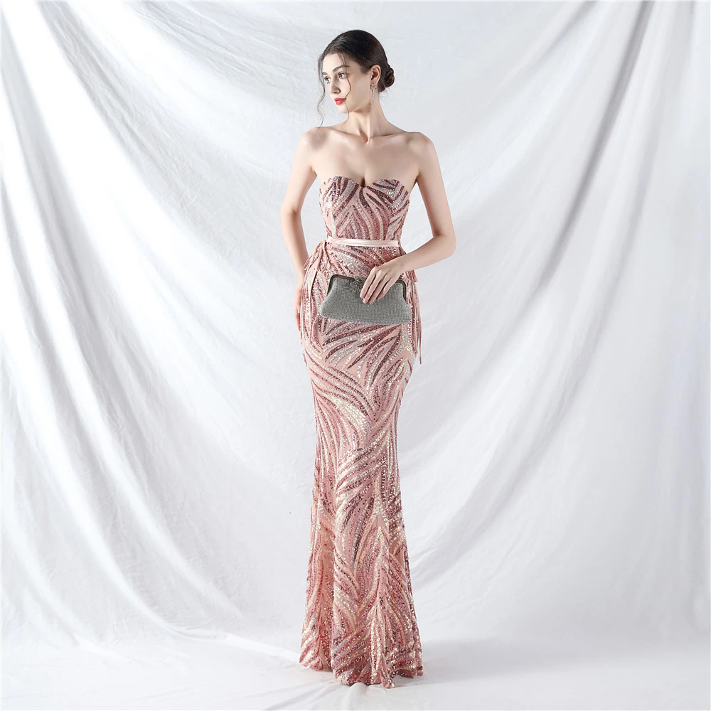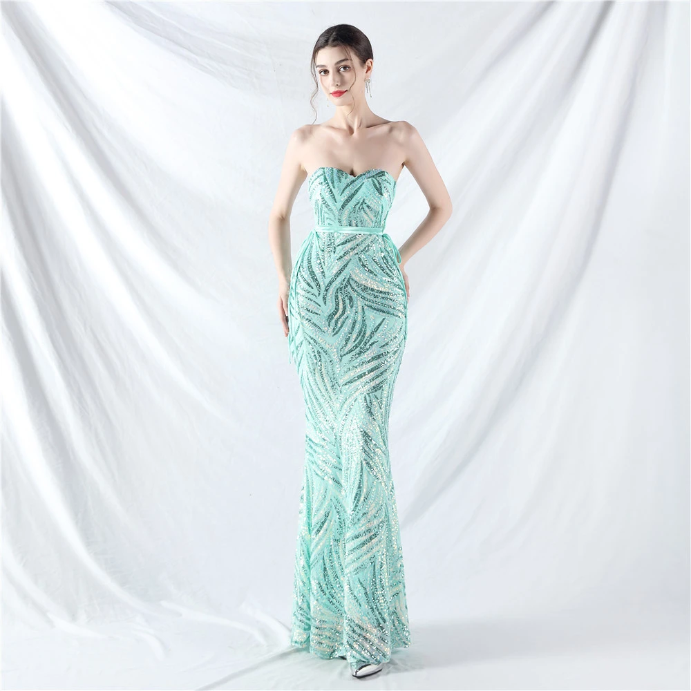 Rope Double-Binding Method Sling Tube Top Encrypted Stacked Sequins Evening Dress