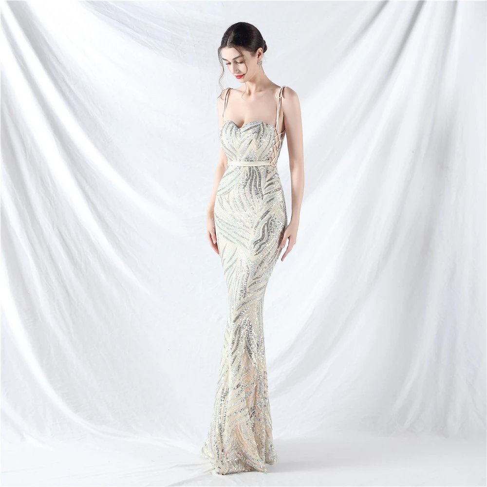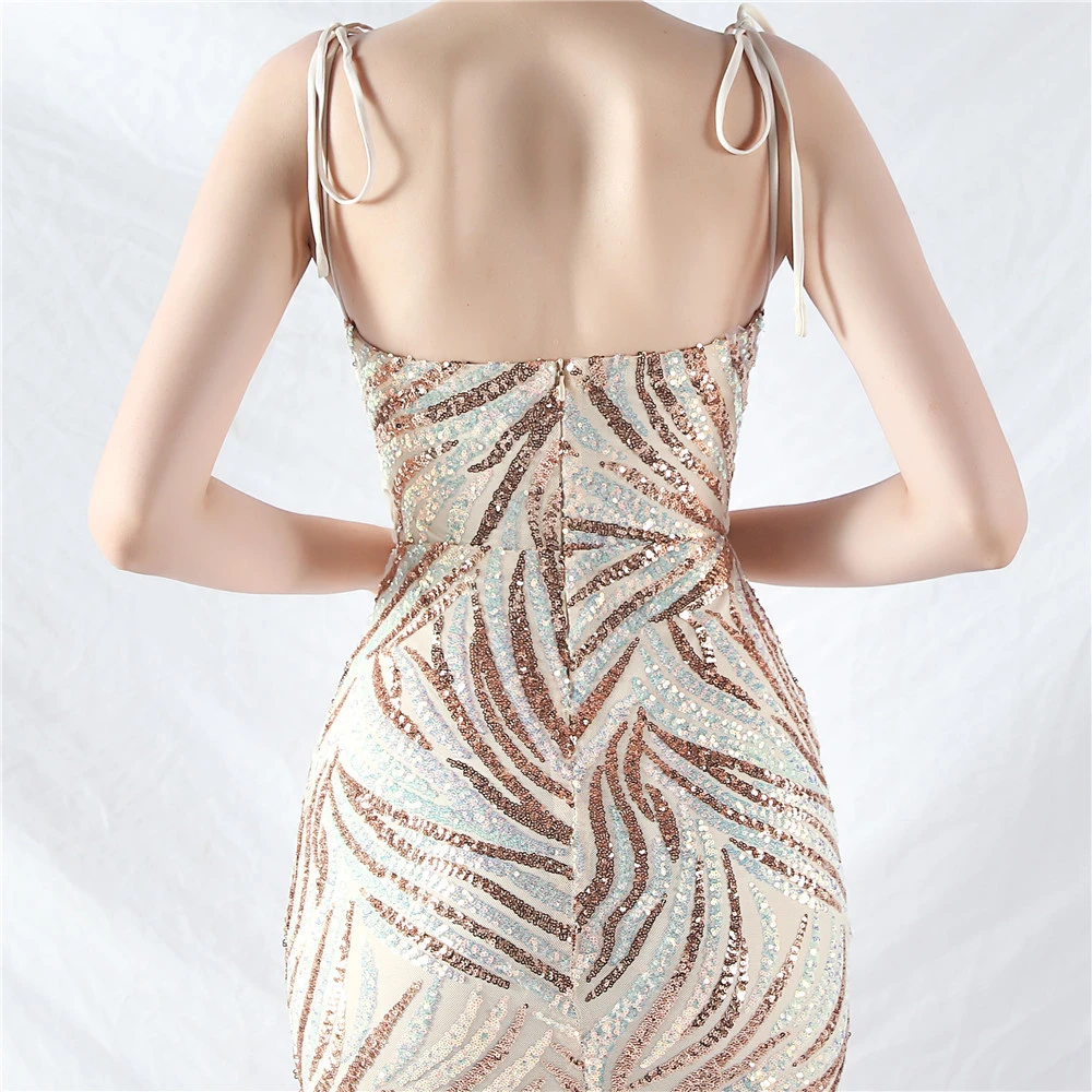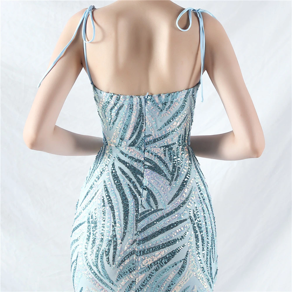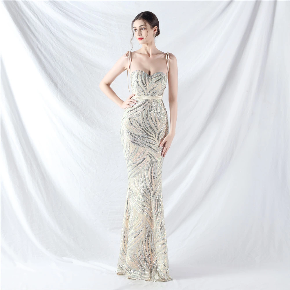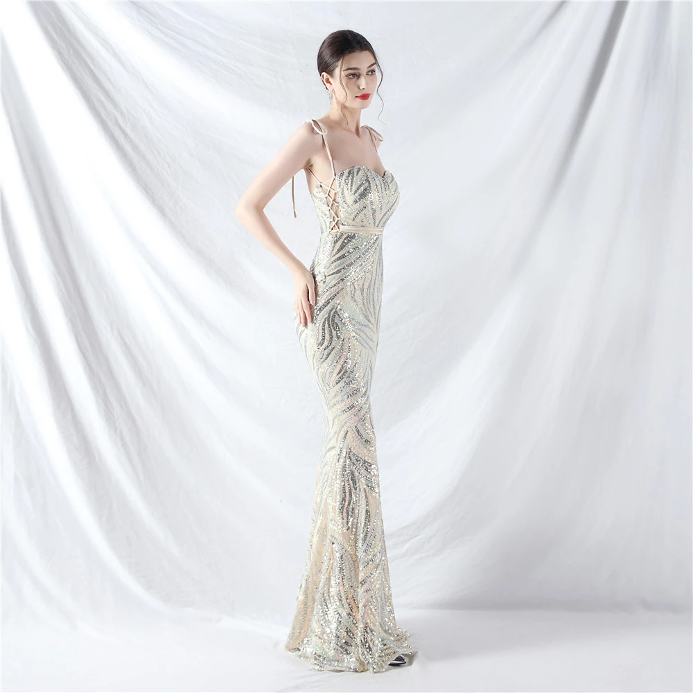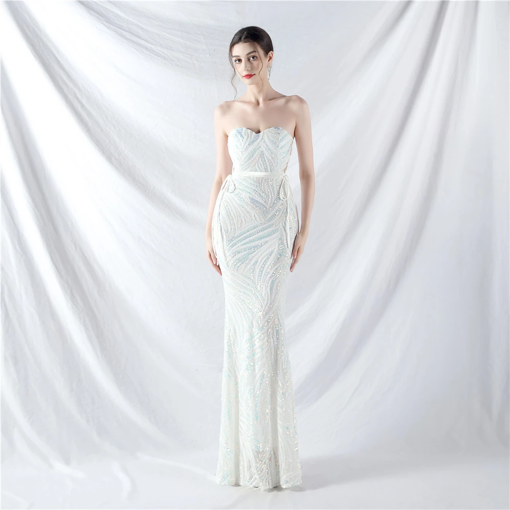 Rope Double-Binding Method Sling Tube Top Encrypted Stacked Sequins Evening Dress