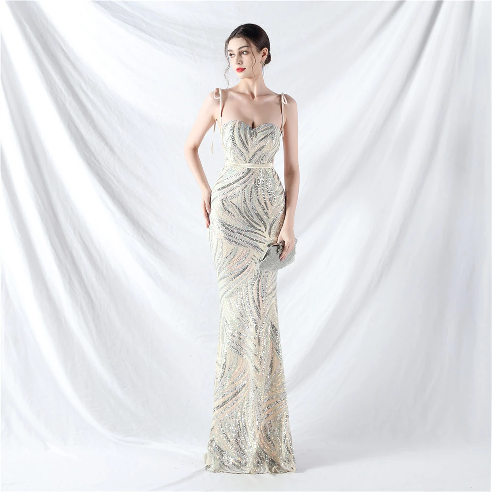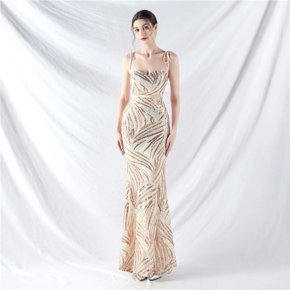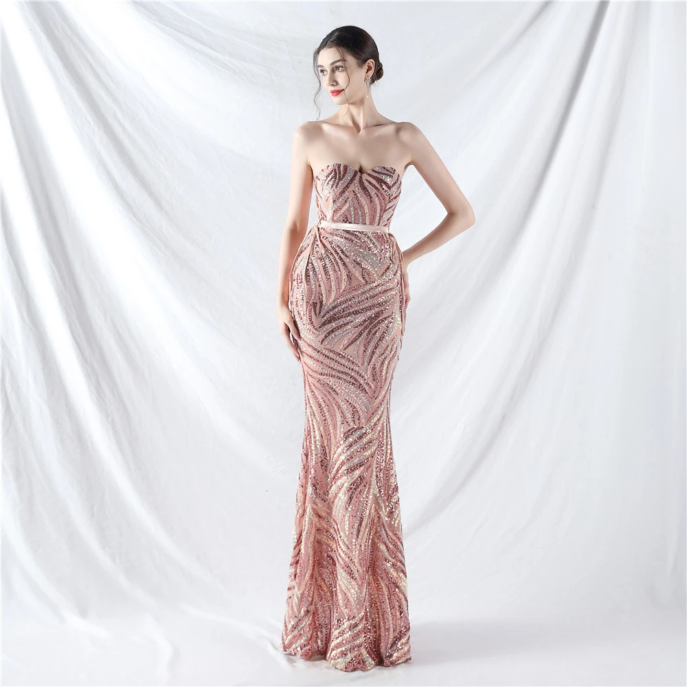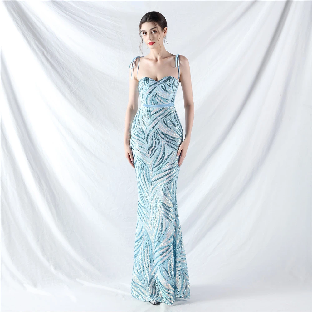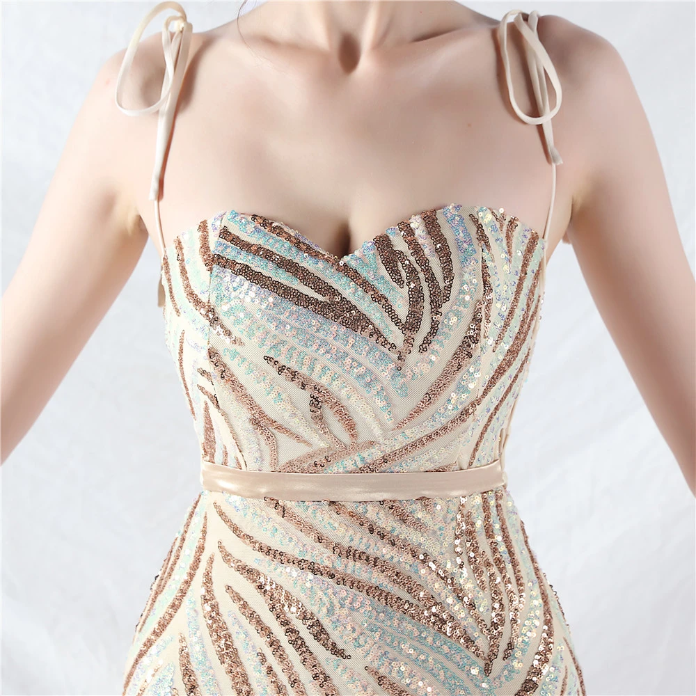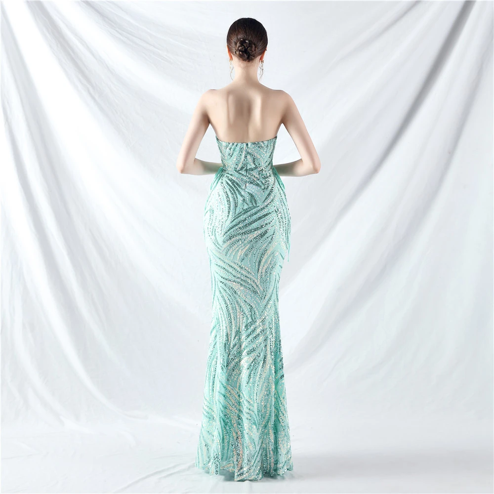 Rope Double-Binding Method Sling Tube Top Encrypted Stacked Sequins Evening Dress