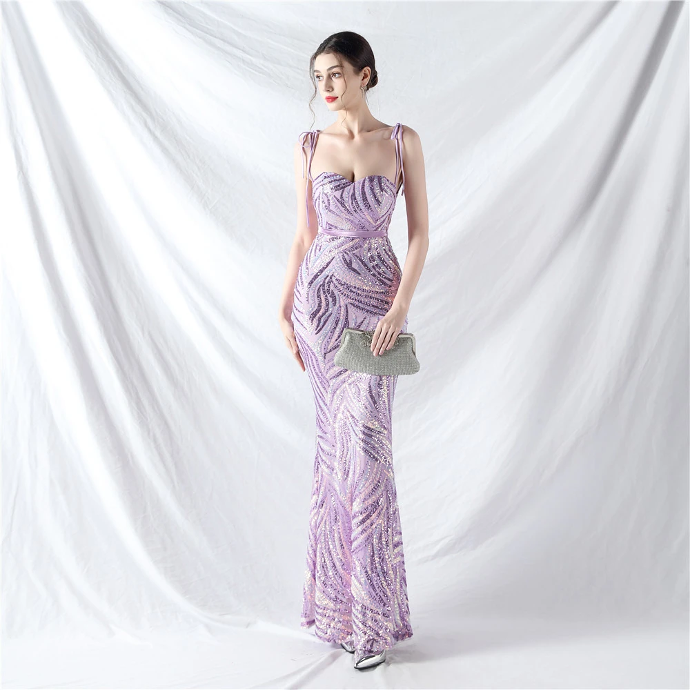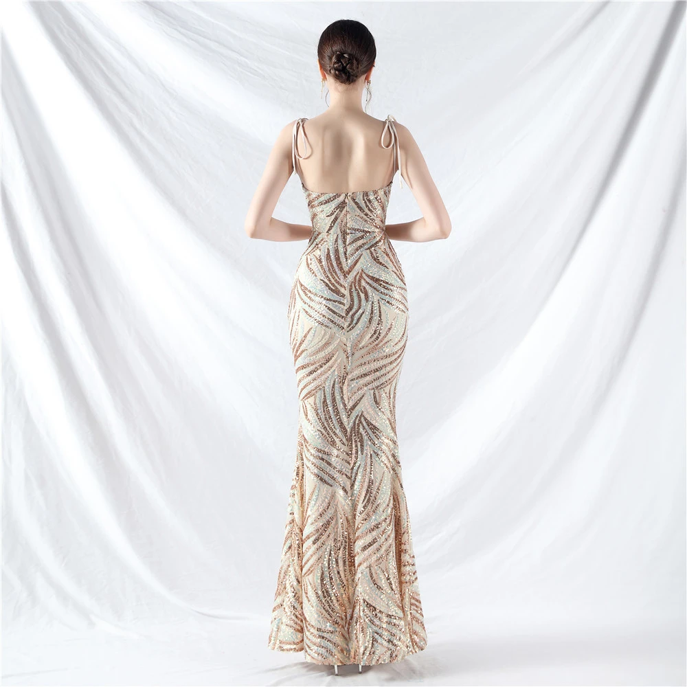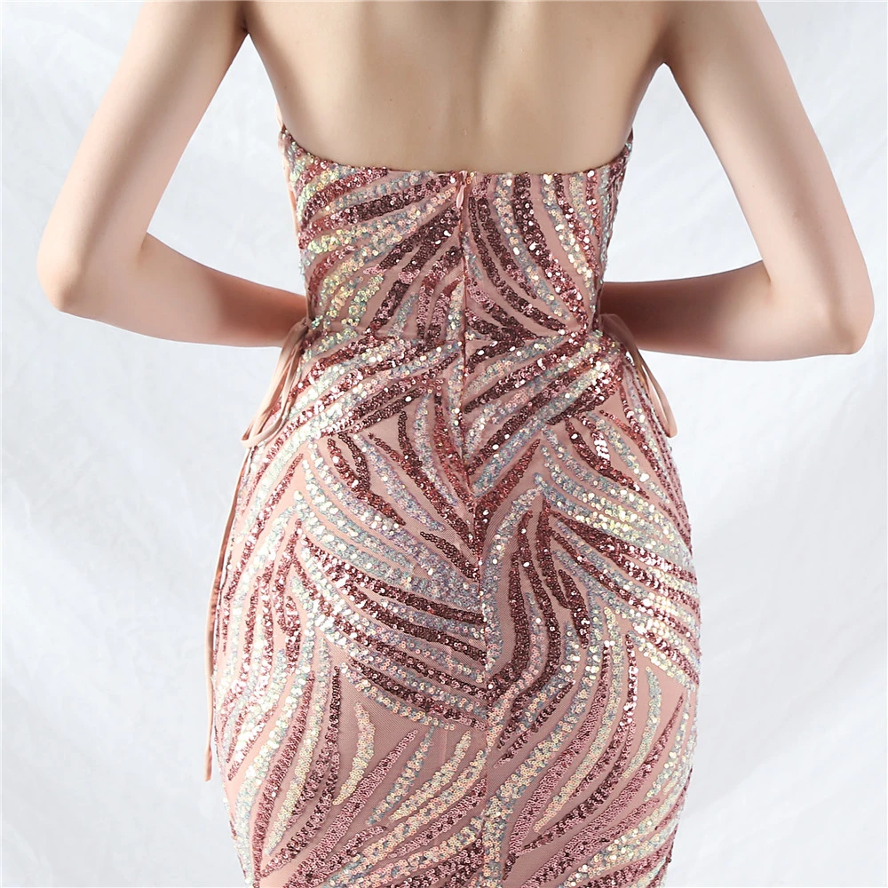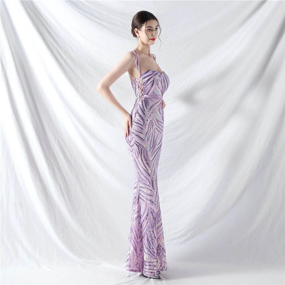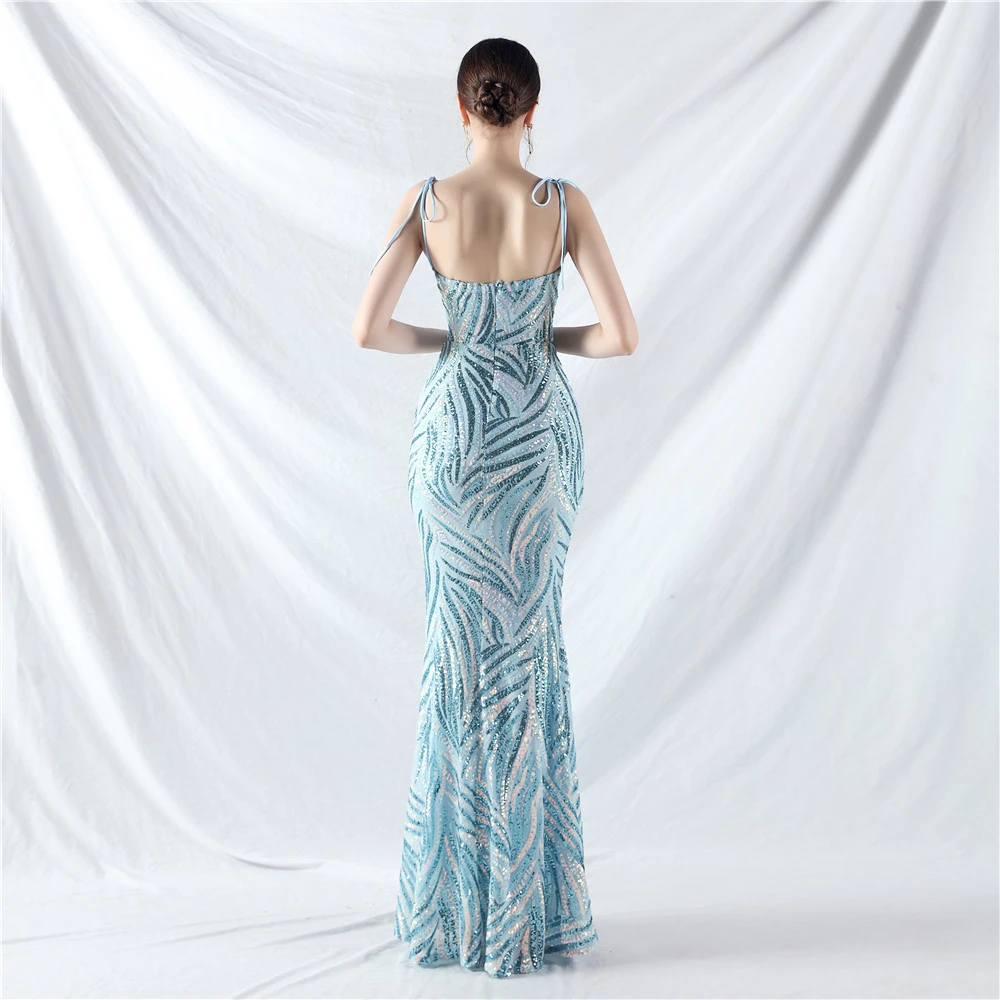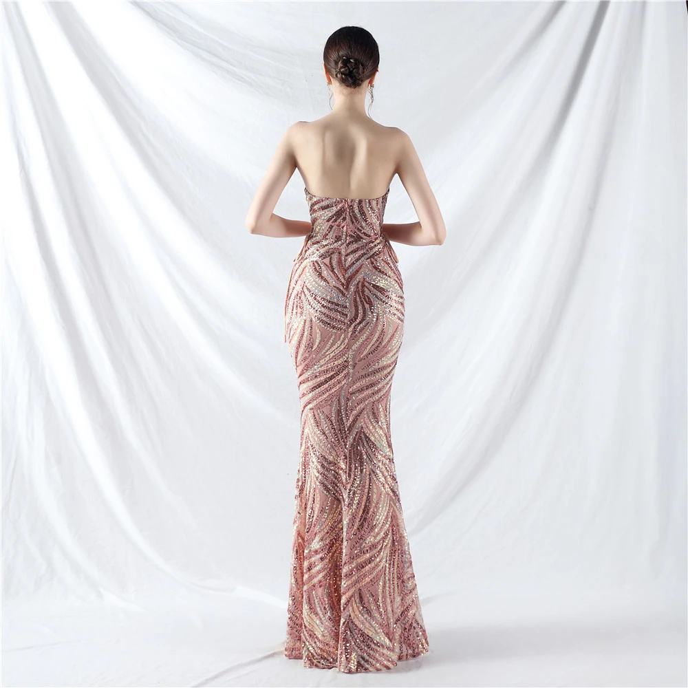 Rope Double-Binding Method Sling Tube Top Encrypted Stacked Sequins Evening Dress