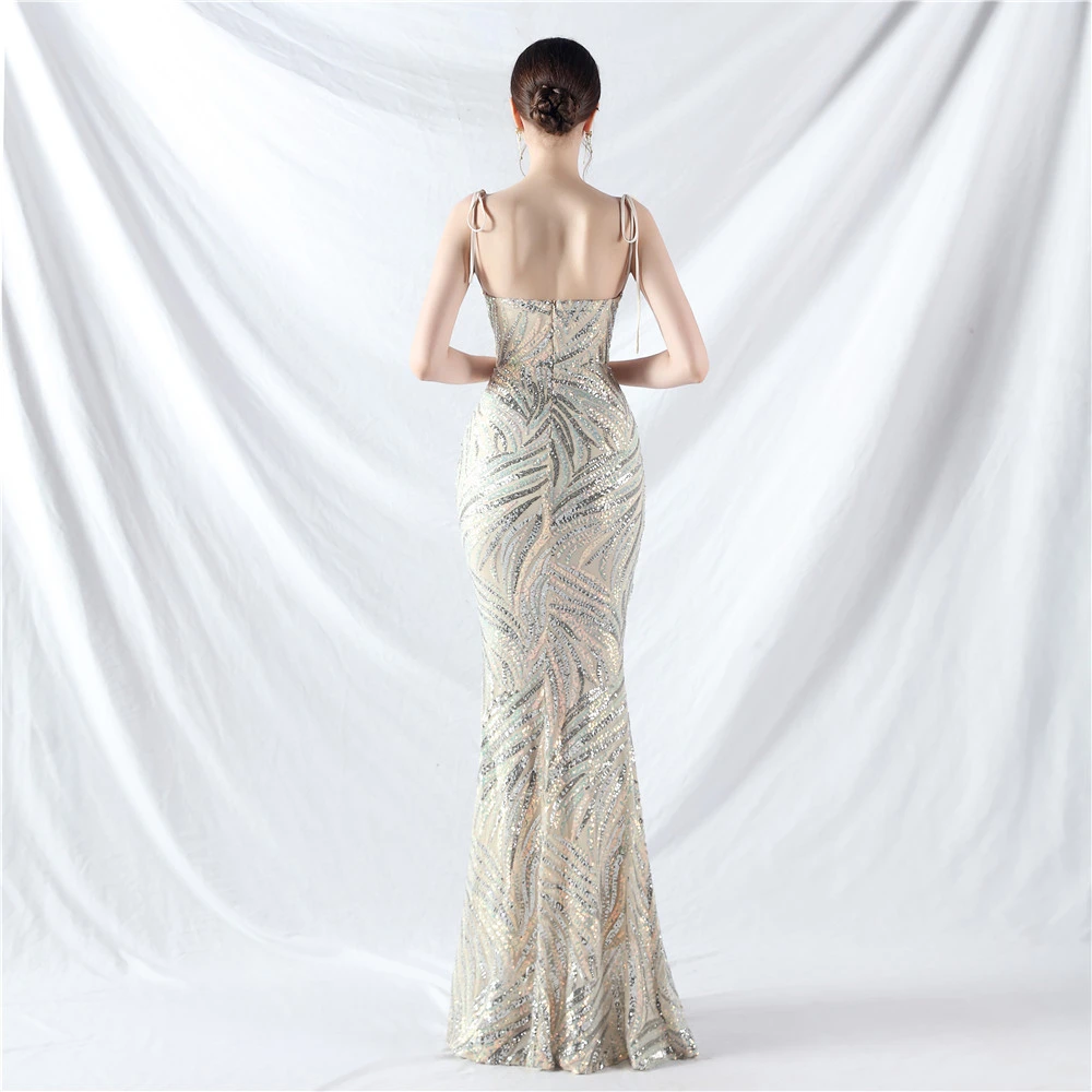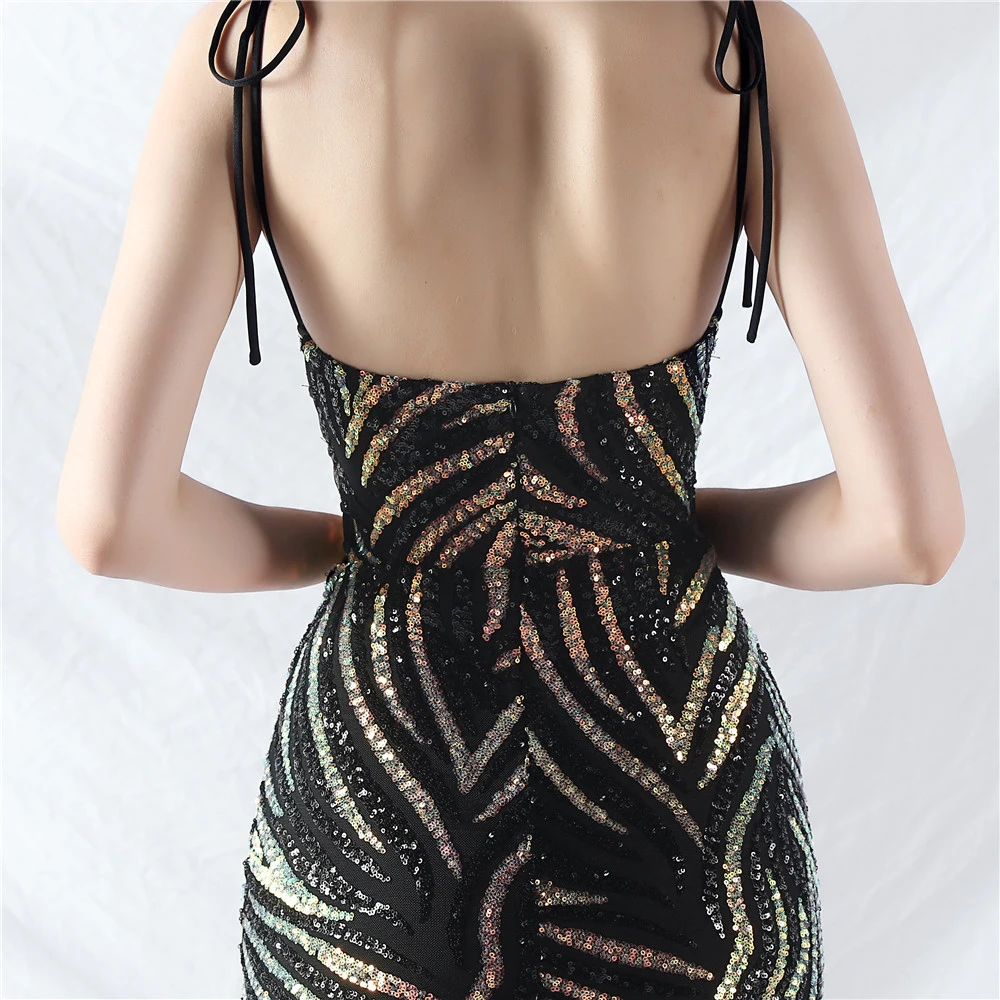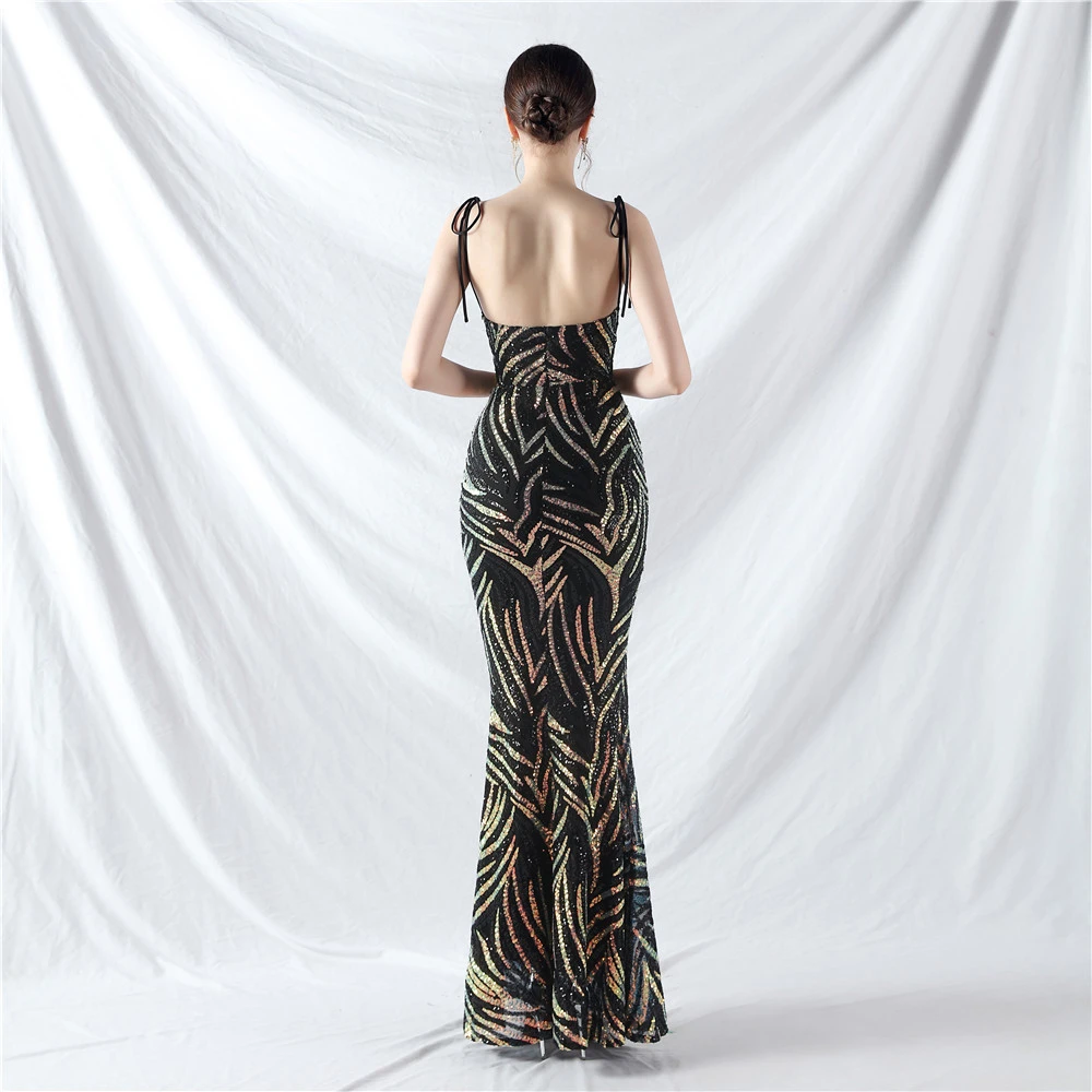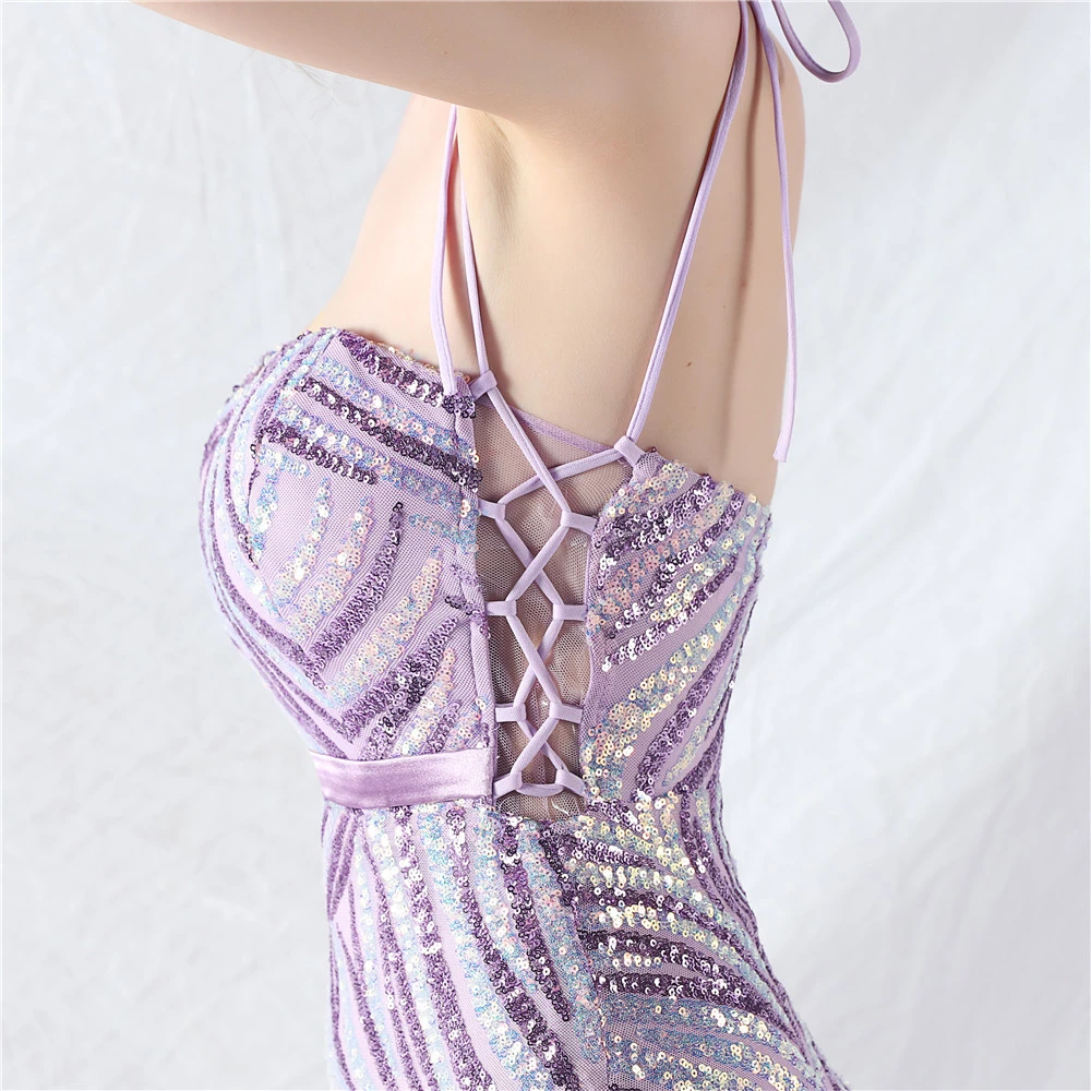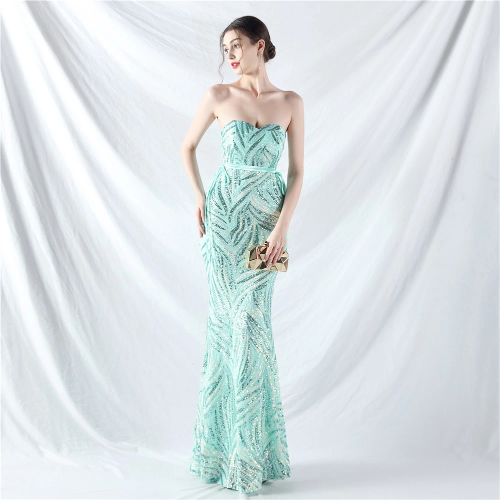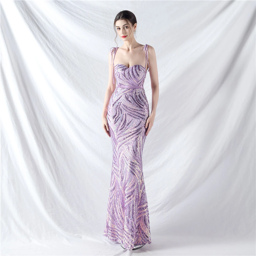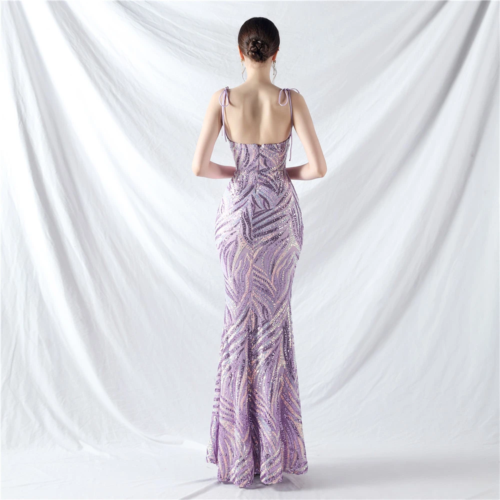 Rope Double-Binding Method Sling Tube Top Encrypted Stacked Sequins Evening Dress