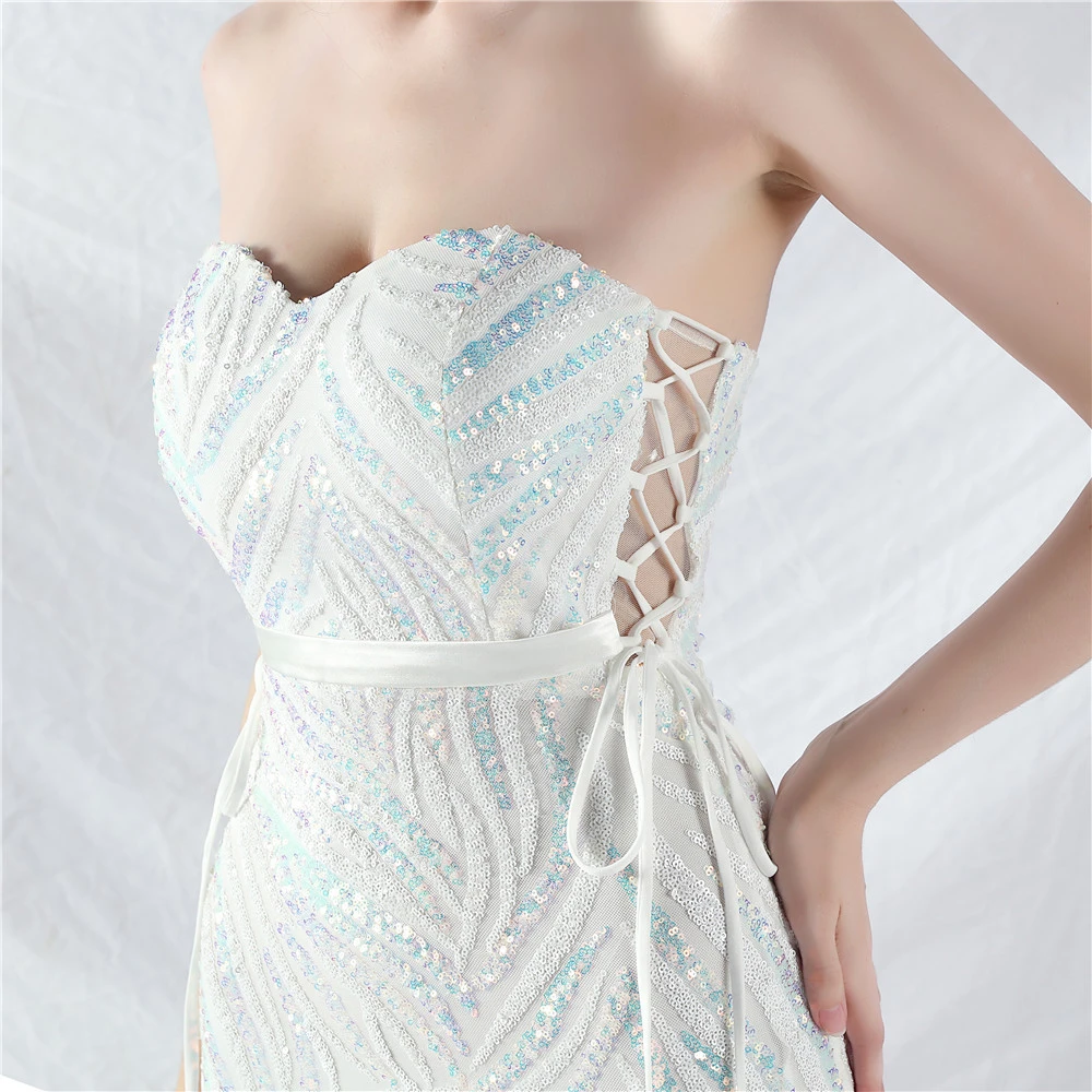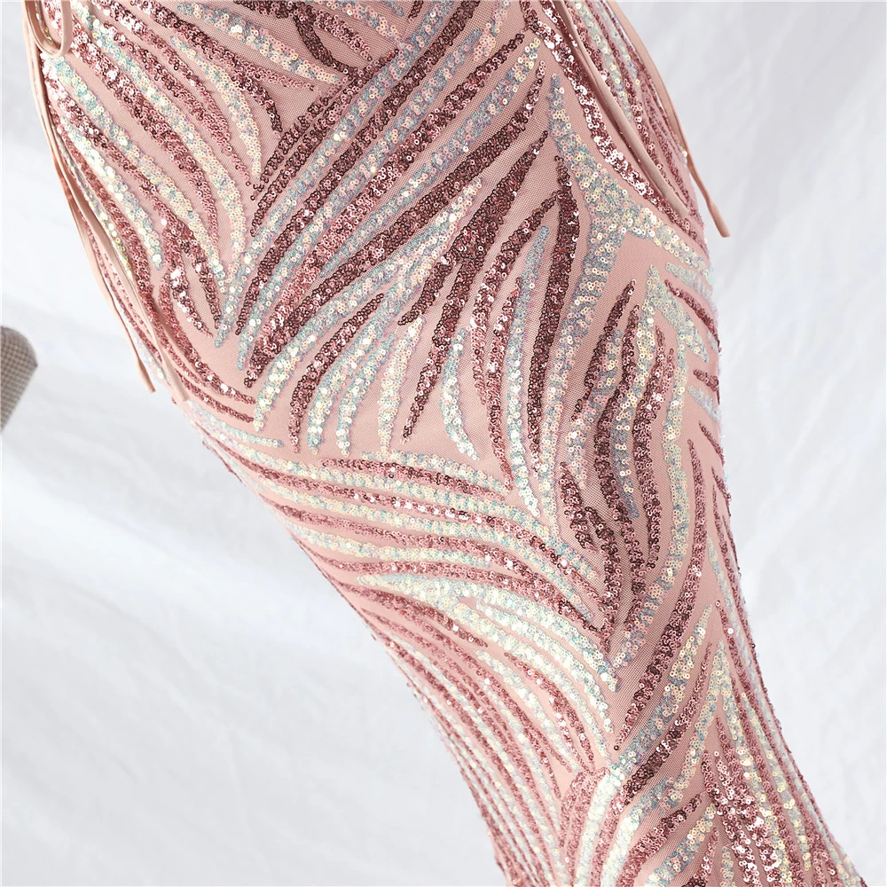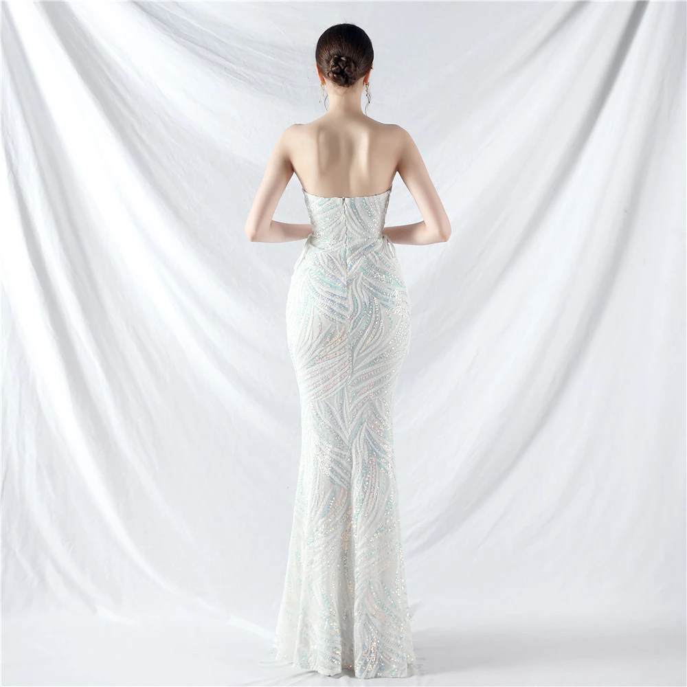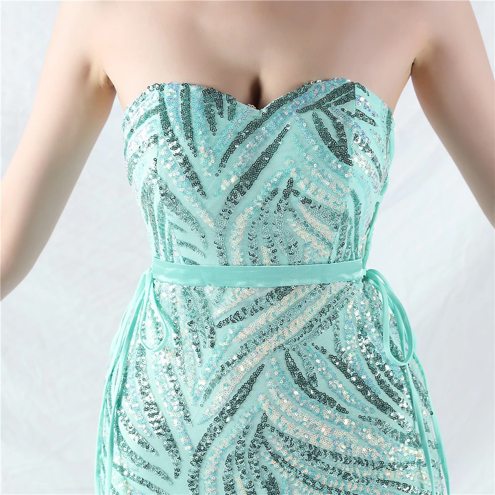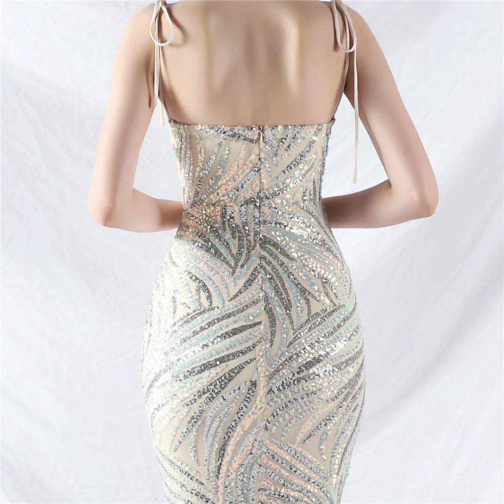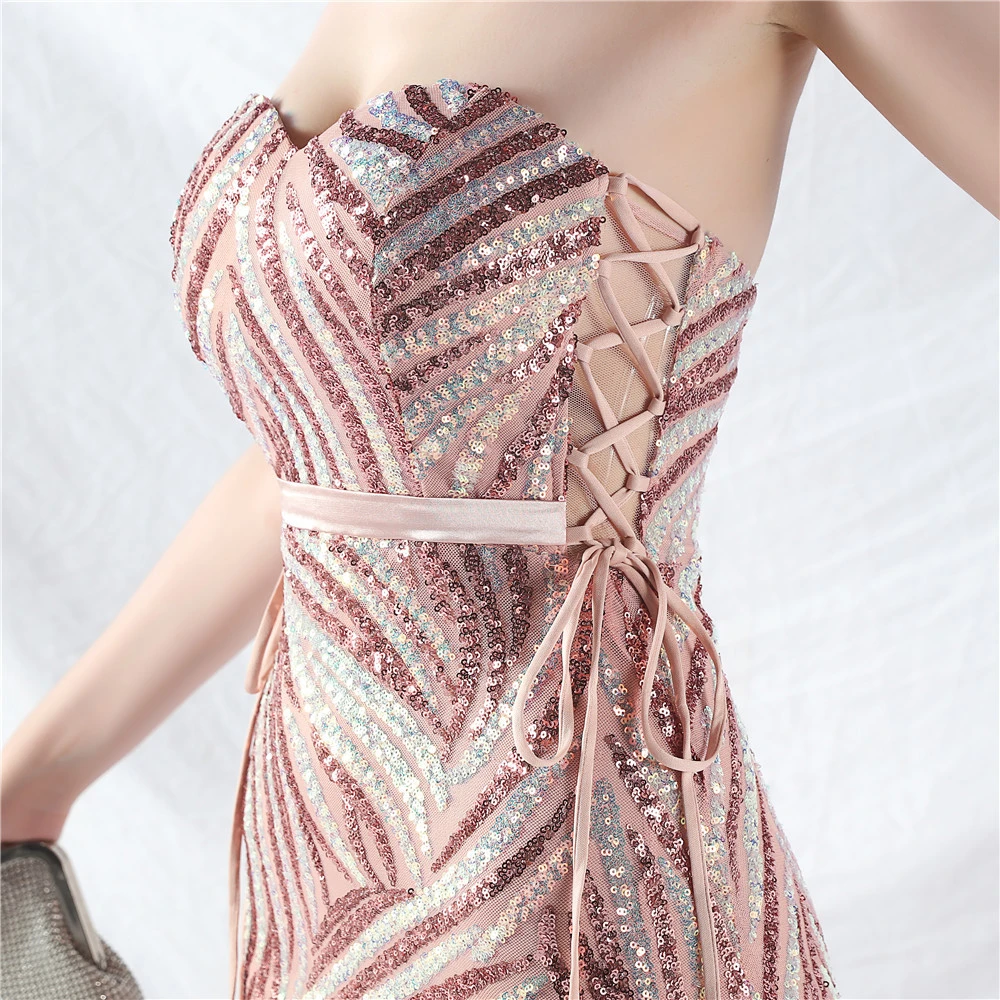 Rope Double-Binding Method Sling Tube Top Encrypted Stacked Sequins Evening Dress