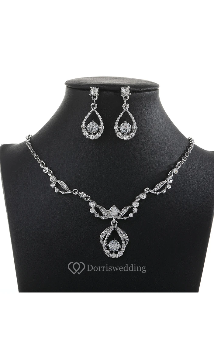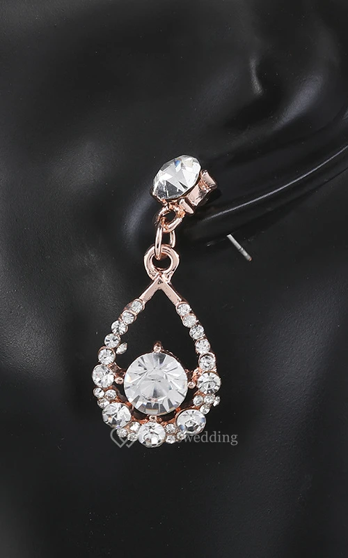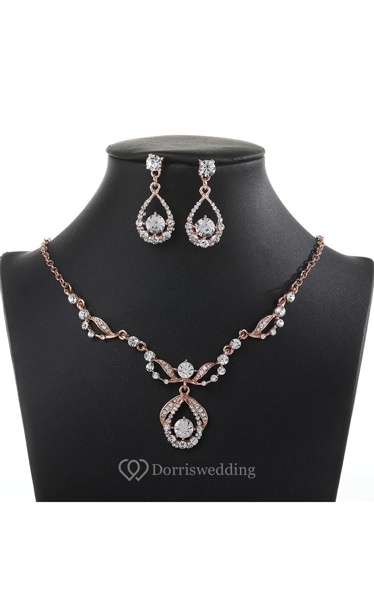 Rose Gold Rhinestone Design Necklace and Earrings Jewelry Set