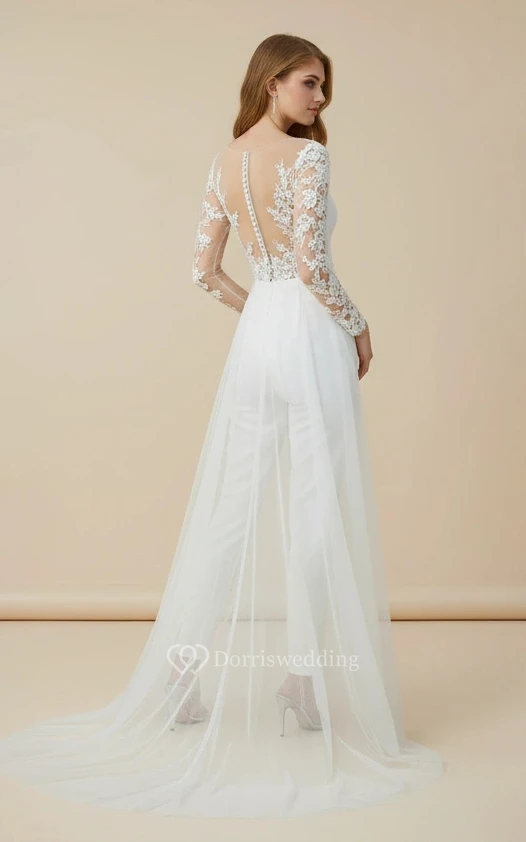 Round Neck Long Sleeve Lace Embroidery Wedding Jumpsuit