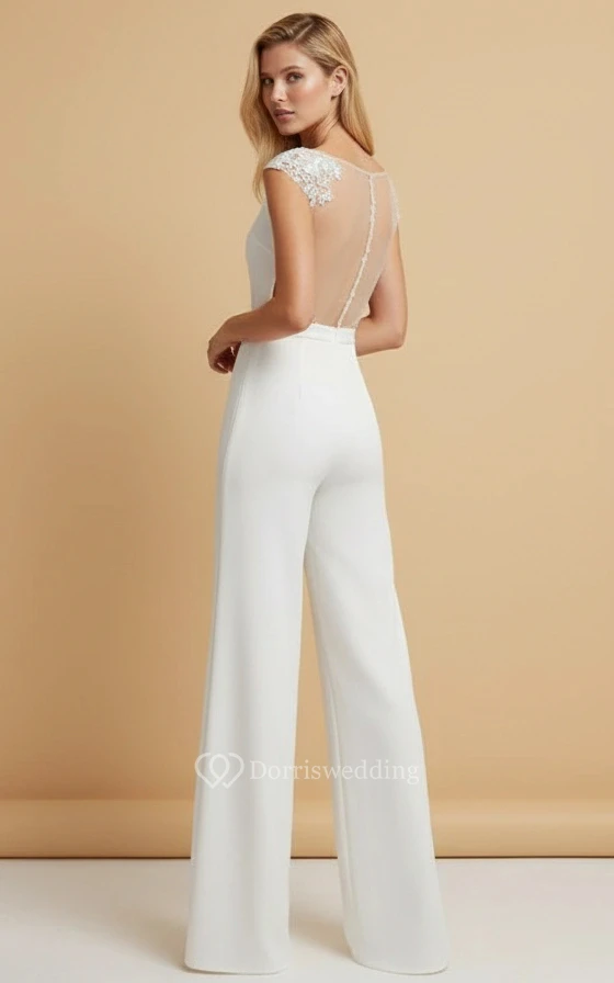 Round Neck Sleeveless Wide Leg Wedding Jumpsuit
