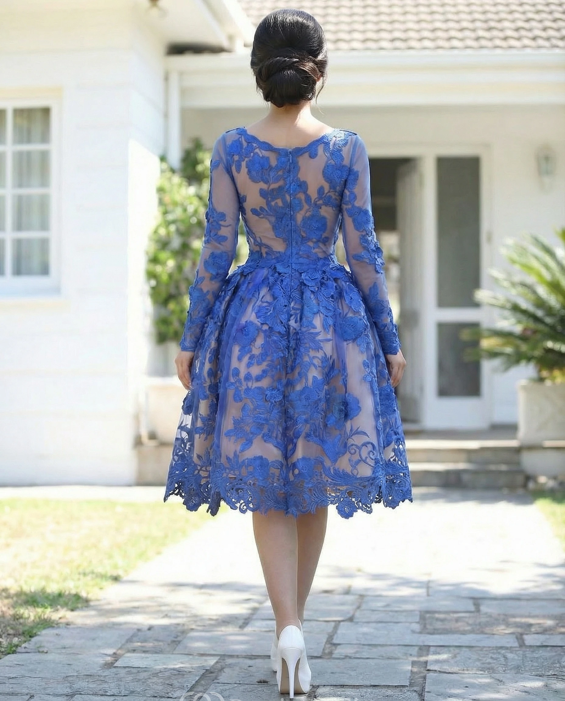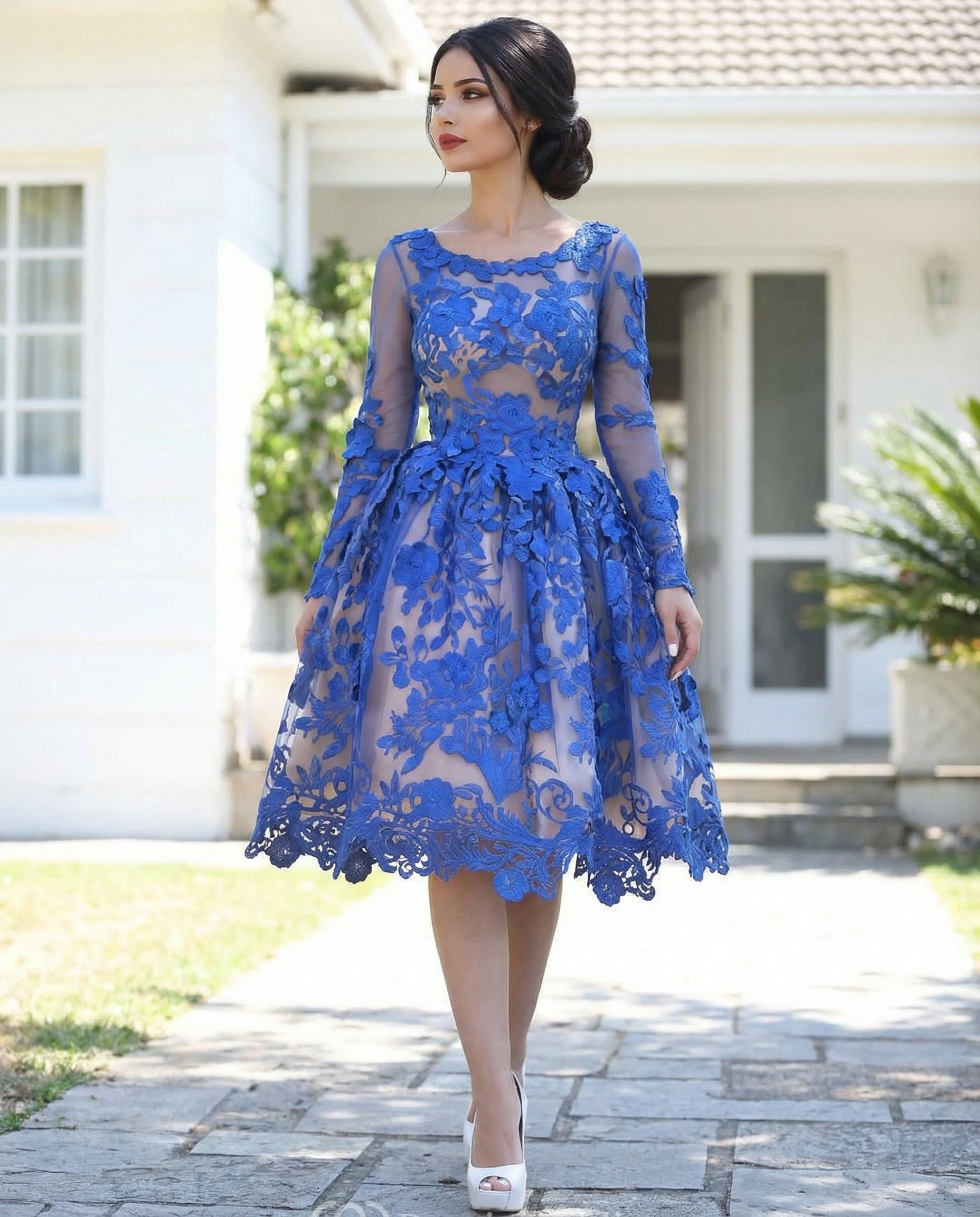 Royal Blue Applique Long Sleeve Prom Dress