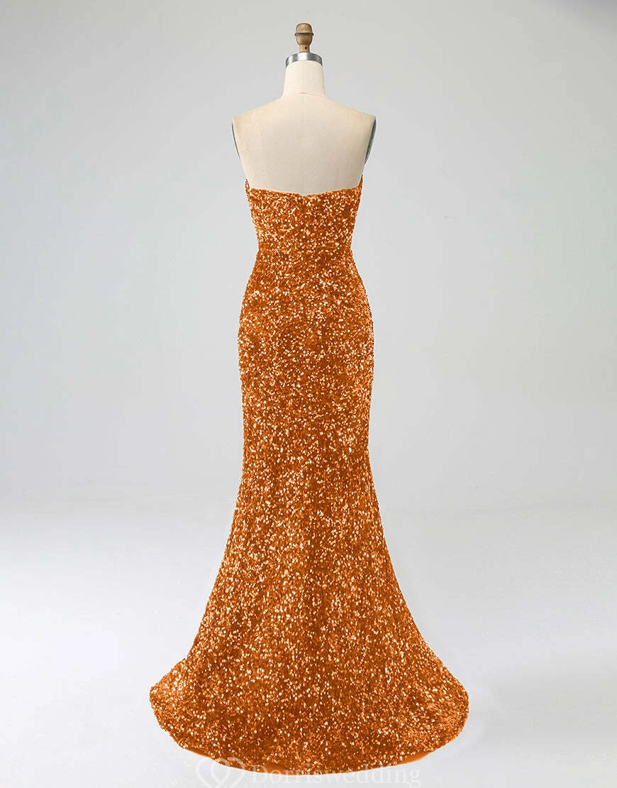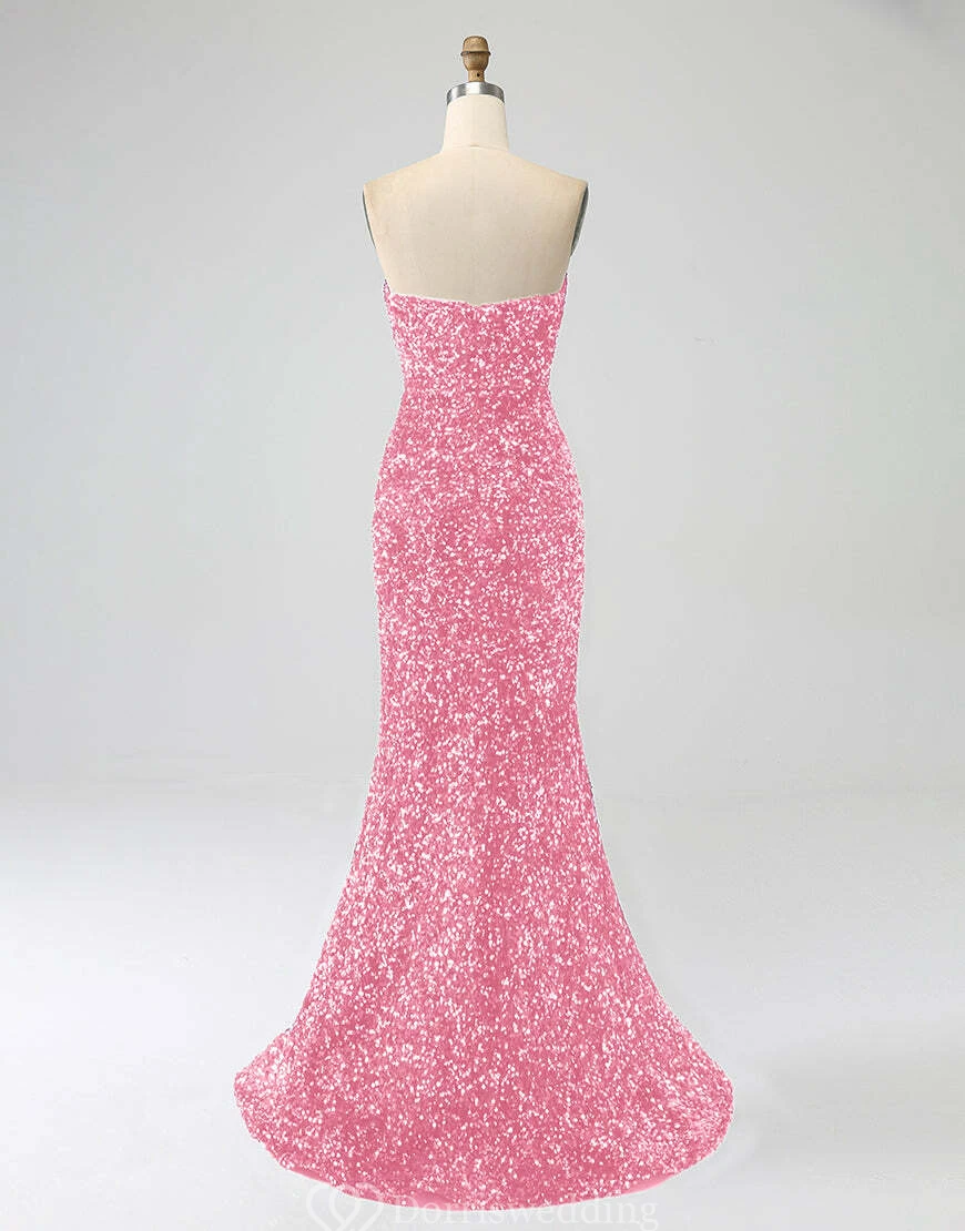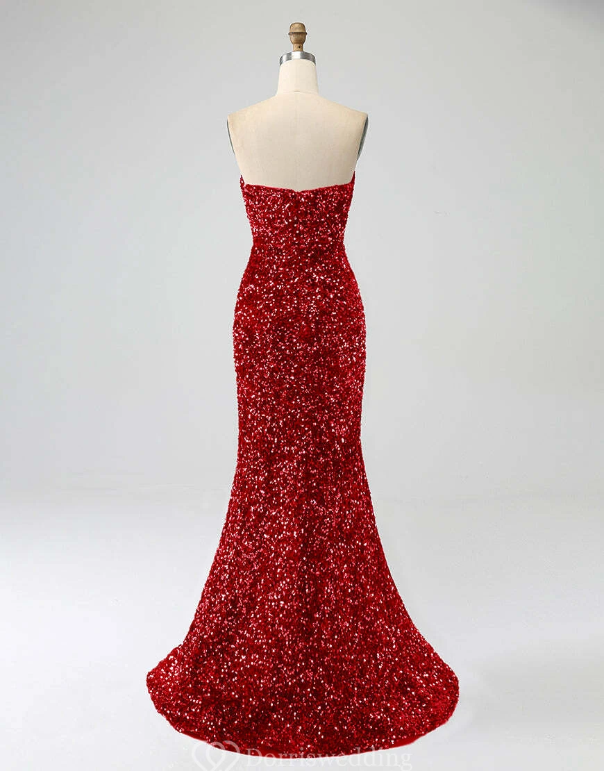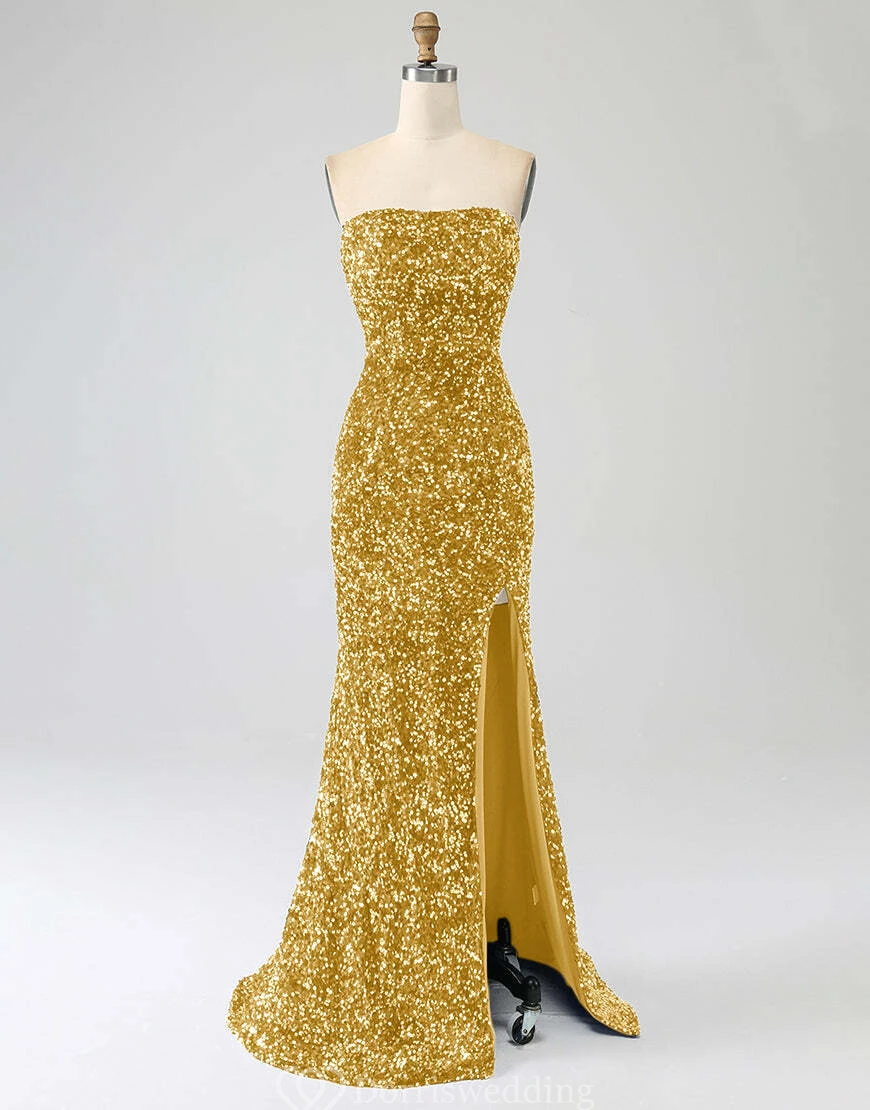 Make a statement in this royal-blue strapless sequin gown, complete with a daring thigh-high slit and fitted silhouette. Ideal for prom, pageants, or any upscale event where you want to shine. ✨ Features: Royal Blue Sequins, Strapless Neckline, Thigh-High Slit, Fitted Silhouette, Floor-Length Hem.