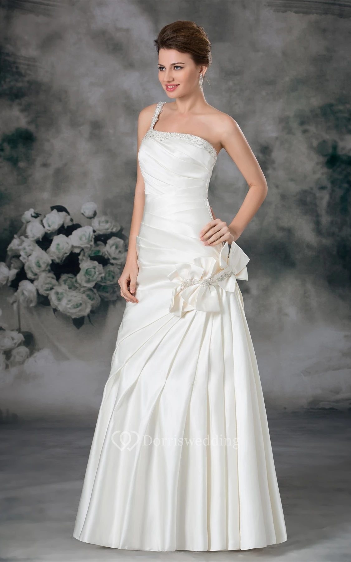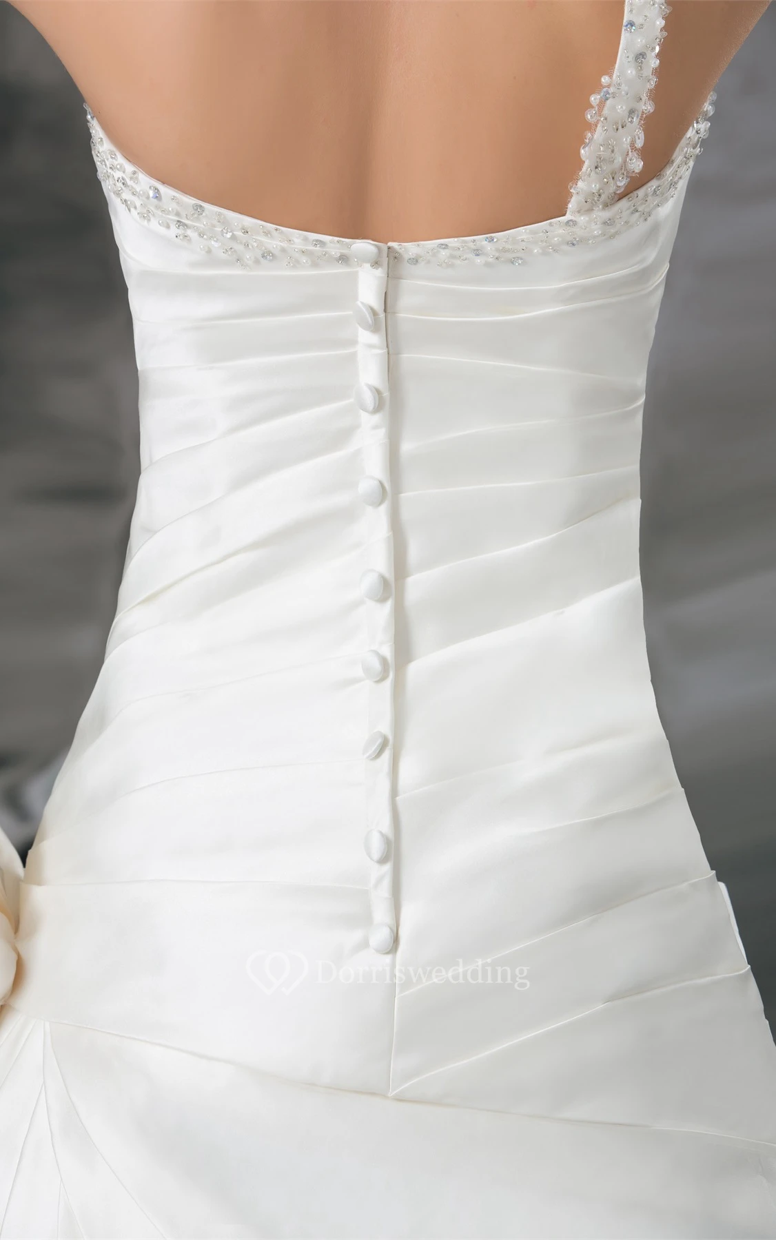 Ruched A-Line Mermaid Single Strap and Gown With Flower