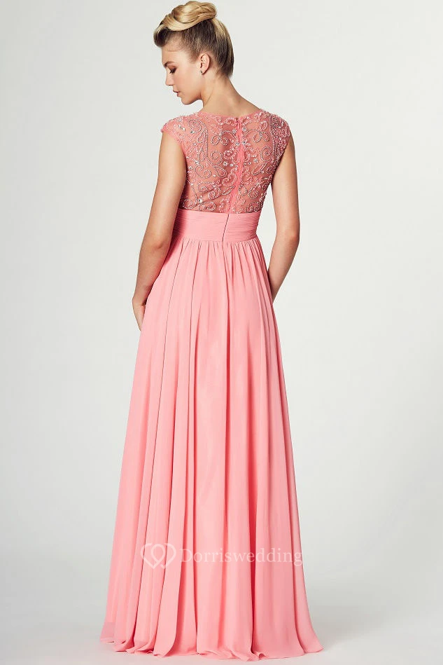 Ruched Scoop Neck Sleeveless Chiffon Prom Dress With Pleats And Beading