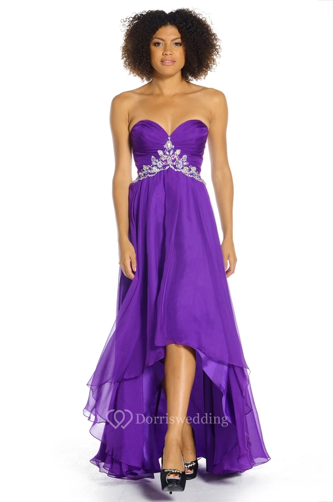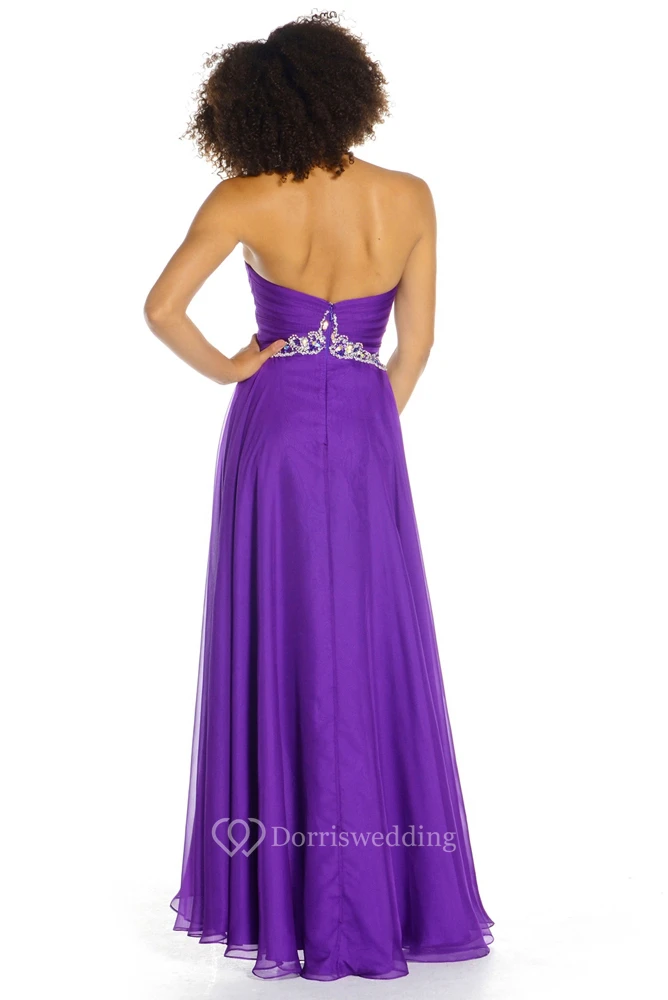 Ruched Sleeveless Sweetheart Chiffon Prom Dress With Beading