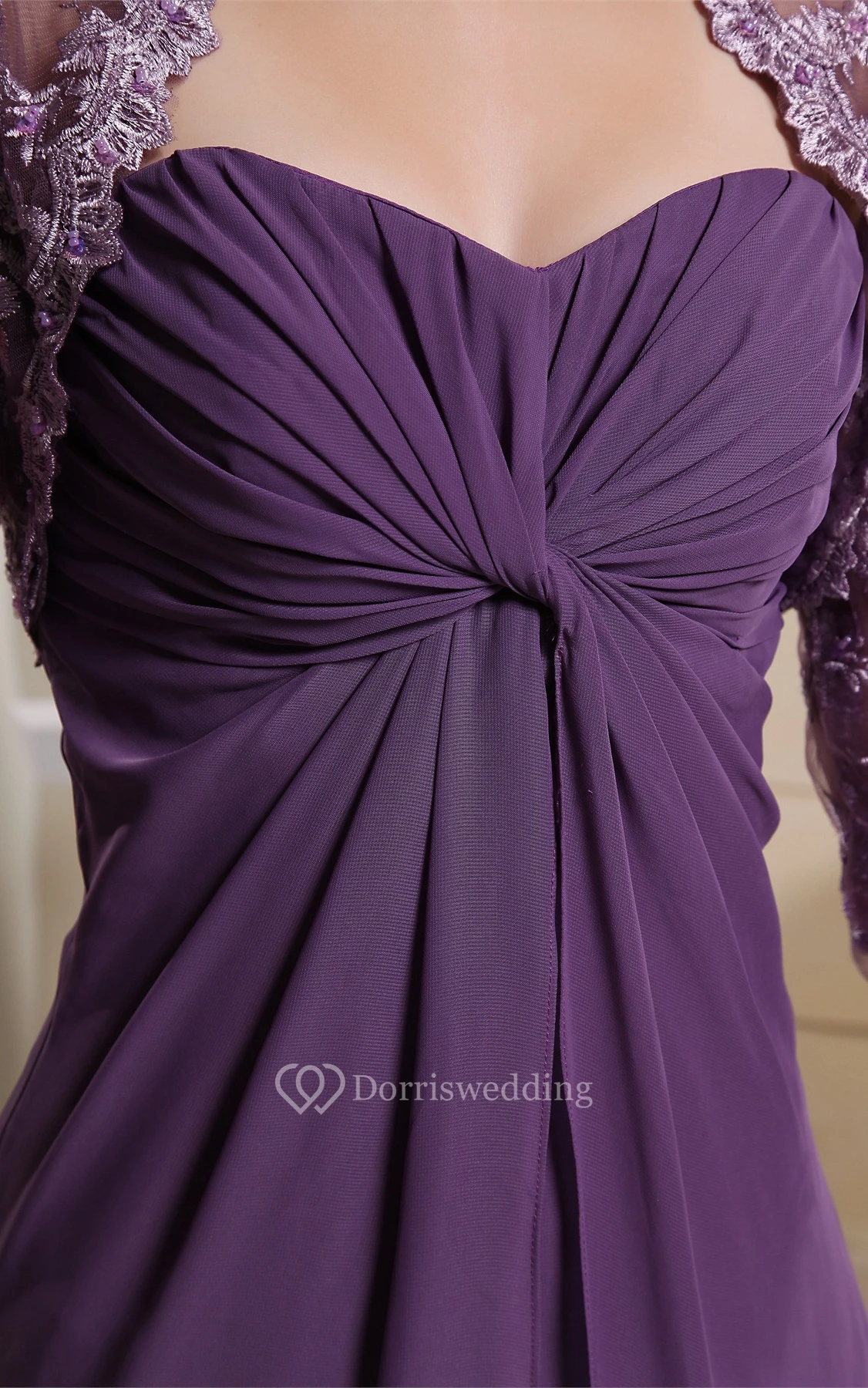 Ruched Sweetheart A-Line Maxi Dress With Detachable Scalloped Jacket