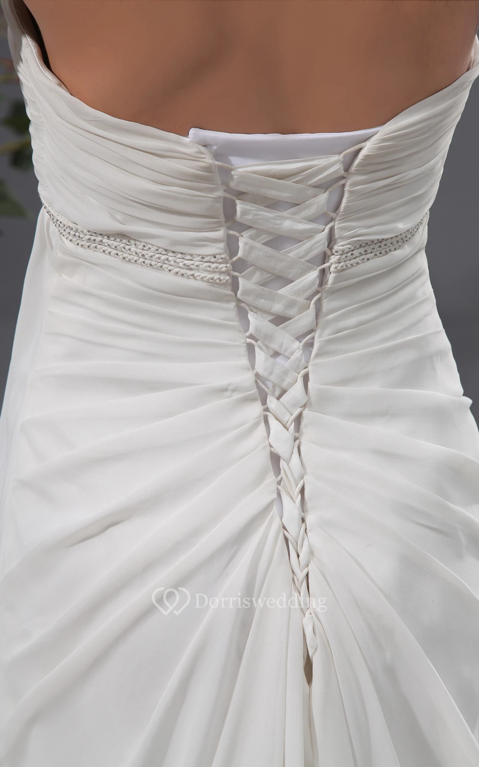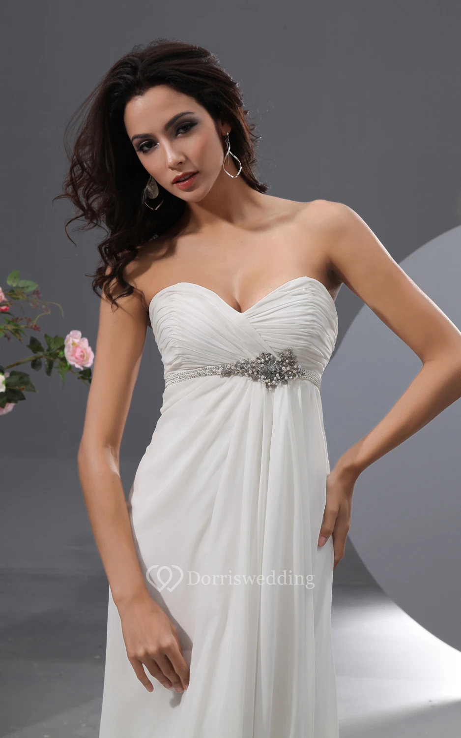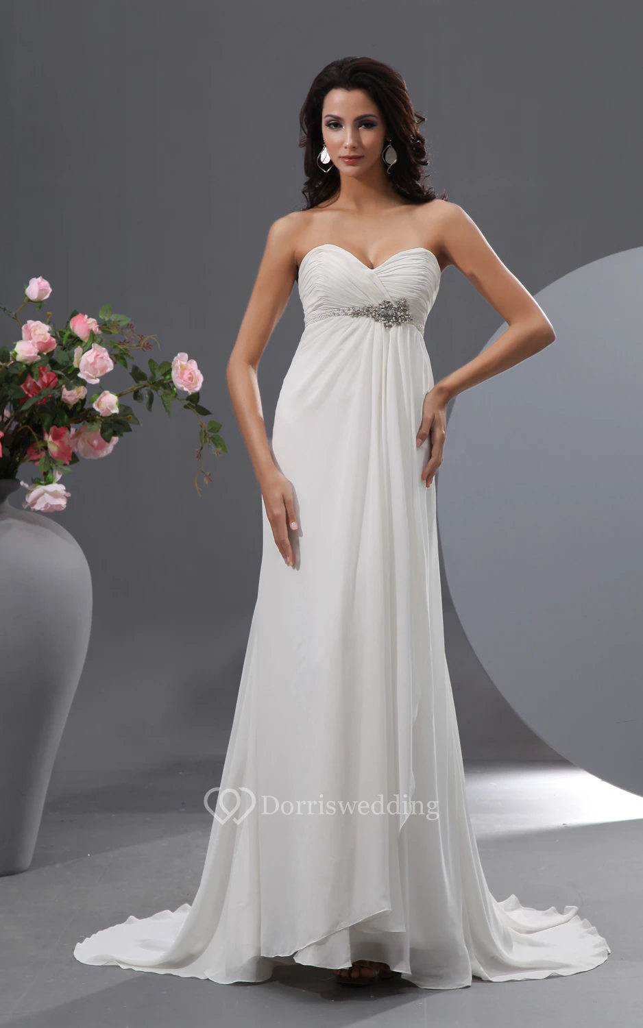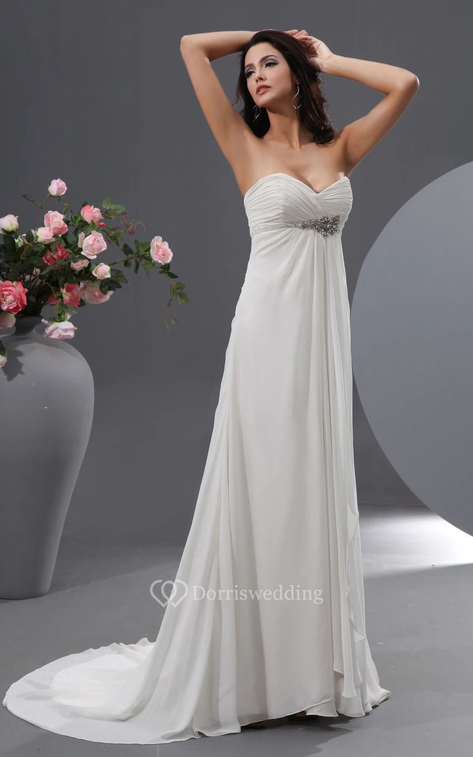 Ruching Chiffon Empire Dress With Pleating and Sweep Train