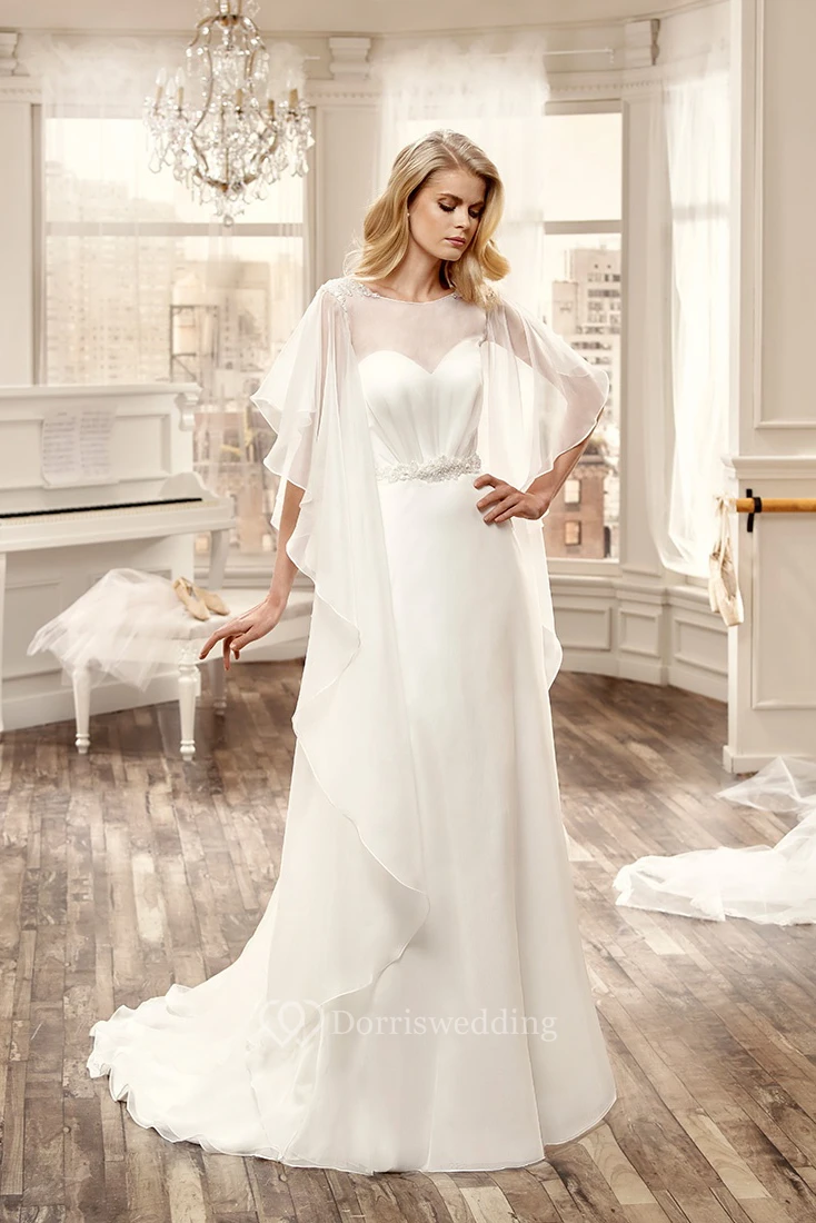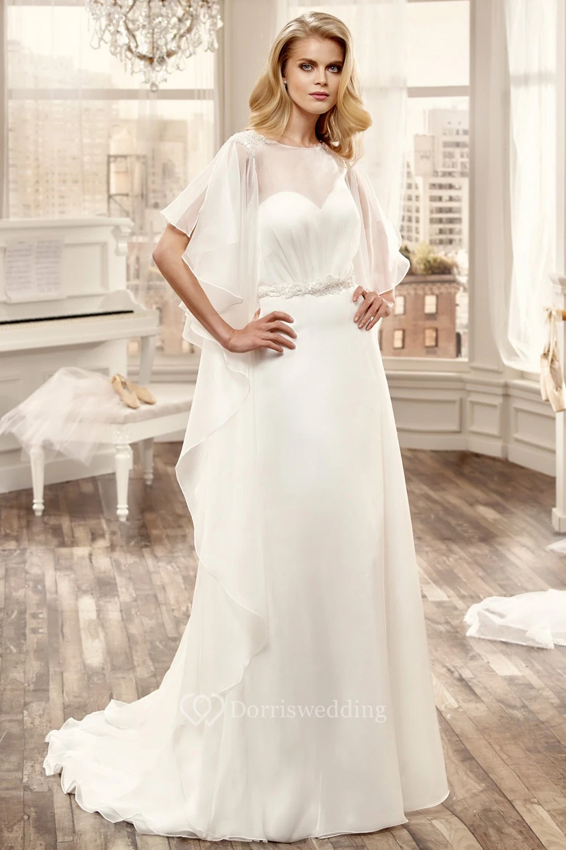 Ruching Chiffon Wedding Dress With Open Back And Brush Train