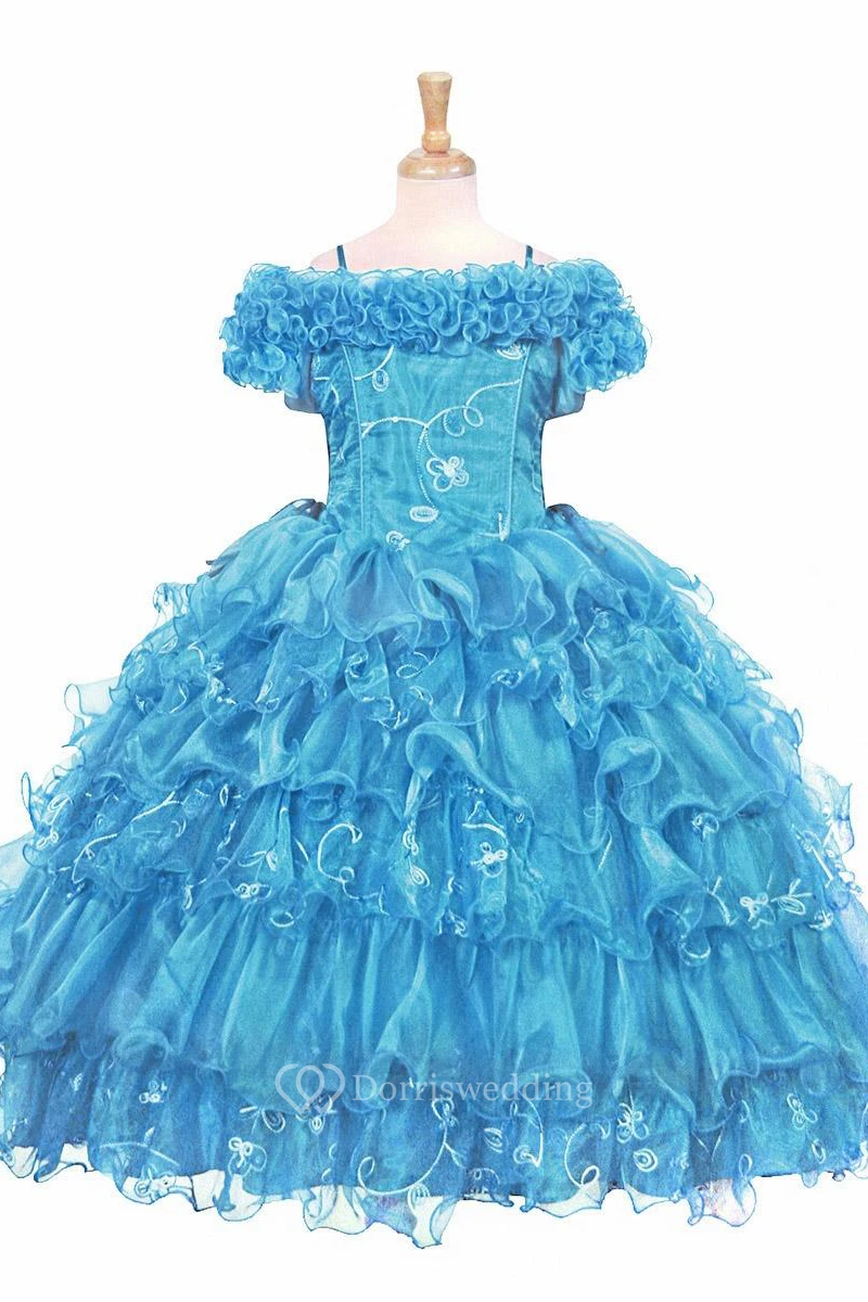 Ruffled Ankle-Length Lace&Sequins Flower Girl Dress With Embroidery