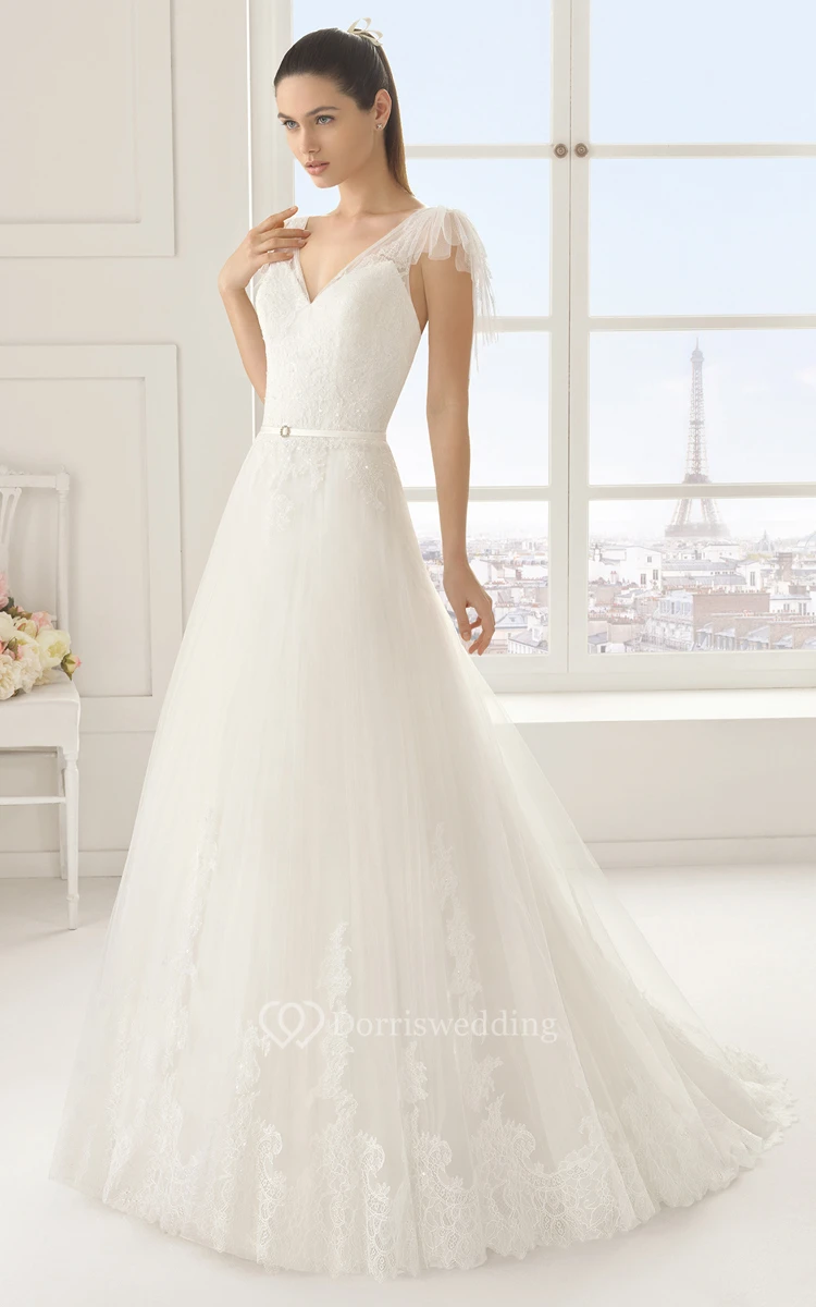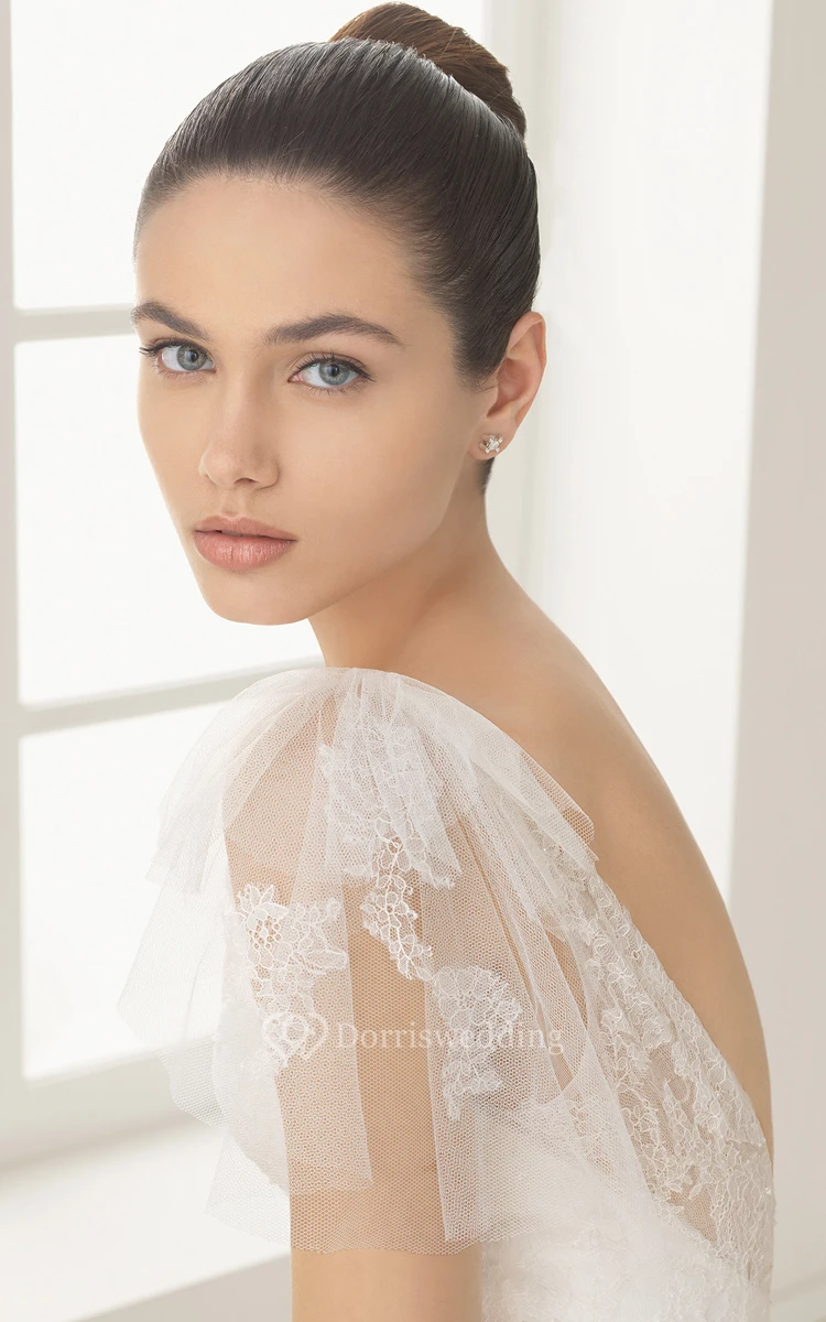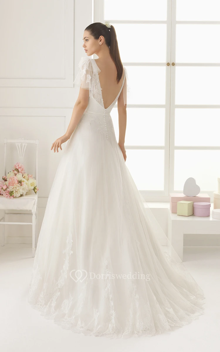 Ruffled V Back Bridal Dress With Butterfly Sleeves