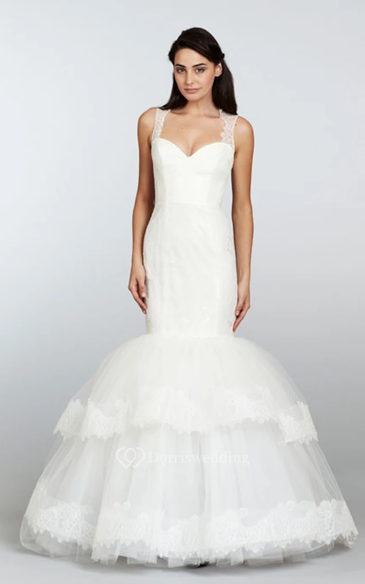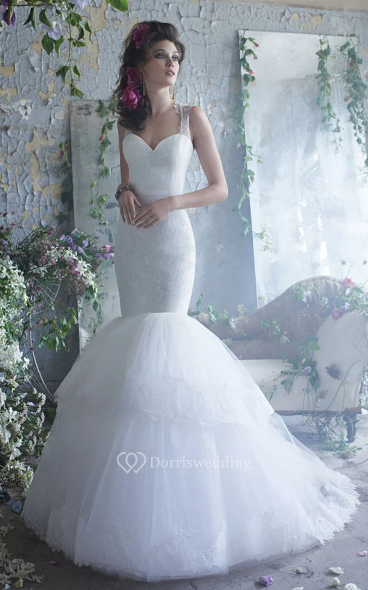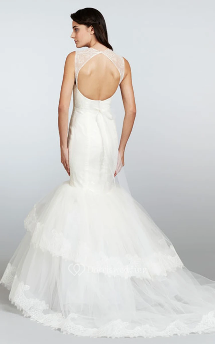 Sassy Lace Bodice Tiered Tulle Dress With Keyhole Back