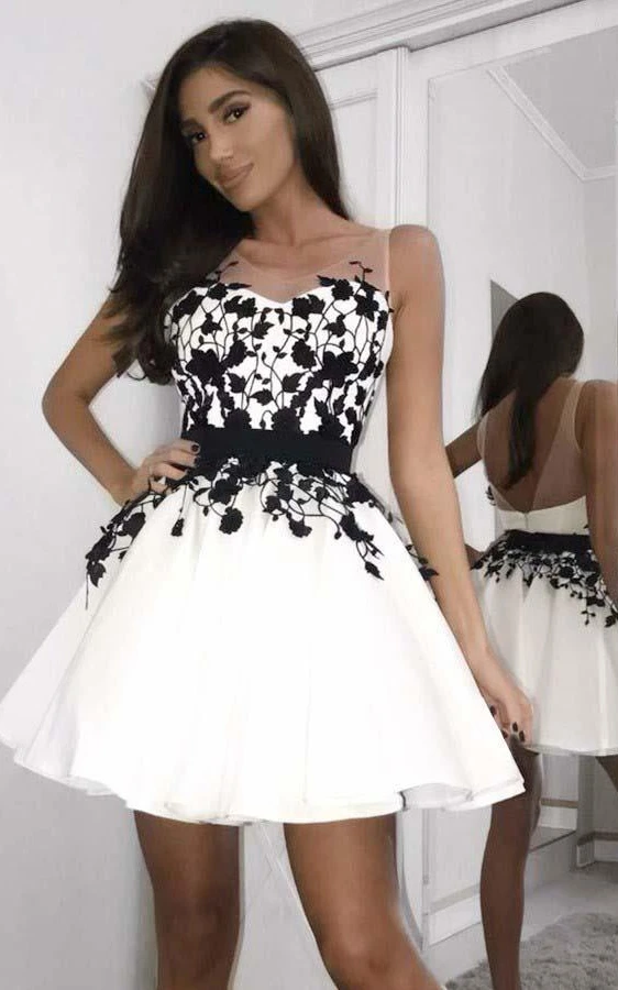 Satin A Line Backless Zipper Sleeveless with Appliques and Sash Homecoming Dress