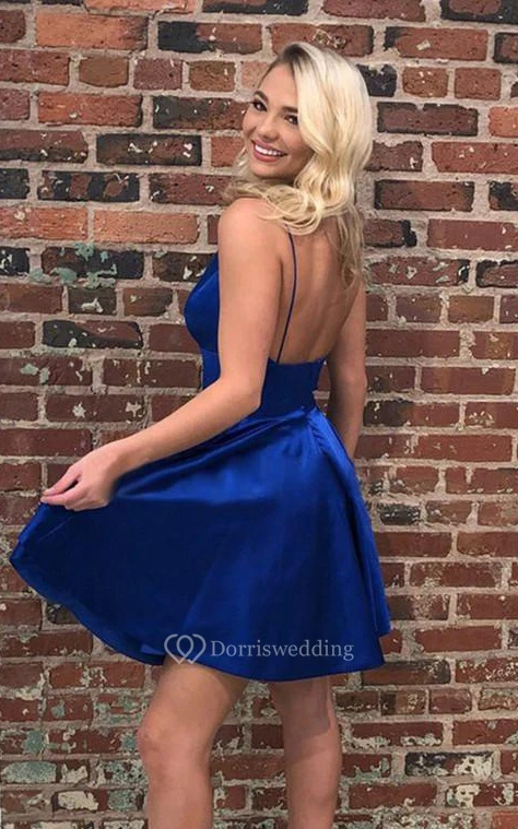Satin A Line Short Open Back Zipper Sleeveless Homecoming Dress