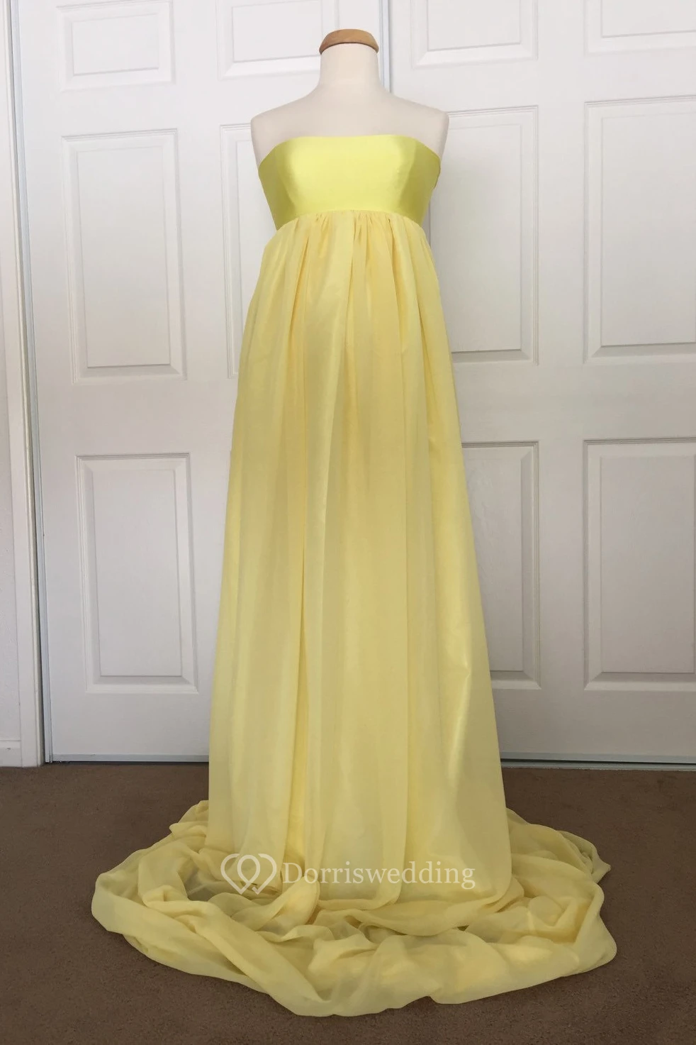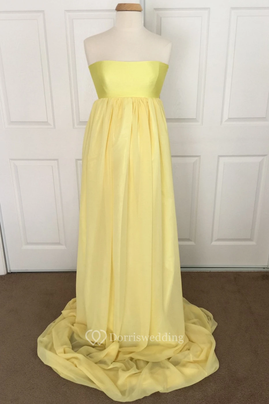 Satin Chiffon A-line Sleeveless Strapless Dress