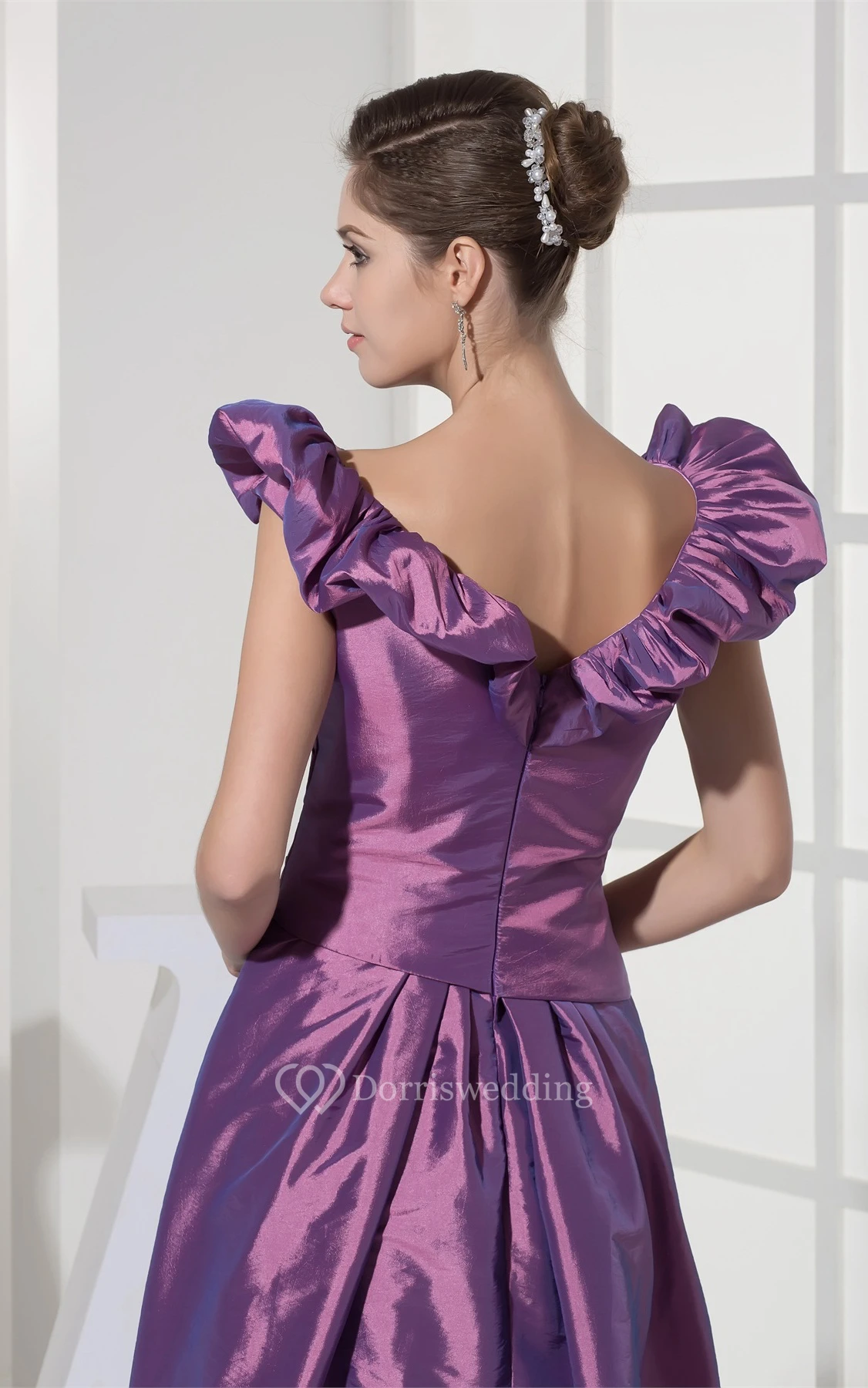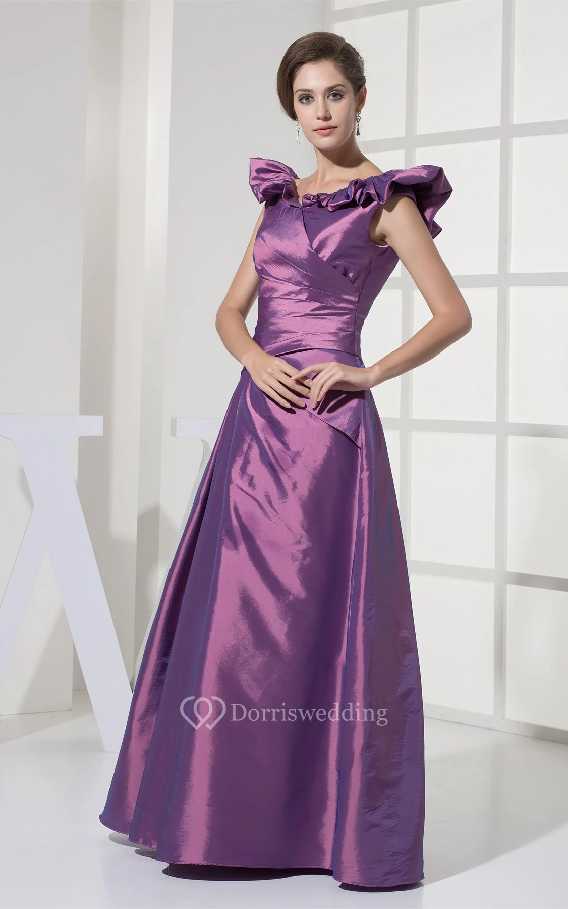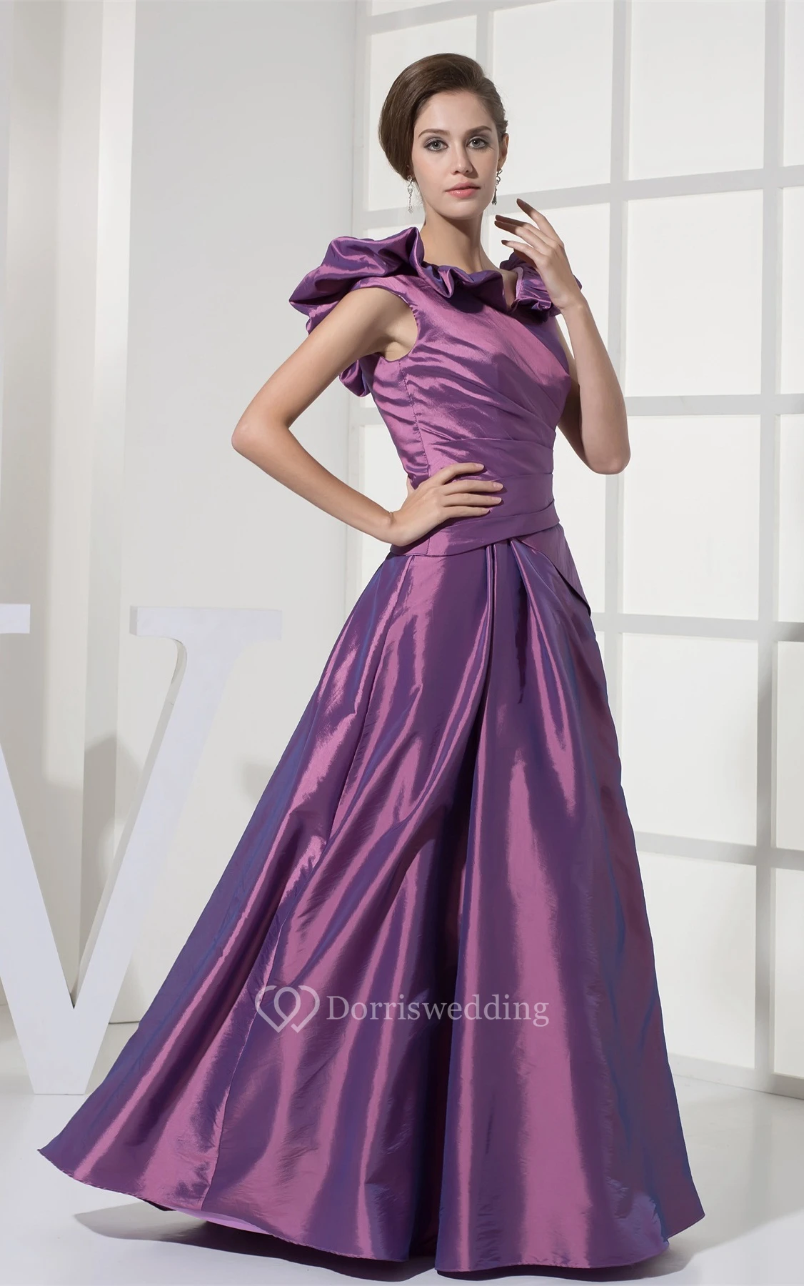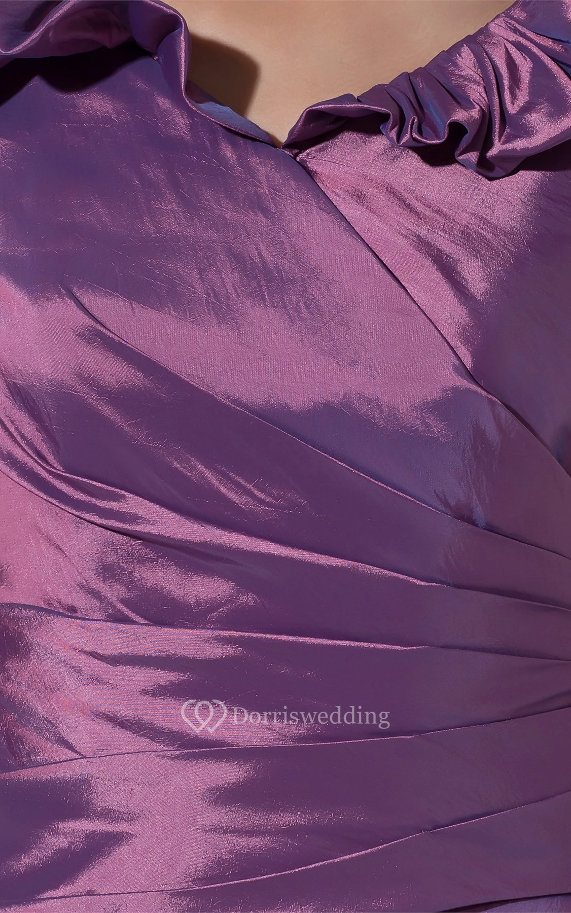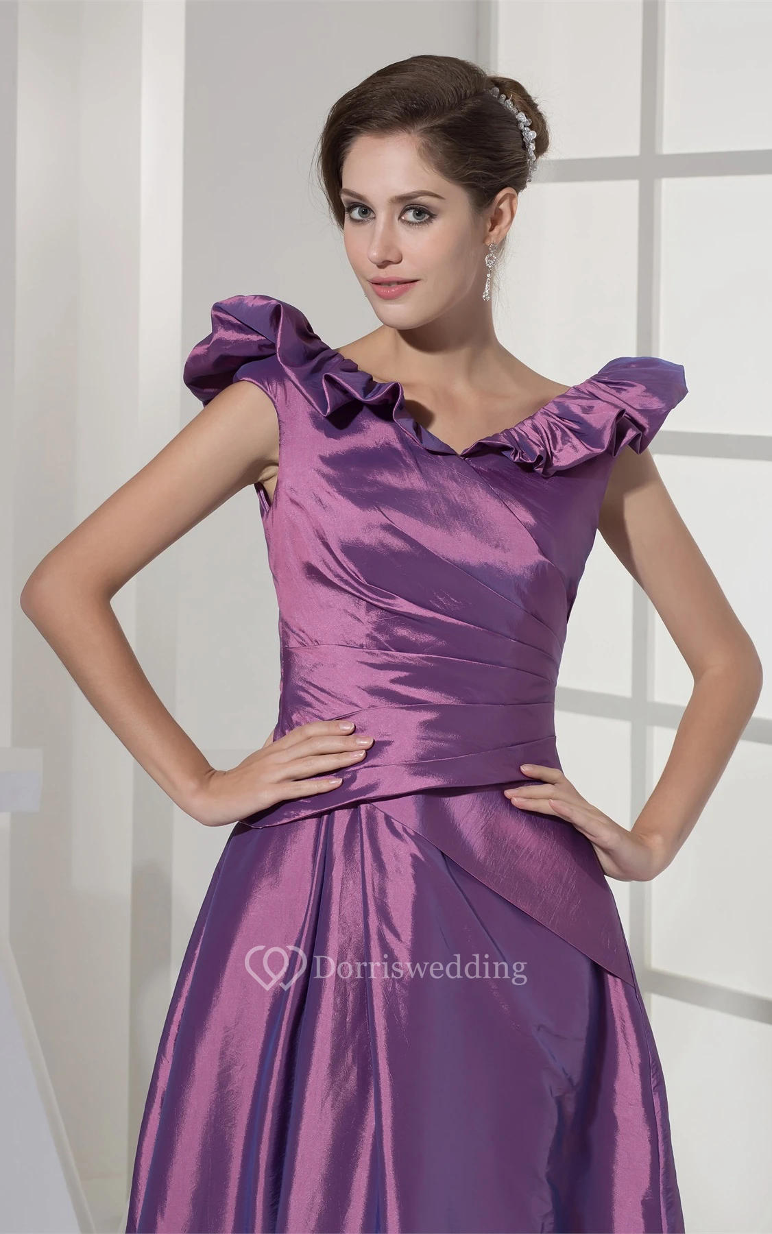 Satin Draped A-Line Gown With Ruffled V Neckline