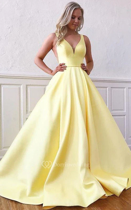 Satin Floor-length Brush Train A Line Sleeveless Modern Formal Dress with Ruffles