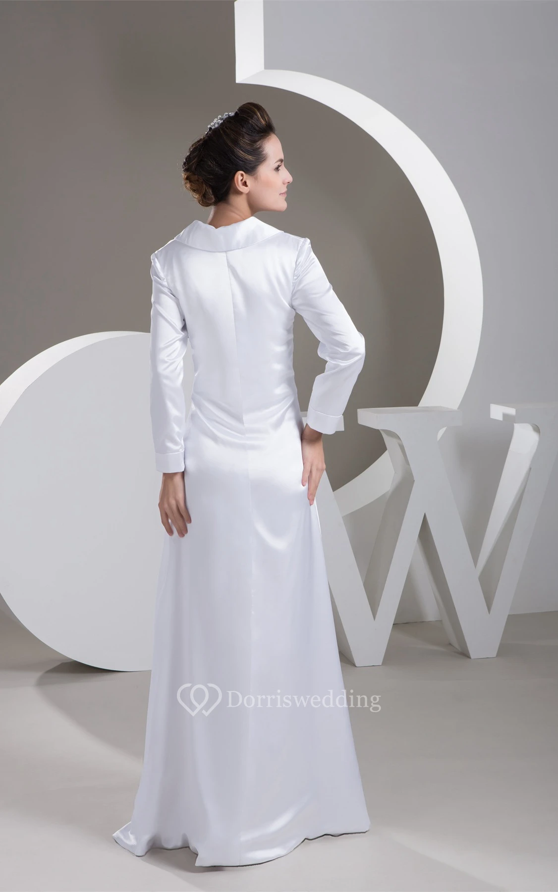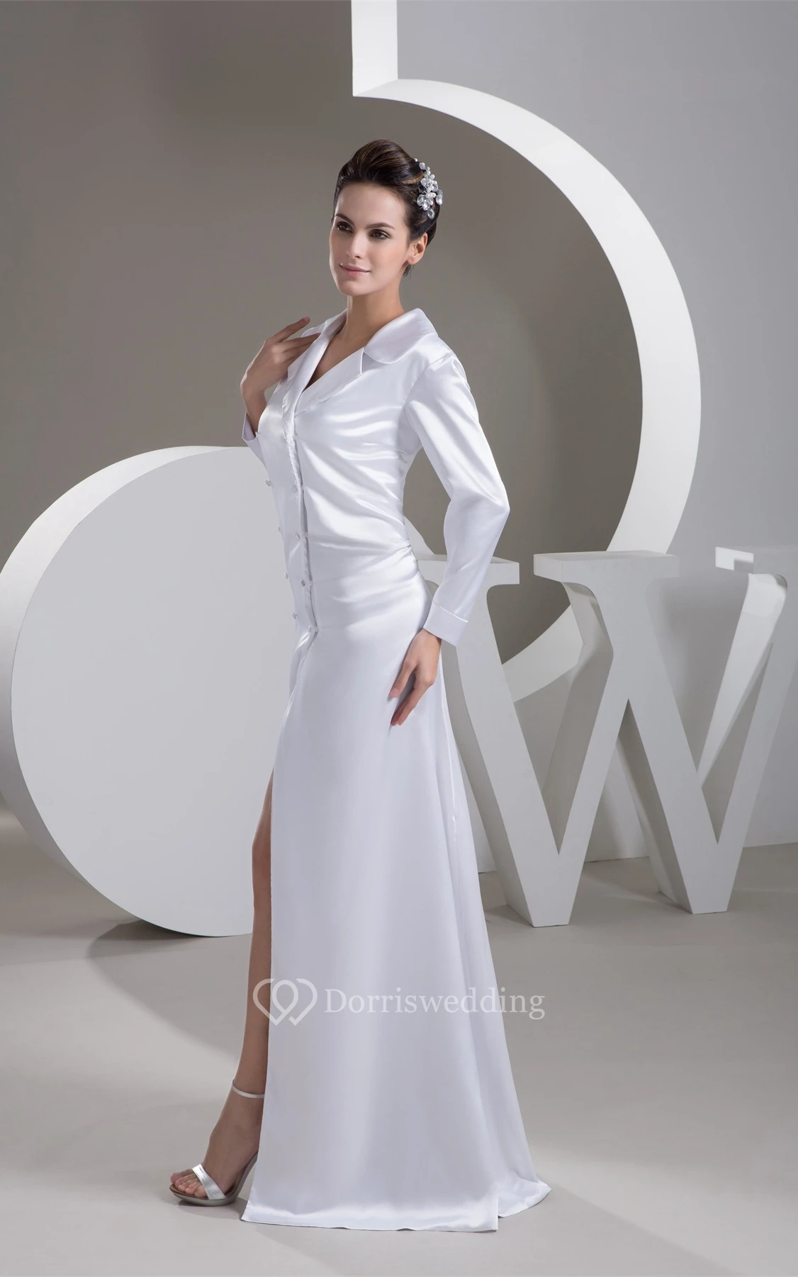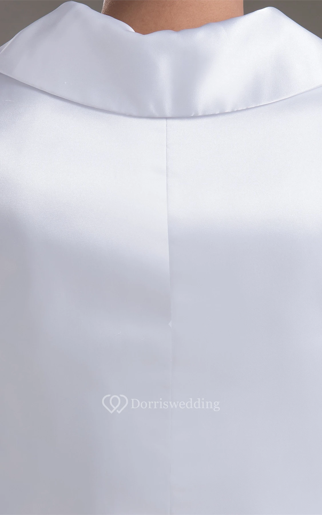 Satin Front-Split Sleeveless Dress With Suit Collar
