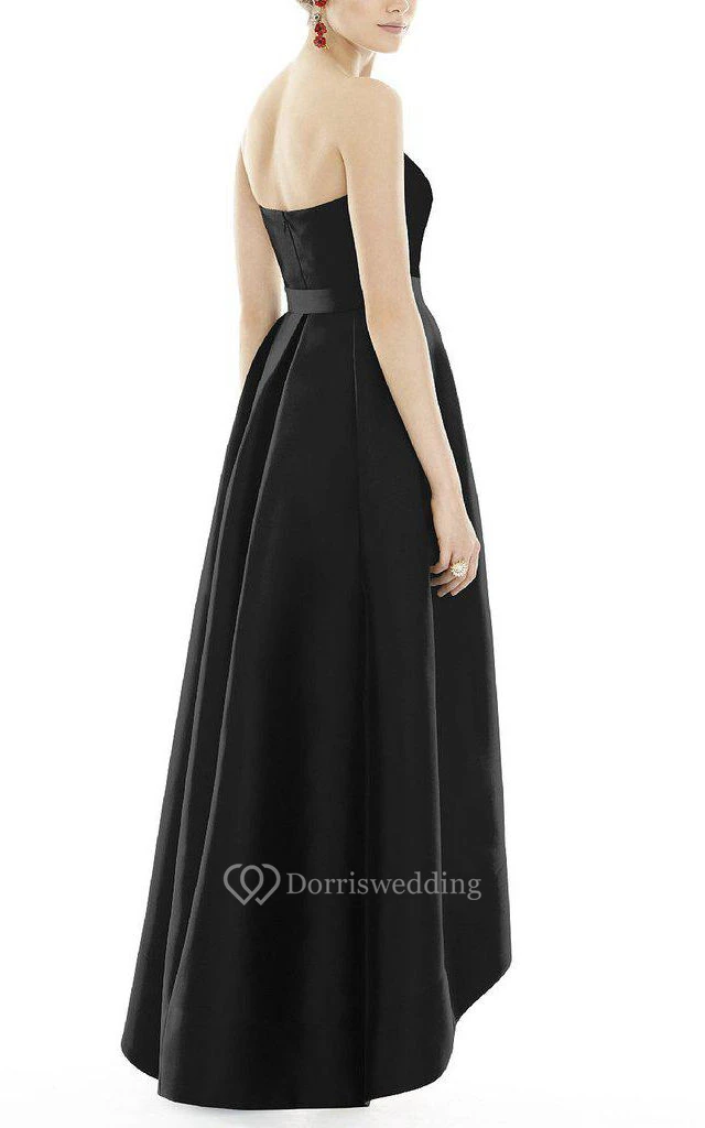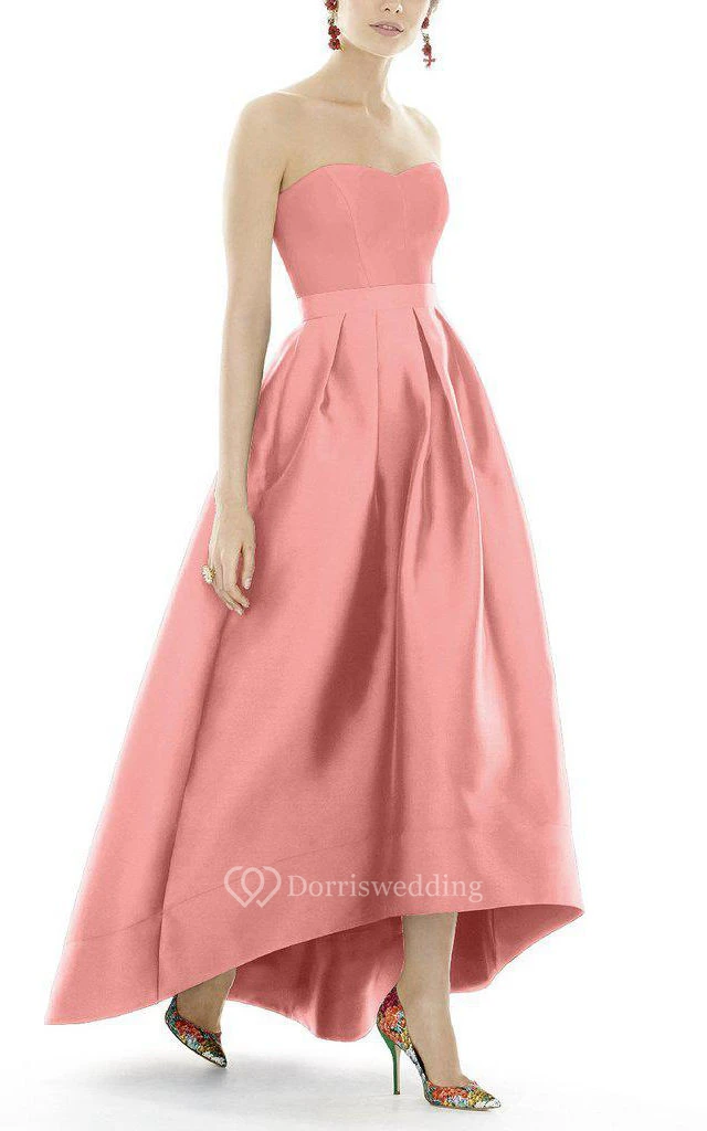 Satin High-low Ball Gown Dress with Pleats