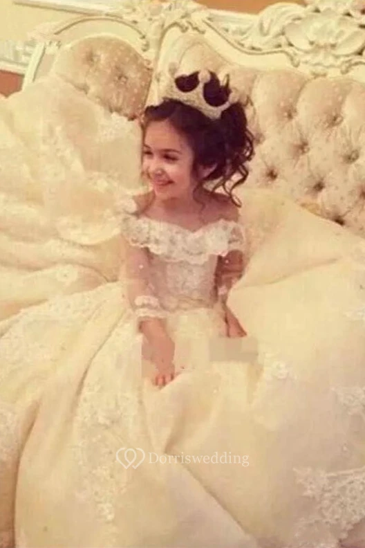 Satin Off-the-shoulder Corset Ball Gown Flower Girl First Communion Dress