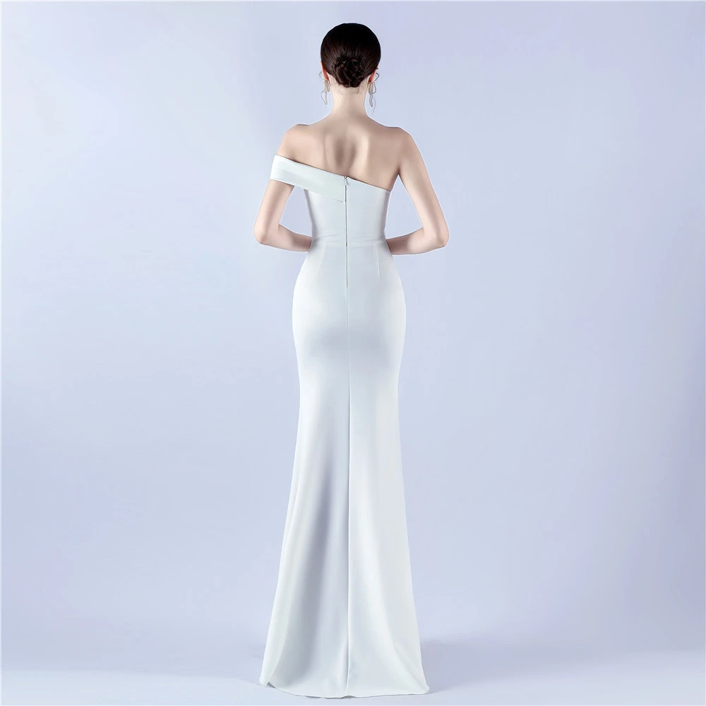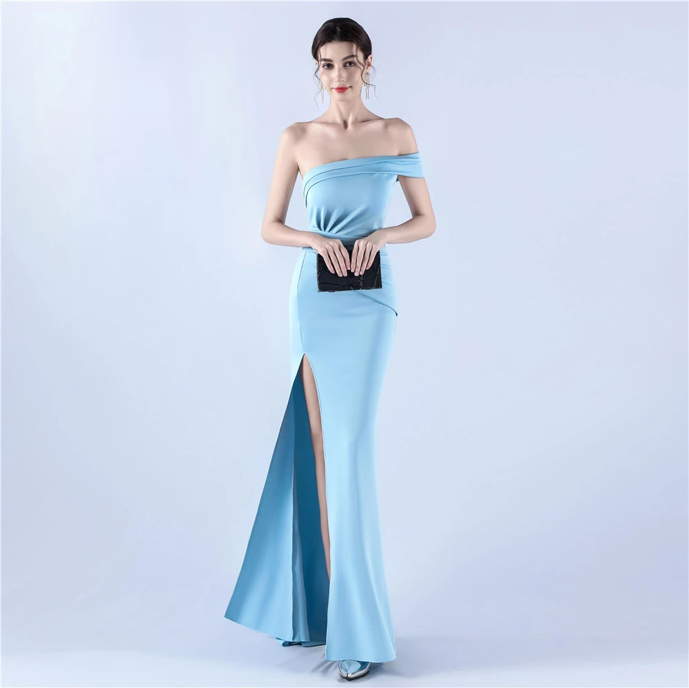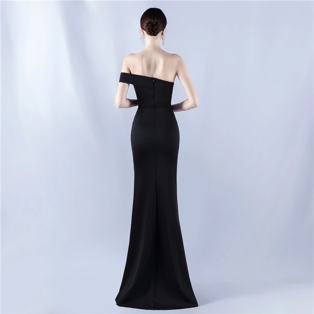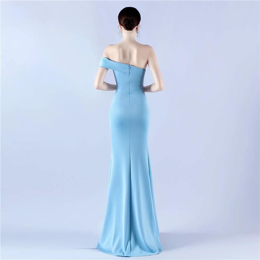 Satin One-Shoulder Host Celebration Banquet Evening Dress