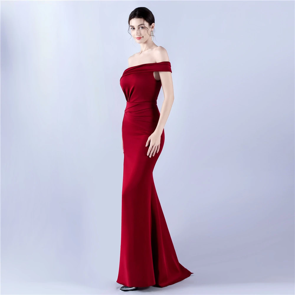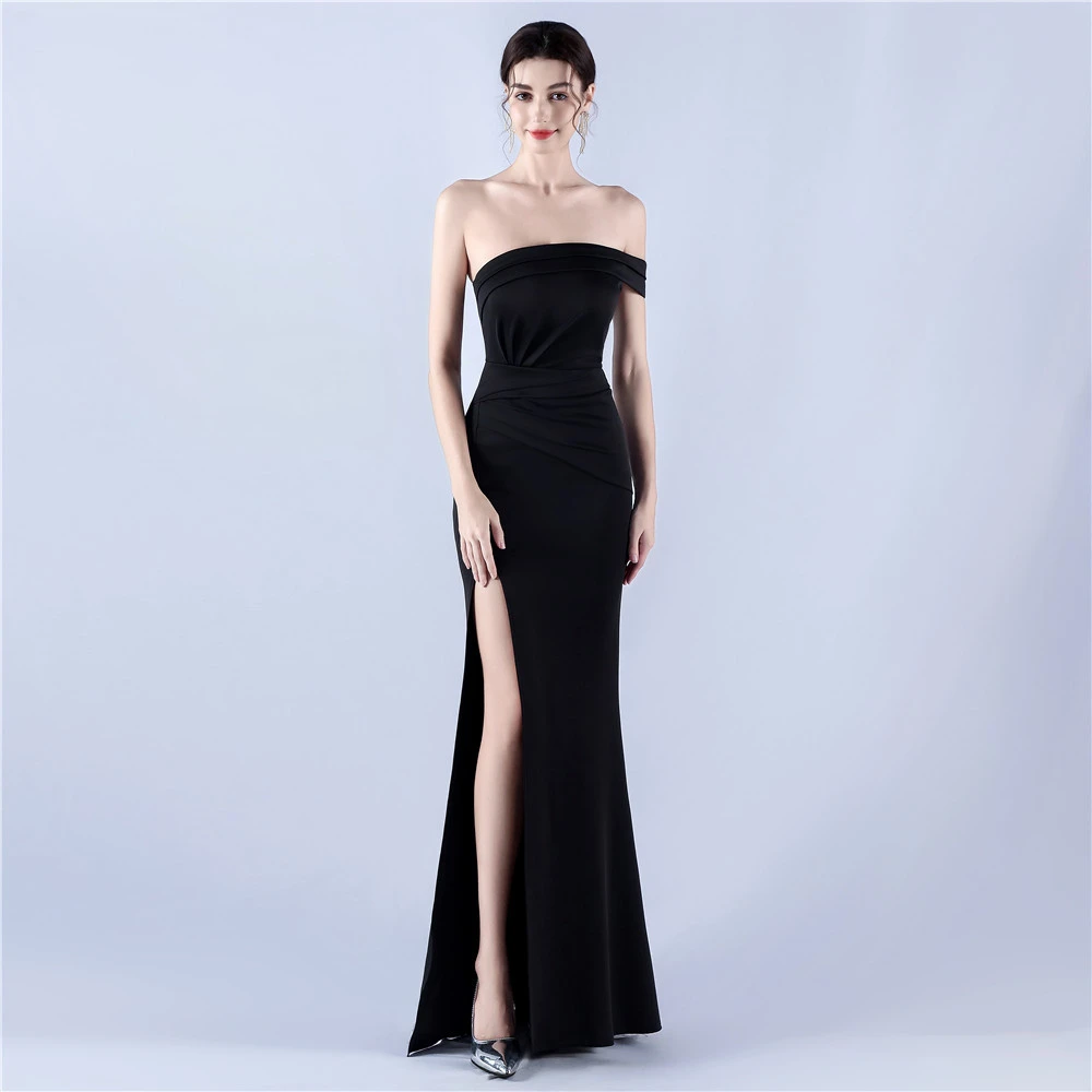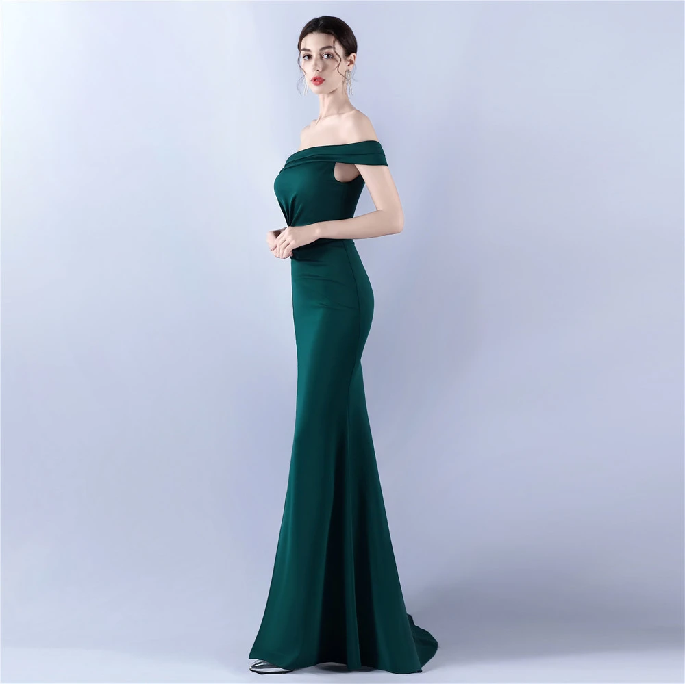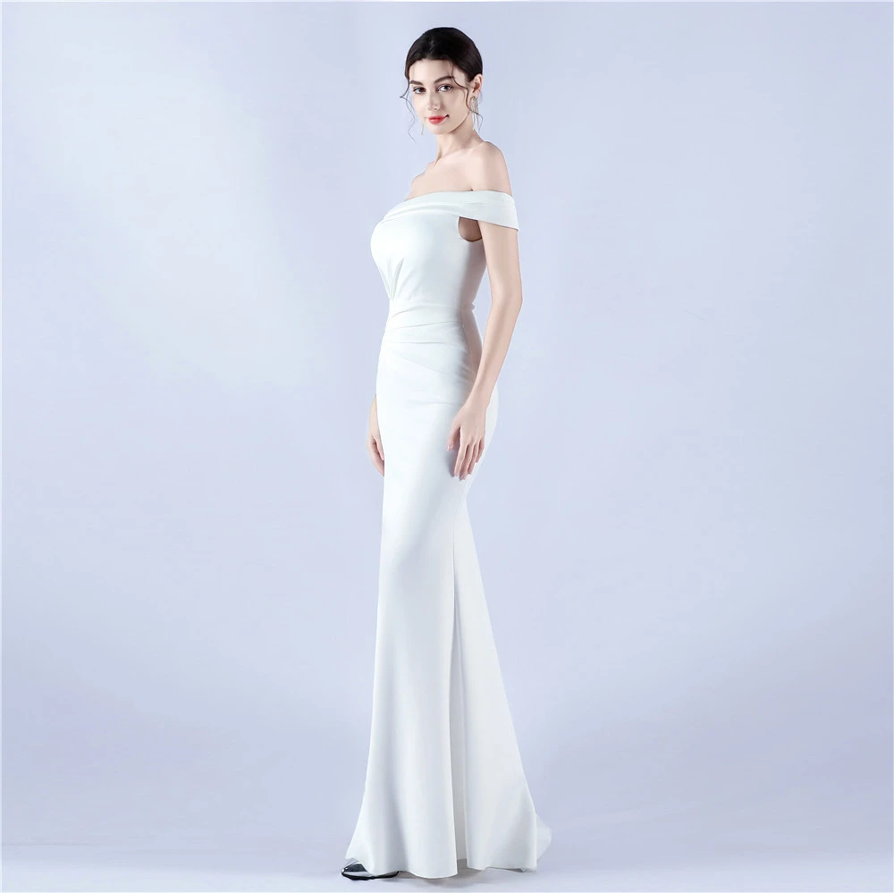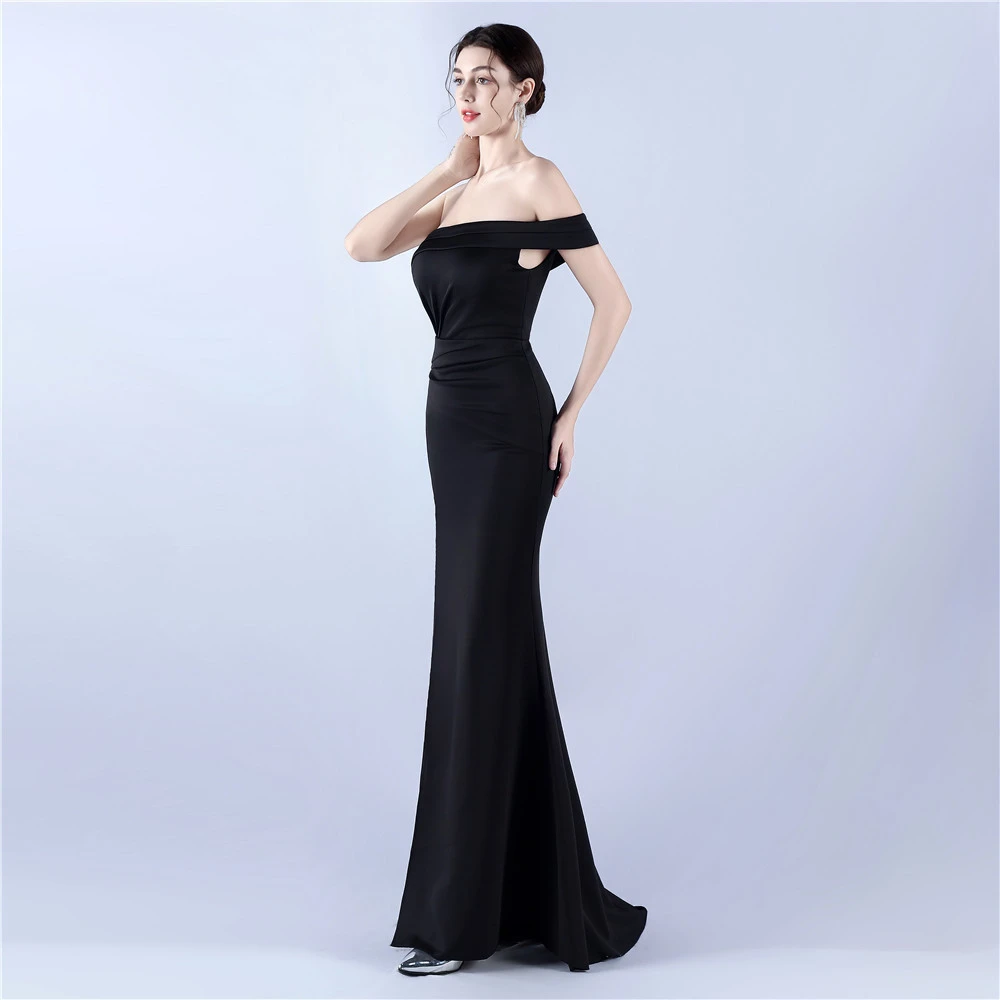 Satin One-Shoulder Host Celebration Banquet Evening Dress