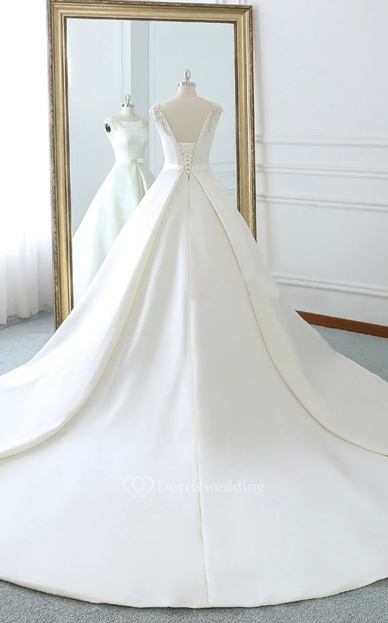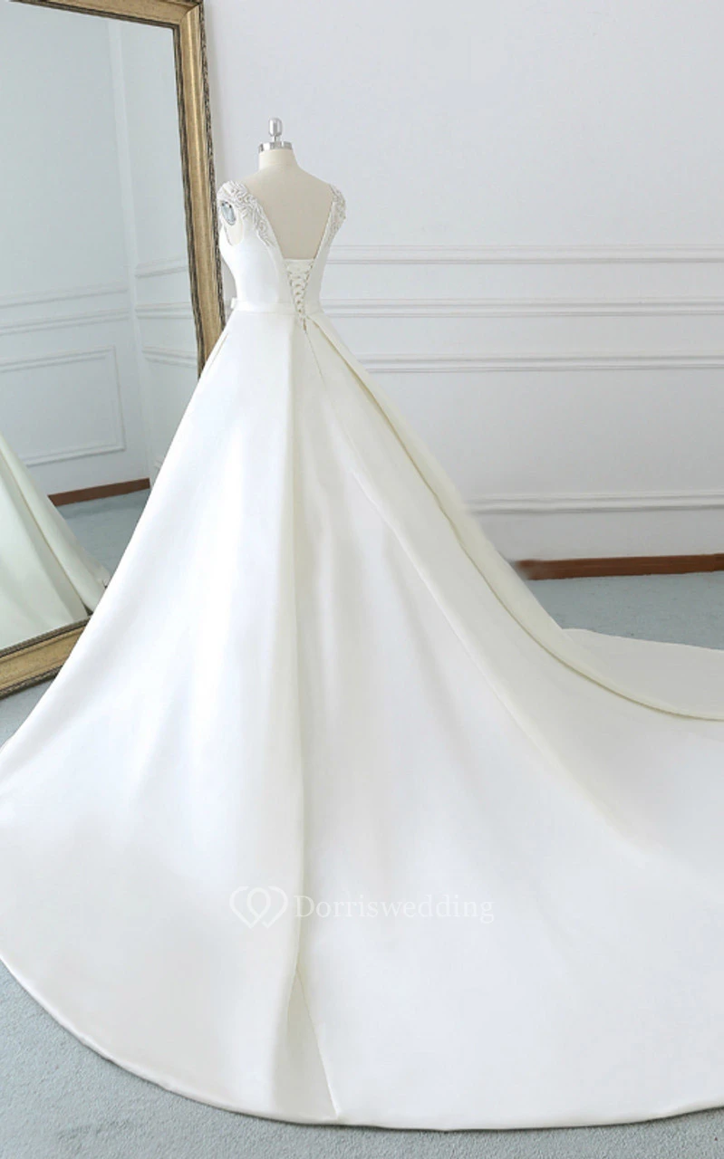 You can choose either a button bustle or an over bustle — both will work beautifully with your dress!