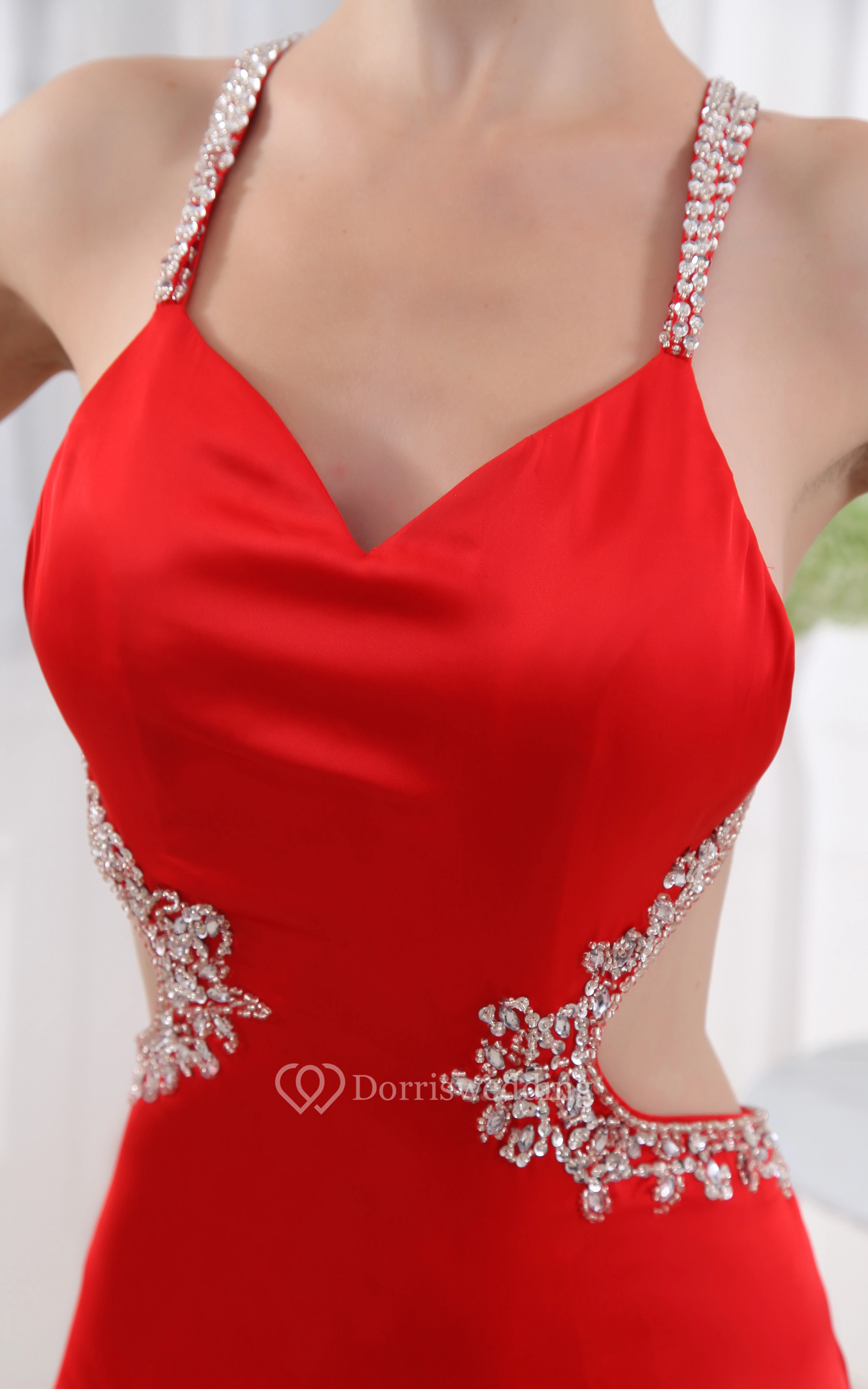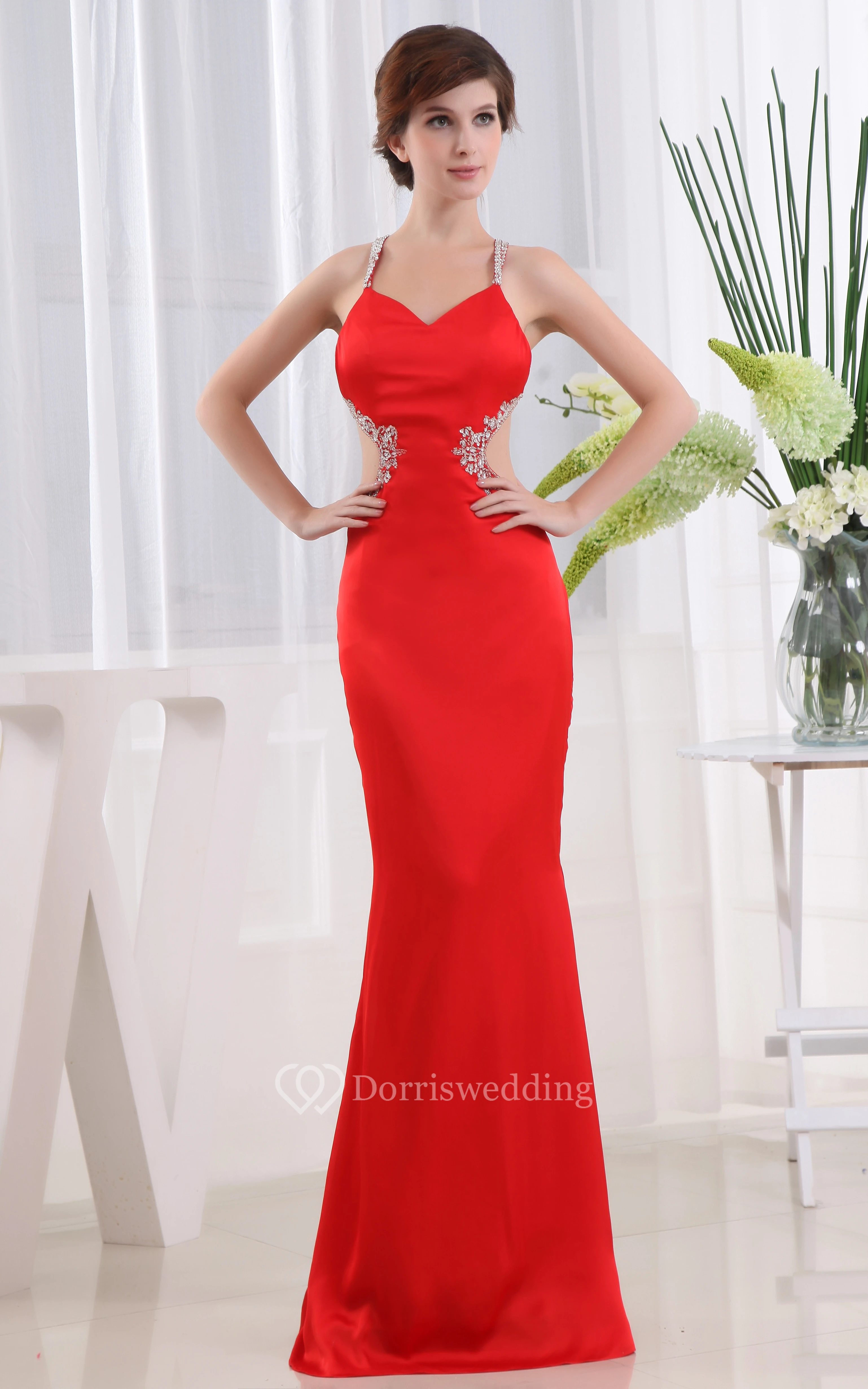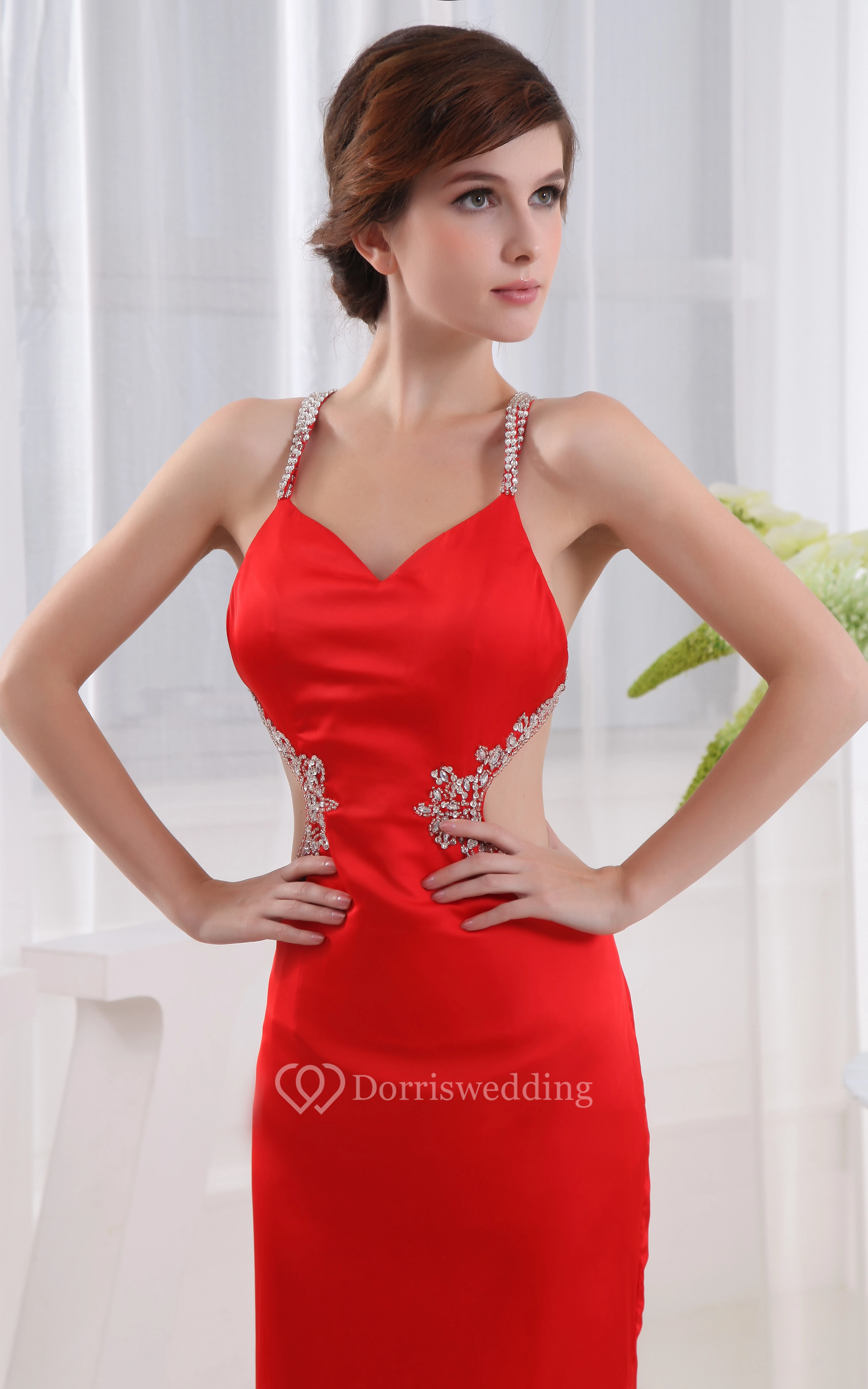 Satin Sheath Dress With Beading and Keyhole