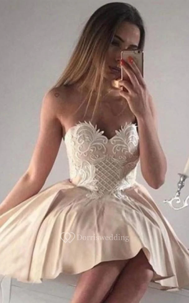 Satin Short A Line Sleeveless Casual Homecoming Dress with Appliques