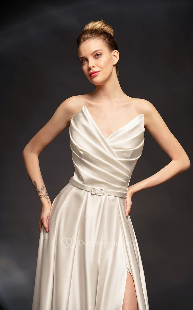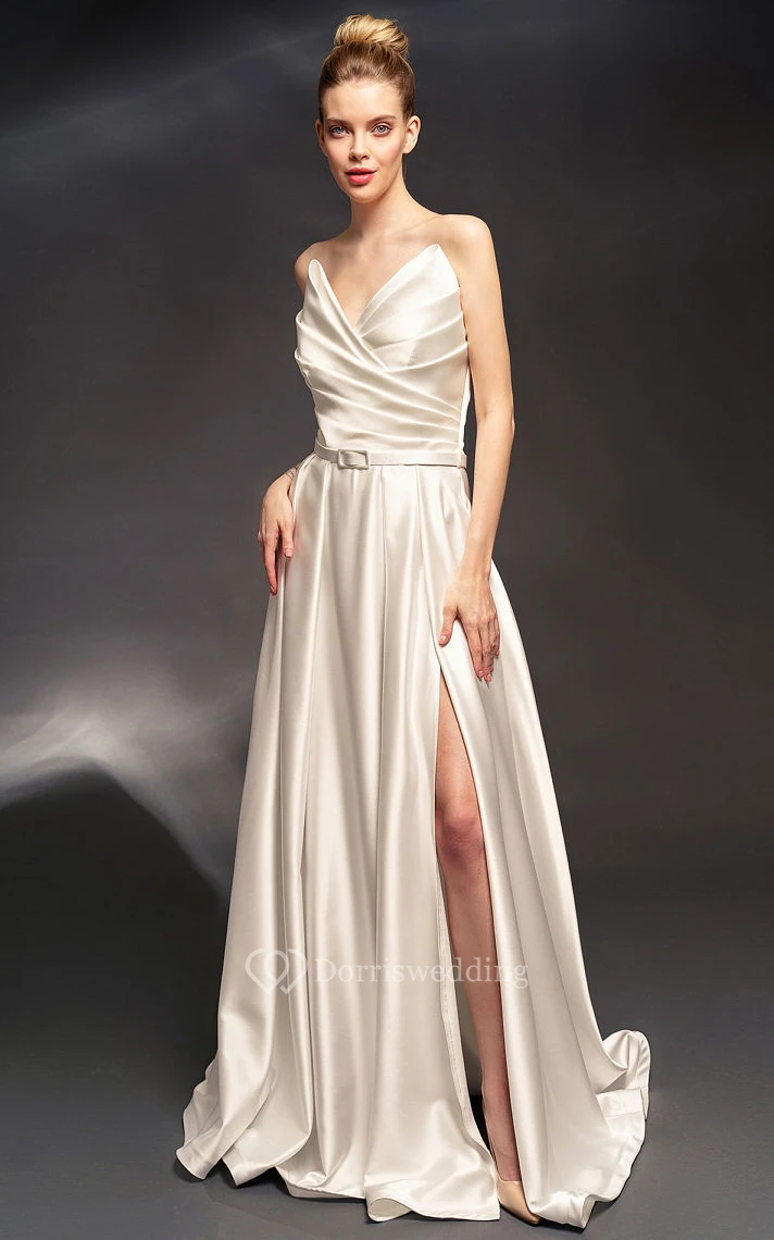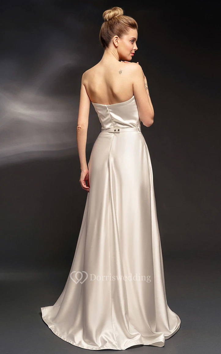 Satin Sweetheart Sleeveless Front Split Sheath Backless Gold Bridesmaid Dress