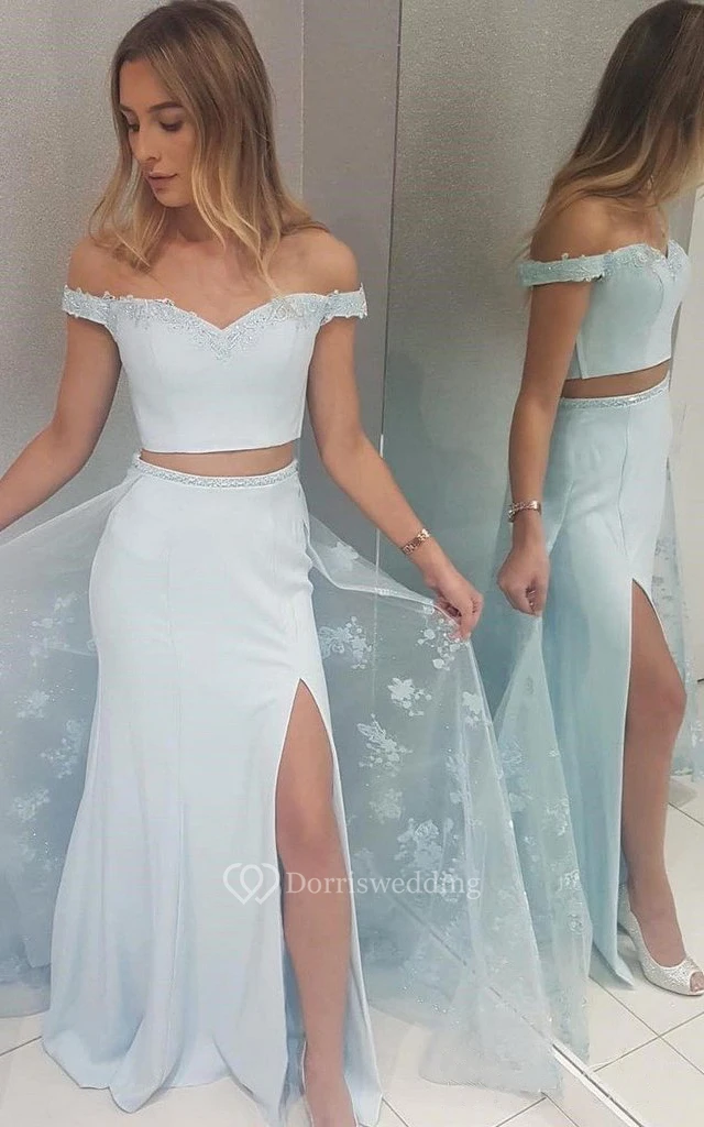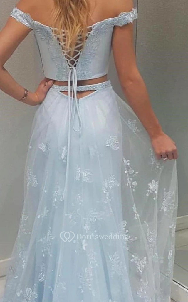 Satin Tulle Floor-length Two Piece Sleeveless Ethereal Formal Dress with Beading