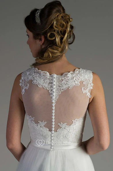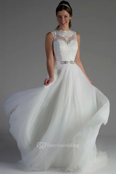 Scalloped High Neck Lace Top Beaded A-Line Tulle Bridal Gown