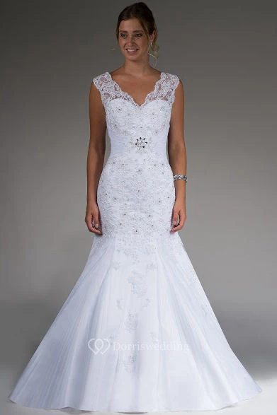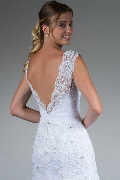 Scalloped V Neck V Back Mermaid Bridal Gown With Lace And Crystal