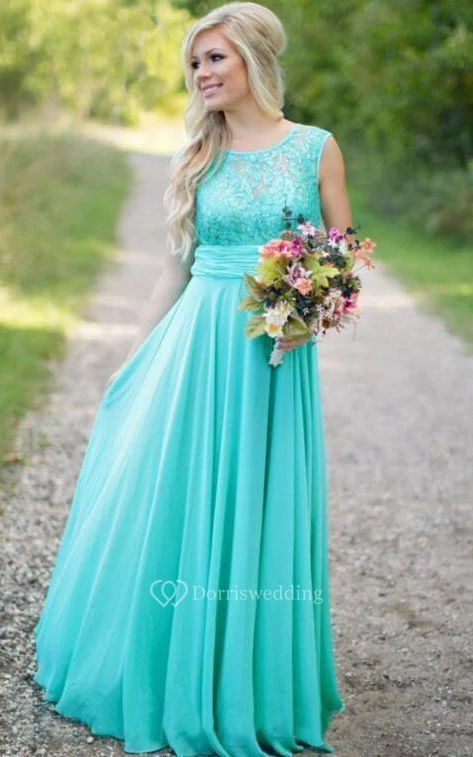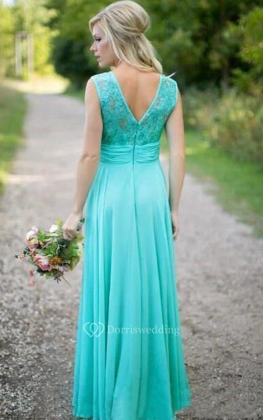 Scoop Bell Draping Low-v Back Chiffon Lace Dress