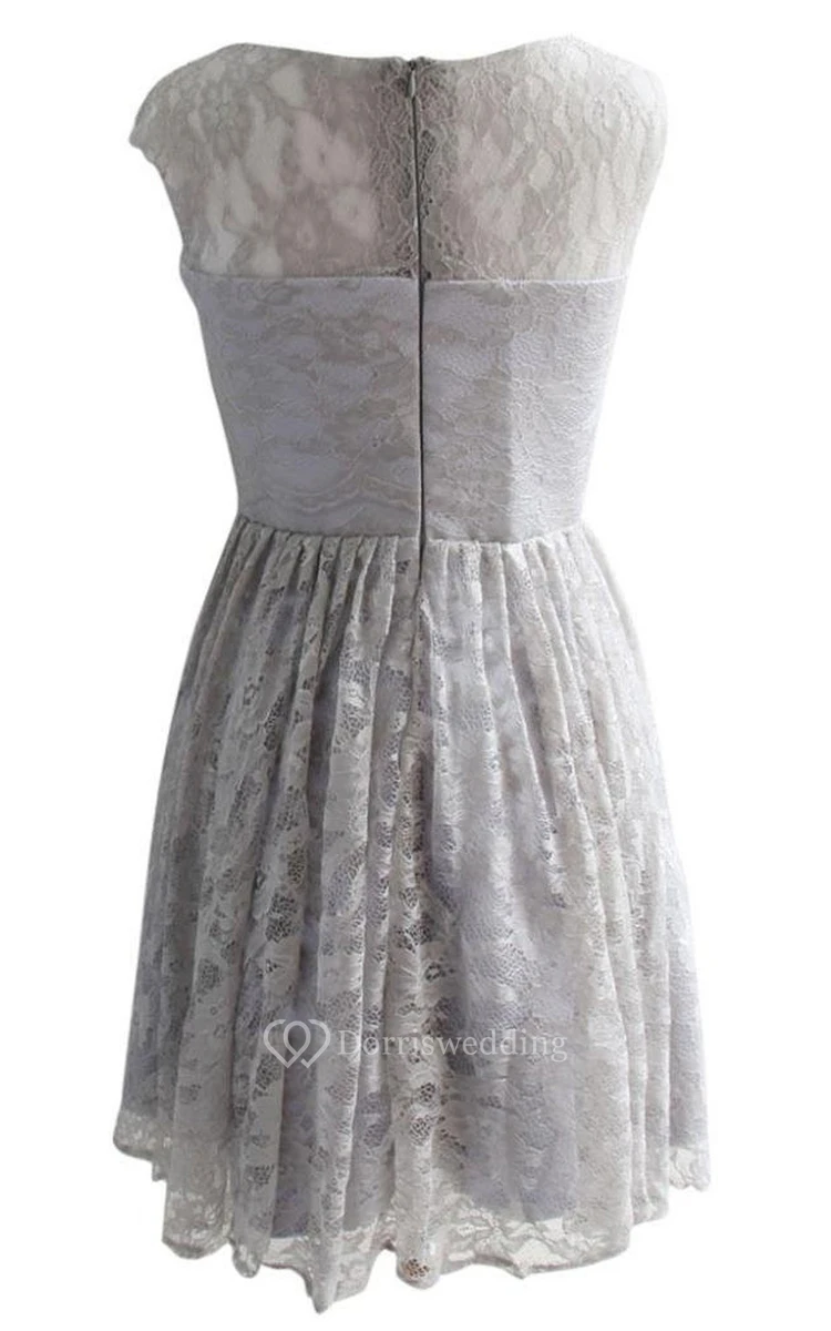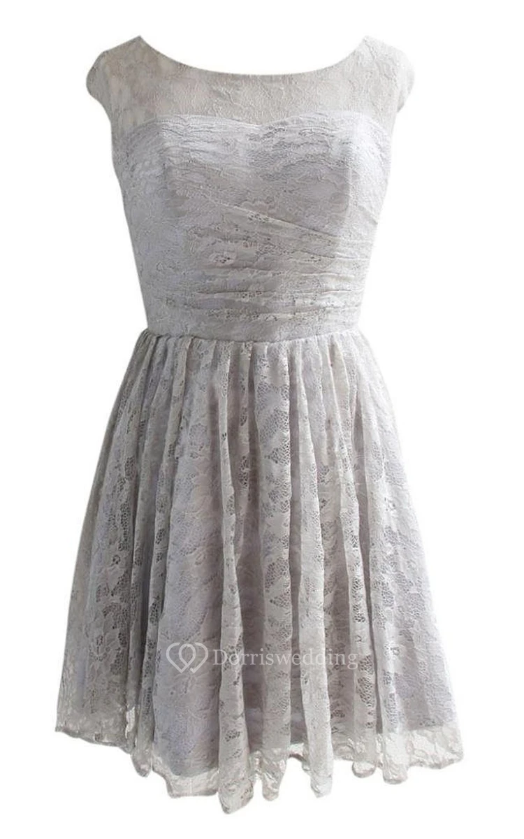 Scoop Lace Dress With Ruching and Zipper Back