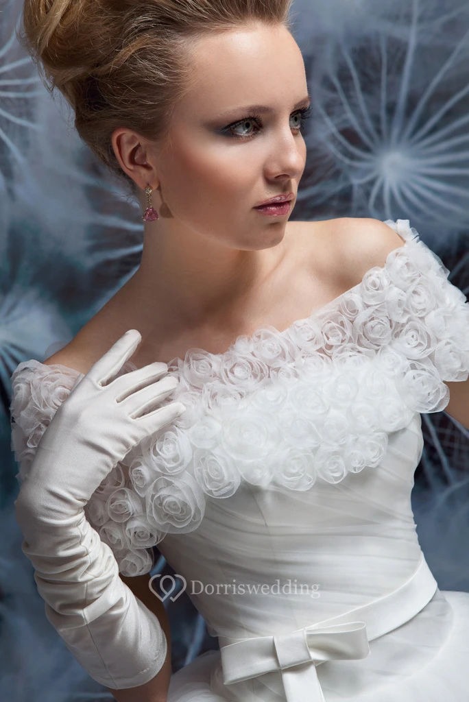 Scoop Long Ruched Cape Tulle Wedding Dress With Flower