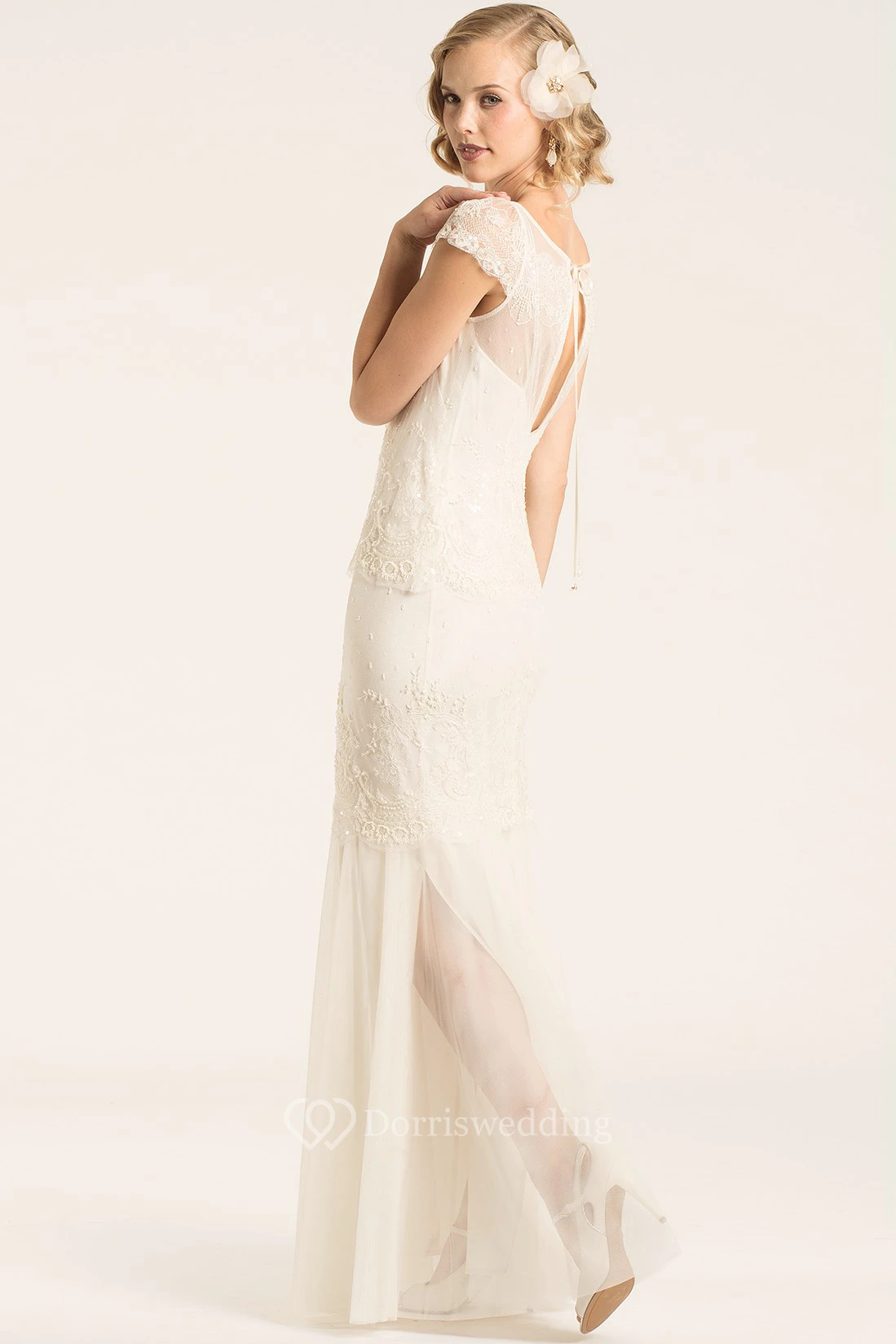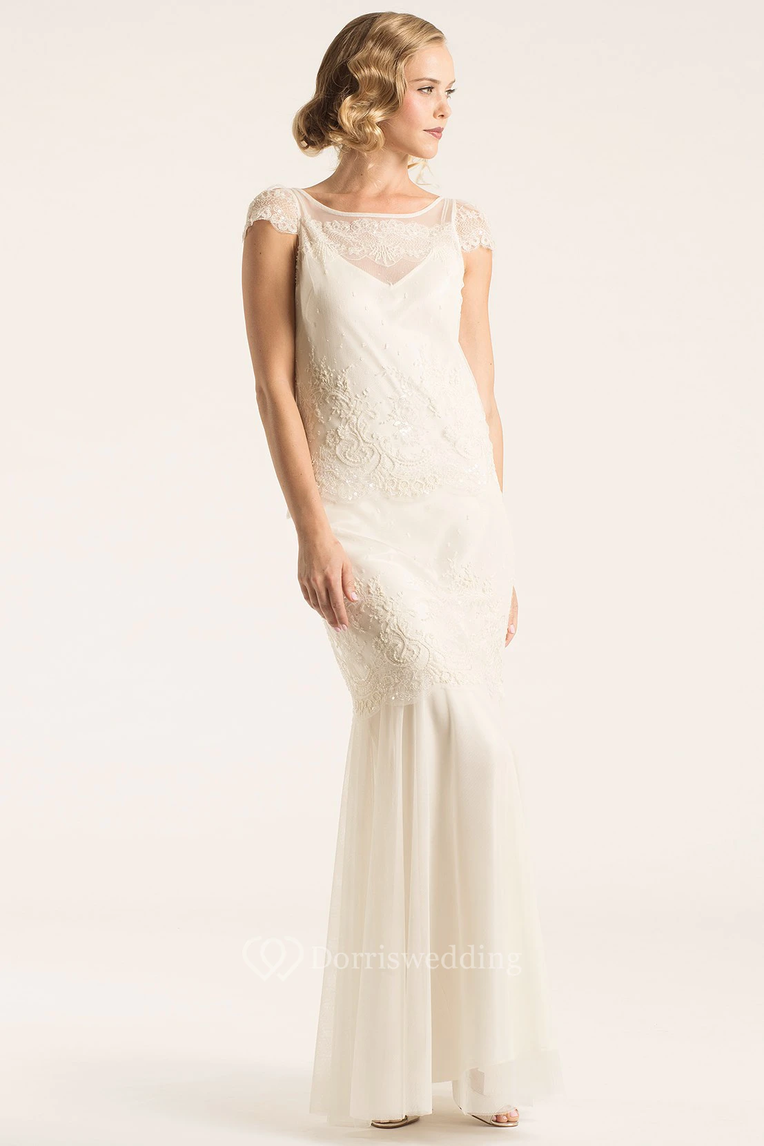 Scoop Maxi Cap-Sleeve Lace Wedding Dress With Illusion