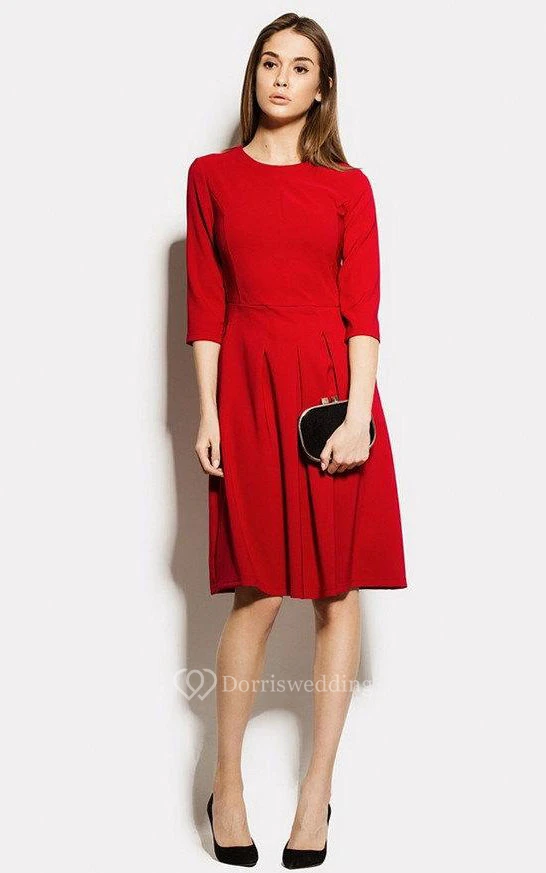 Scoop Neck 3-4 Sleeve A-line Pleated Jersey Dress With Pockets