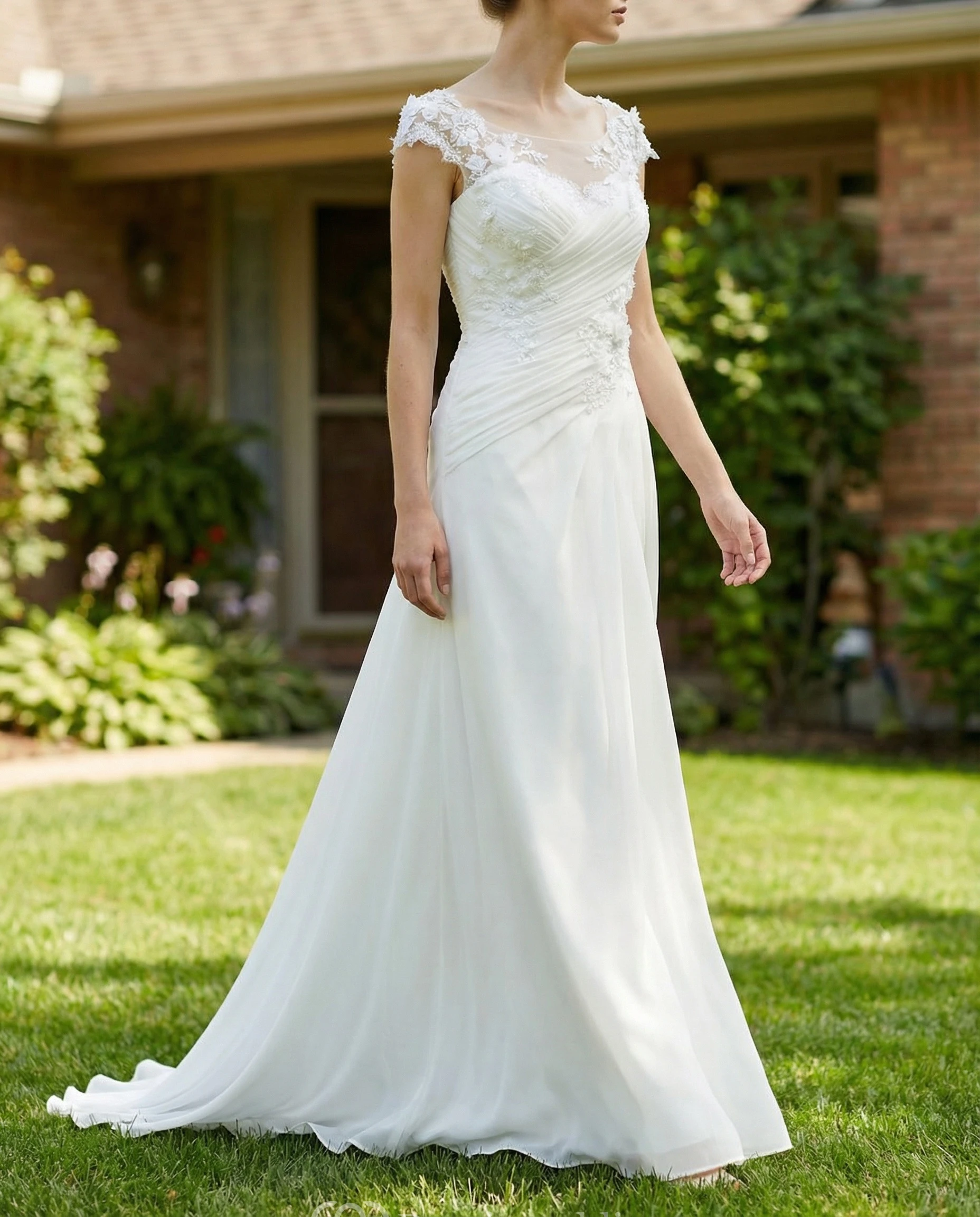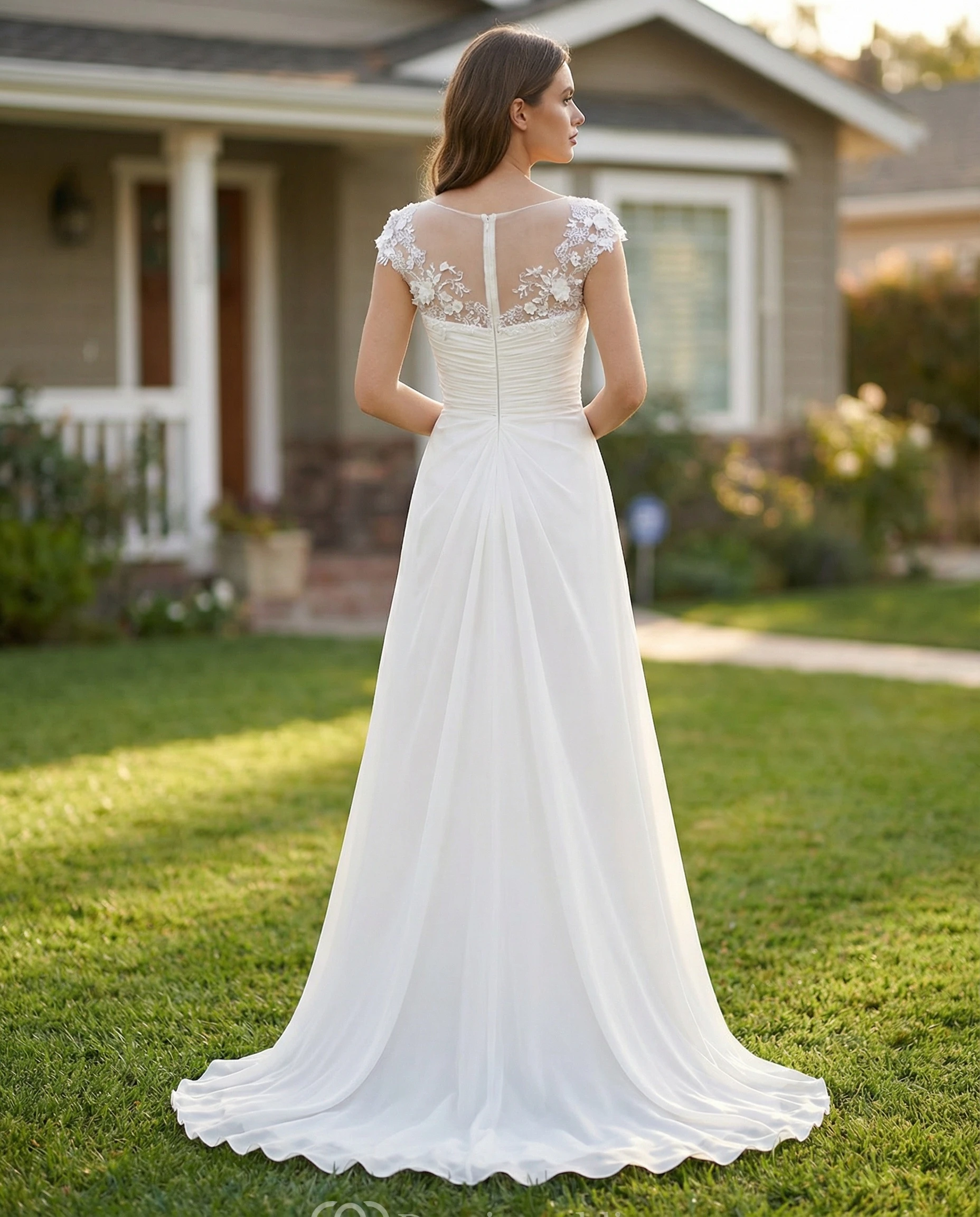 Scoop Neck Chiffon Dress with Lace Appliques