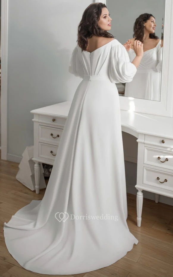 Scoop-neck Chiffon Puff-sleeve Ruched Empire Plus Size Modest Wedding Dress
