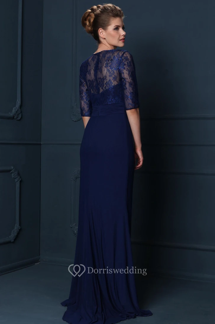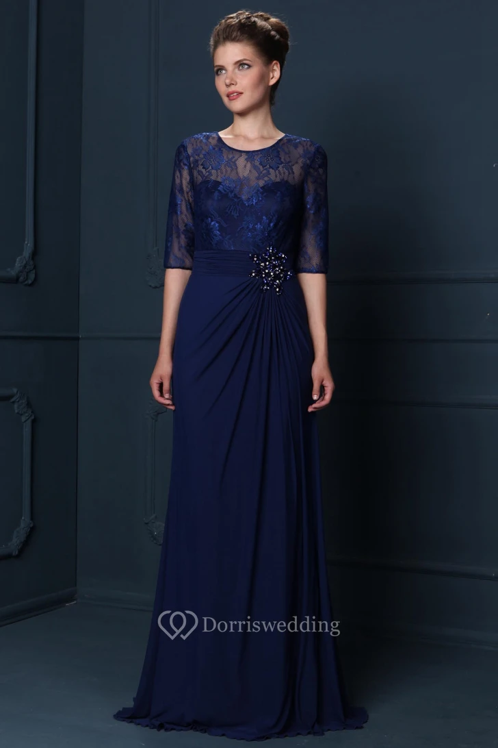 Scoop Neck Draped Half Sleeve Chiffon Mother Of The Bride Dress